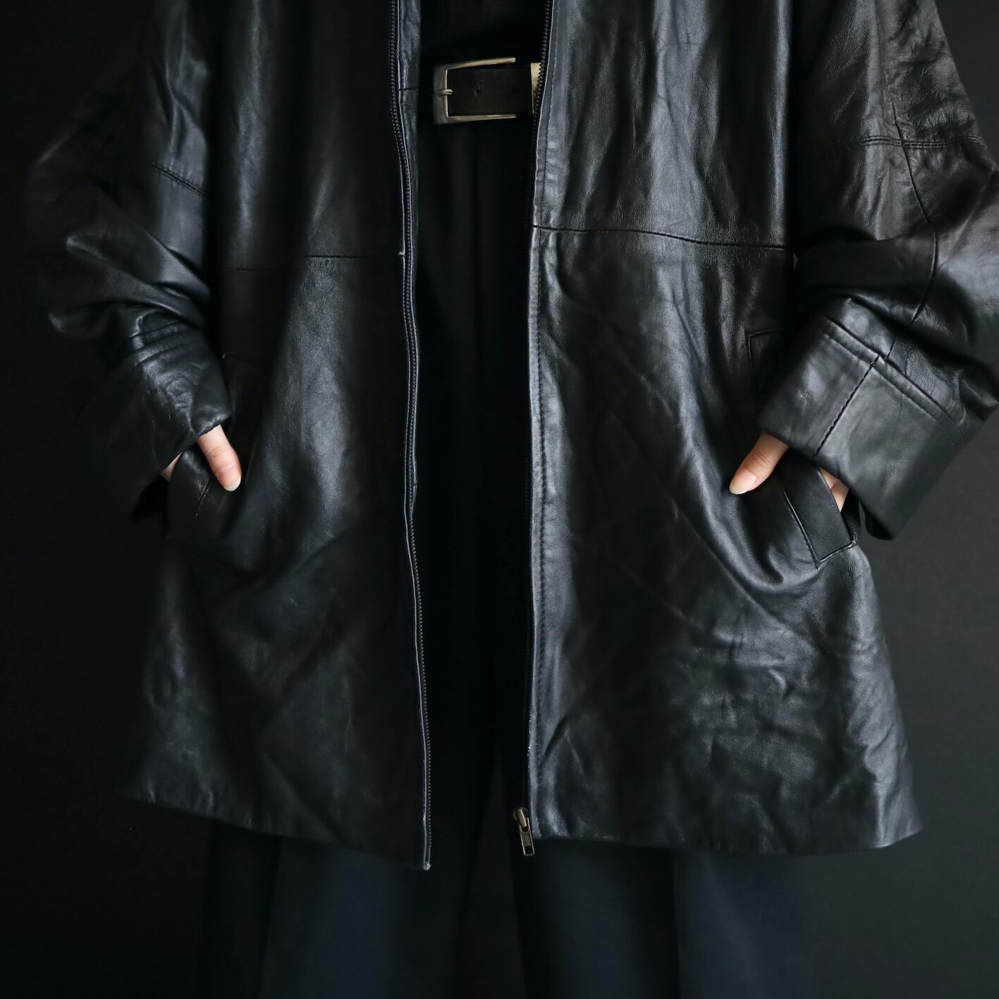 レザーコート系の中では比較的着やすく,"キマり過ぎない"のがいいバランスの取れた一枚.
