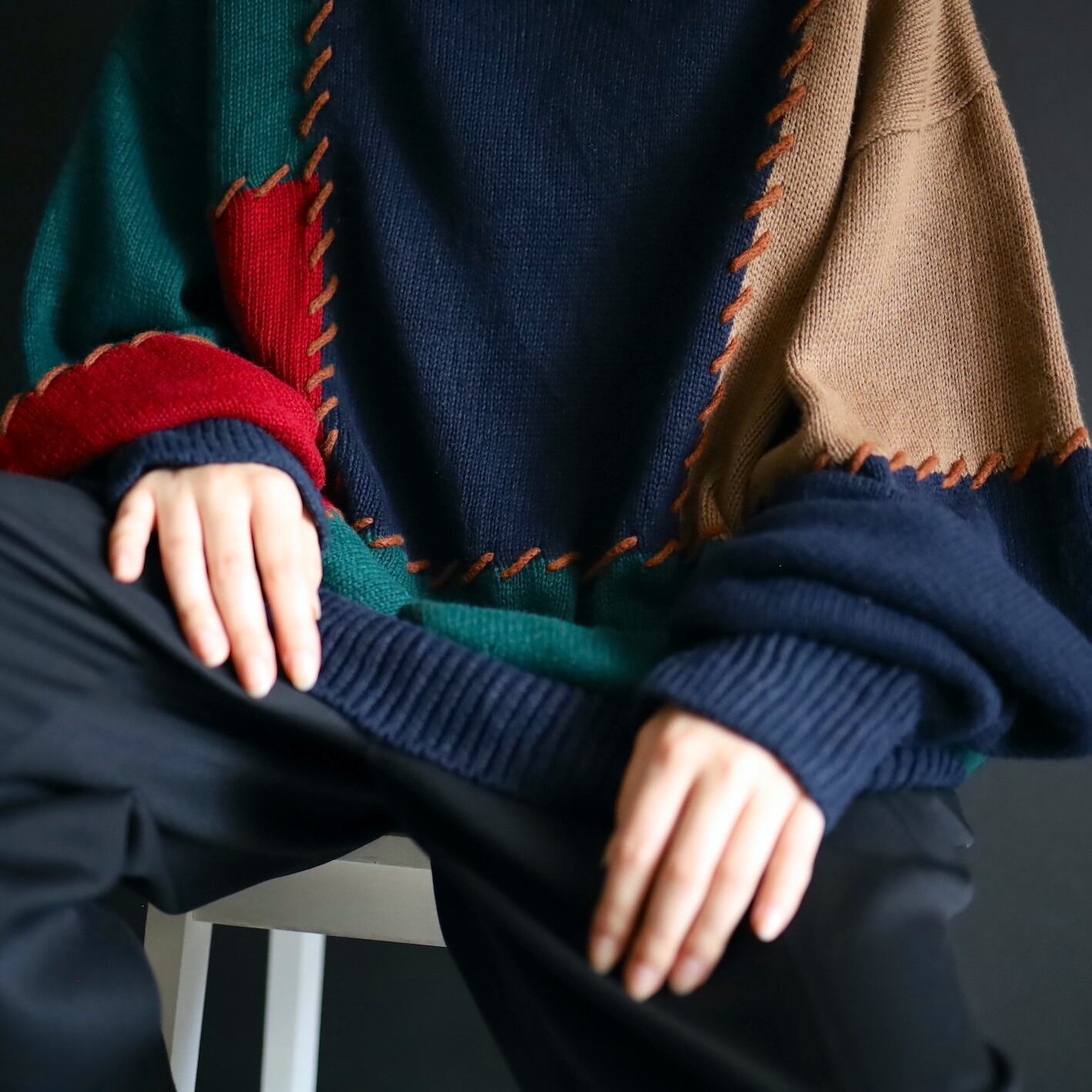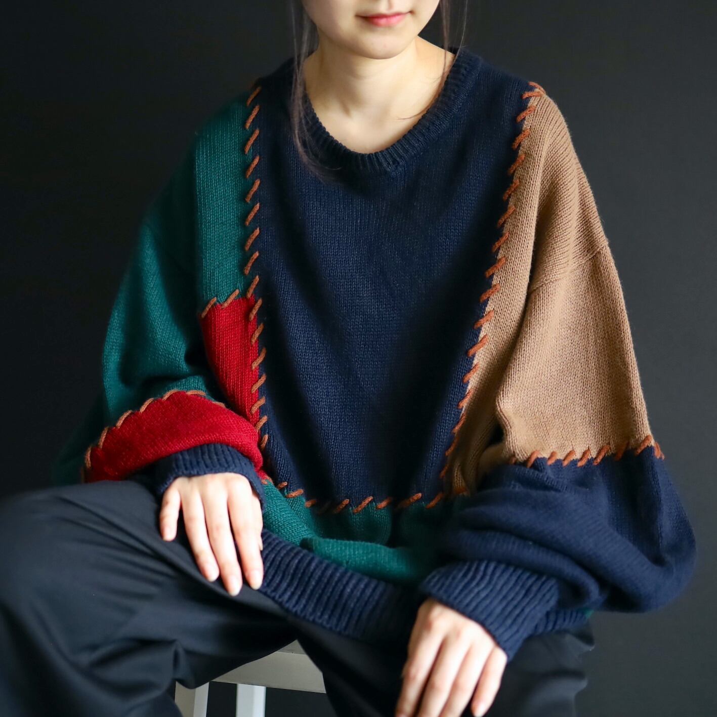 カジュアルで遊び心の詰まったニットセーター,コーデに色味を加えたいならぜひ.