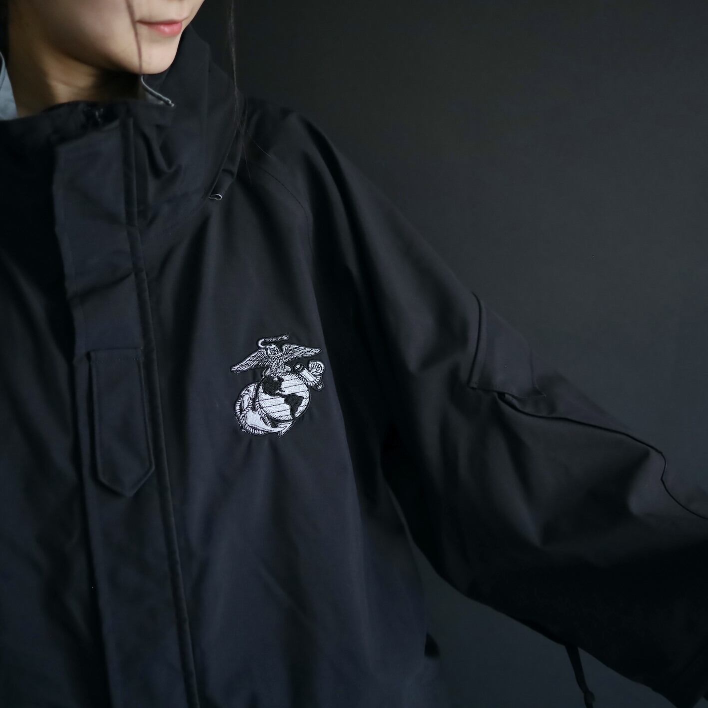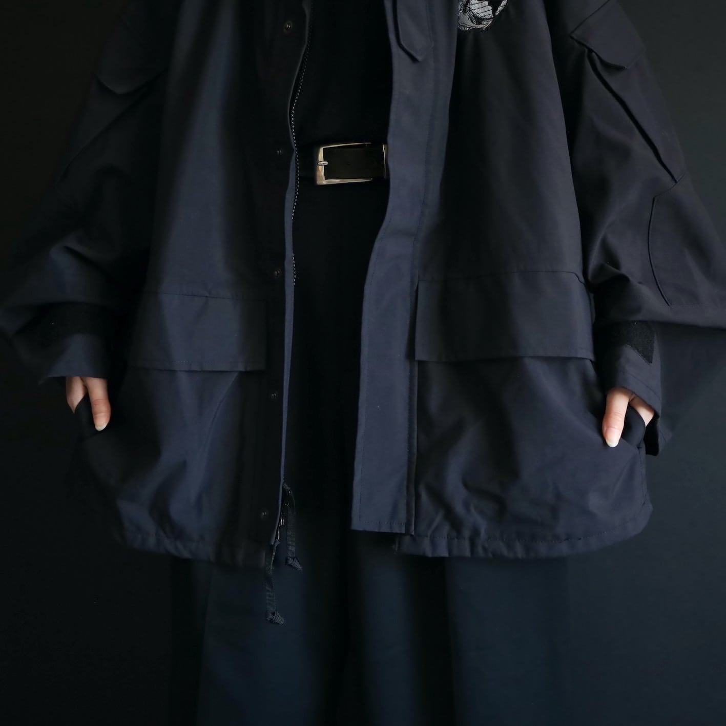 胸元に地球とか碇とか鷲みたいなワンポイント刺繍.
