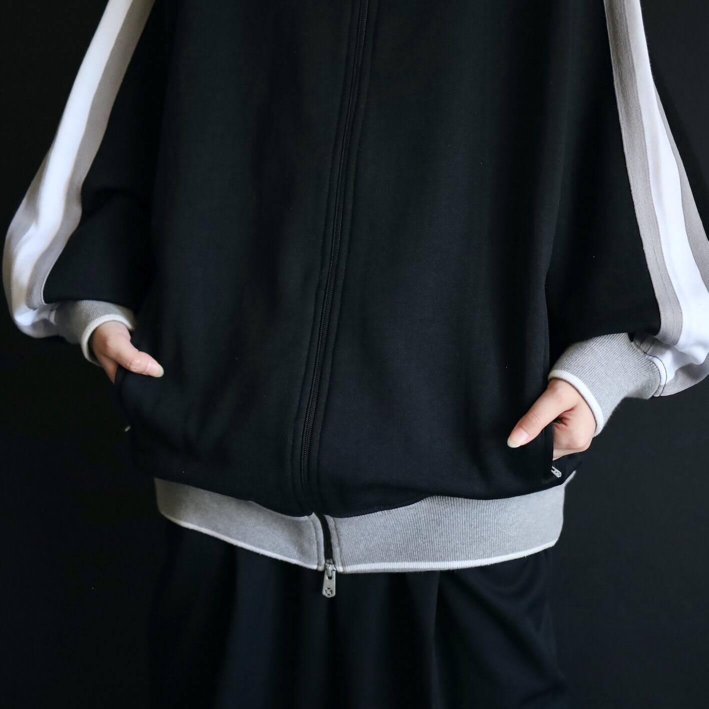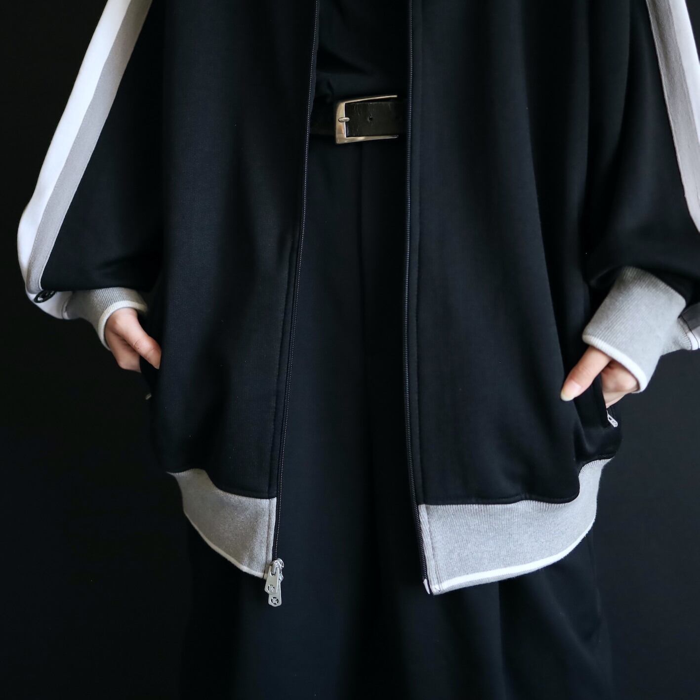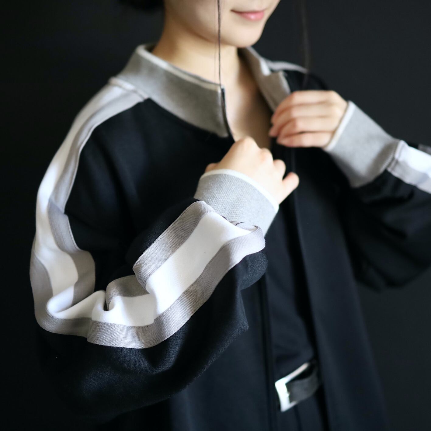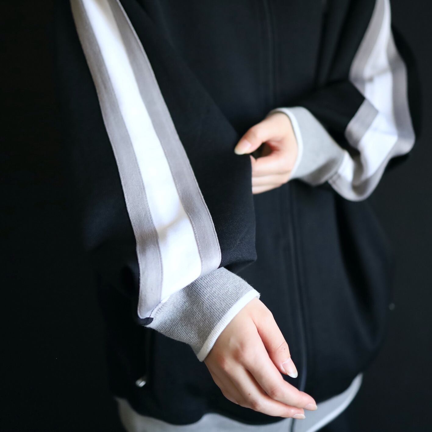 ブラックカラーをベースとしたボディに,リブや袖のラインがグレーとホワイトに切替ります.