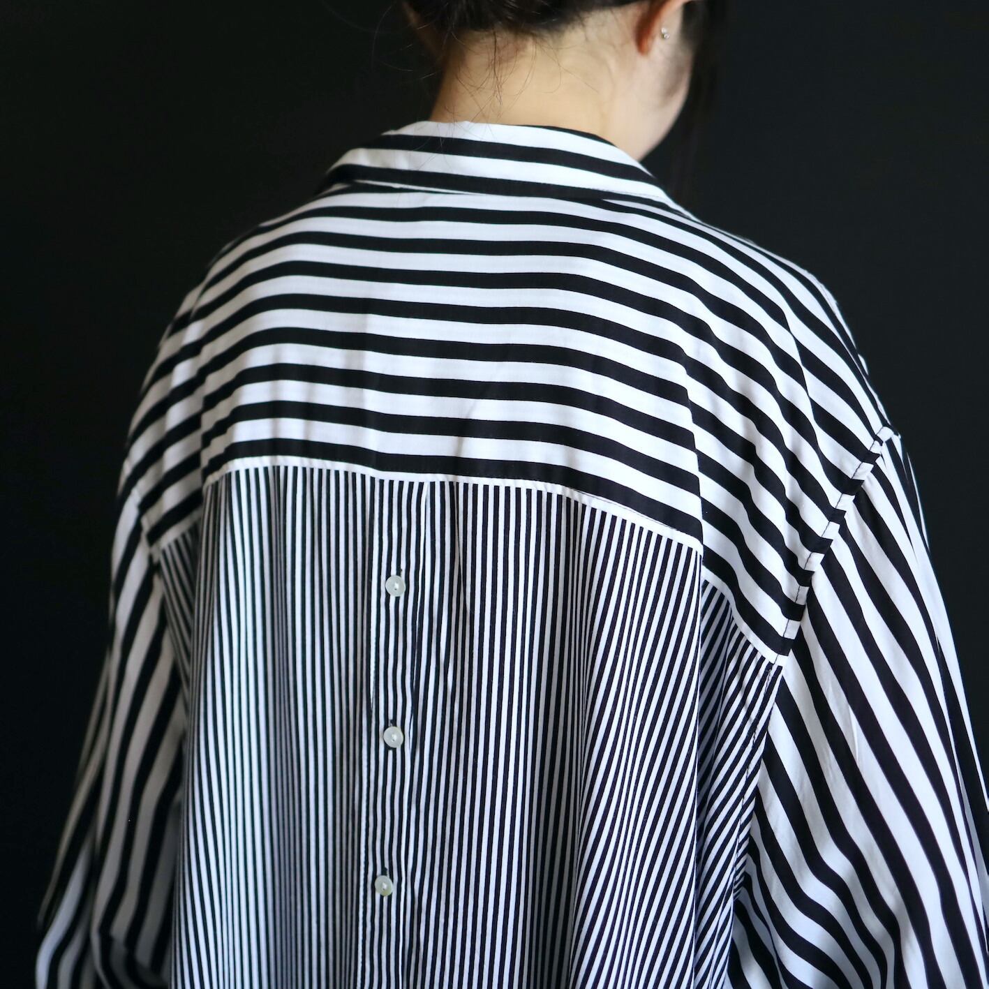 その一辺倒かと思いきや,背面のヨークから下はさらに細いストライプに切替わるという,ストライプ×ストライプのユニークな一枚.