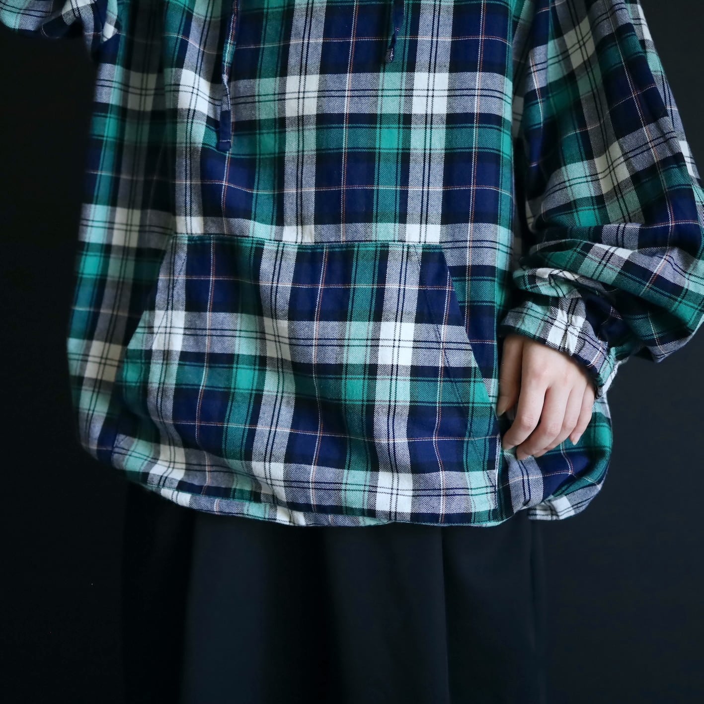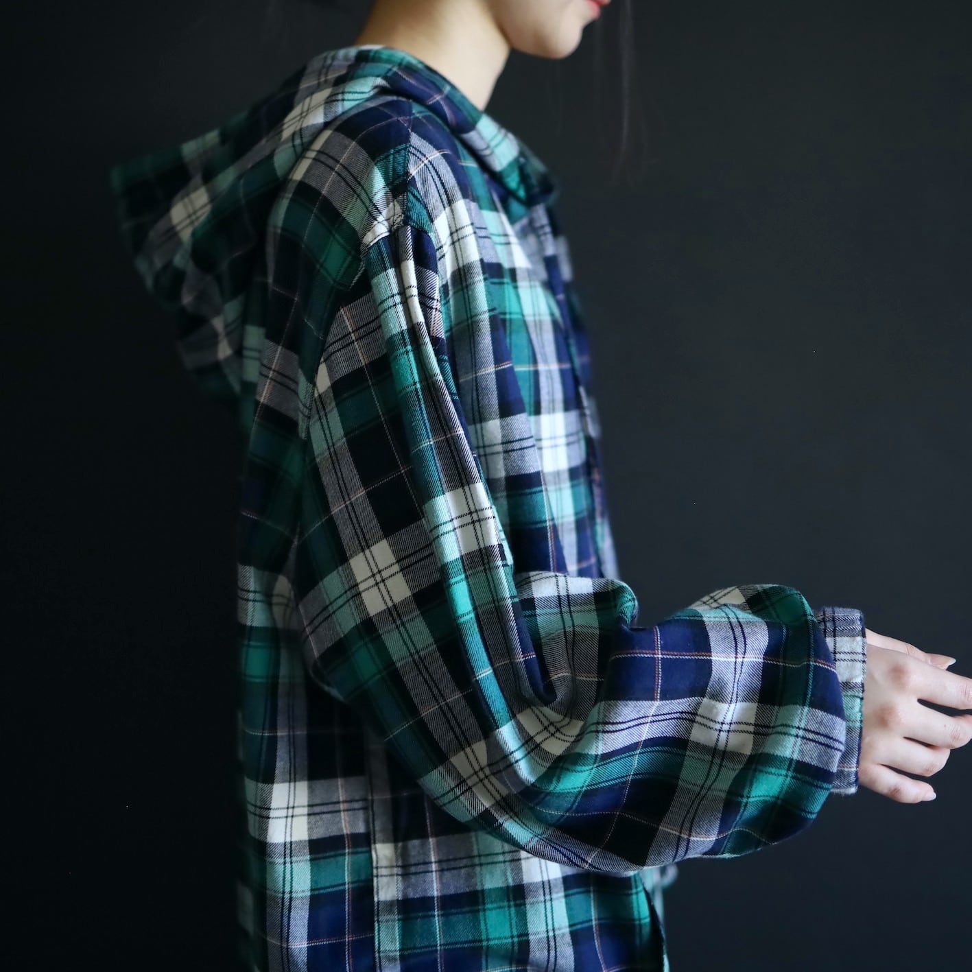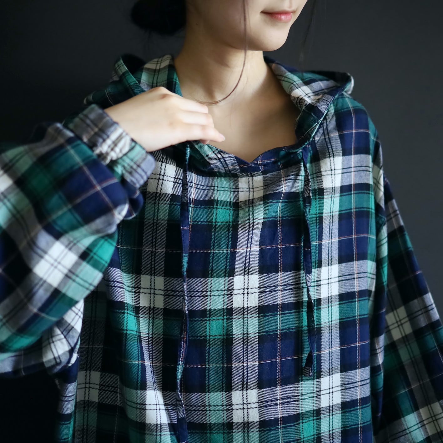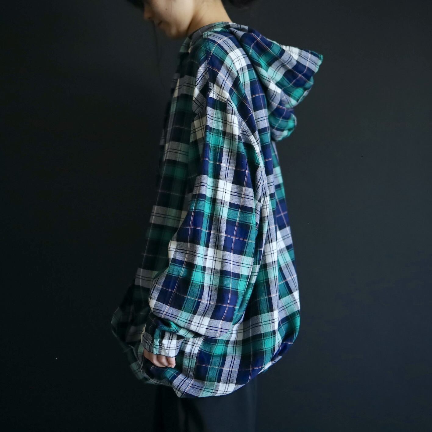 ナイロンやスウェット系のフーディと違ってライトな分,アウターのみならずインナーとしても活用できます.