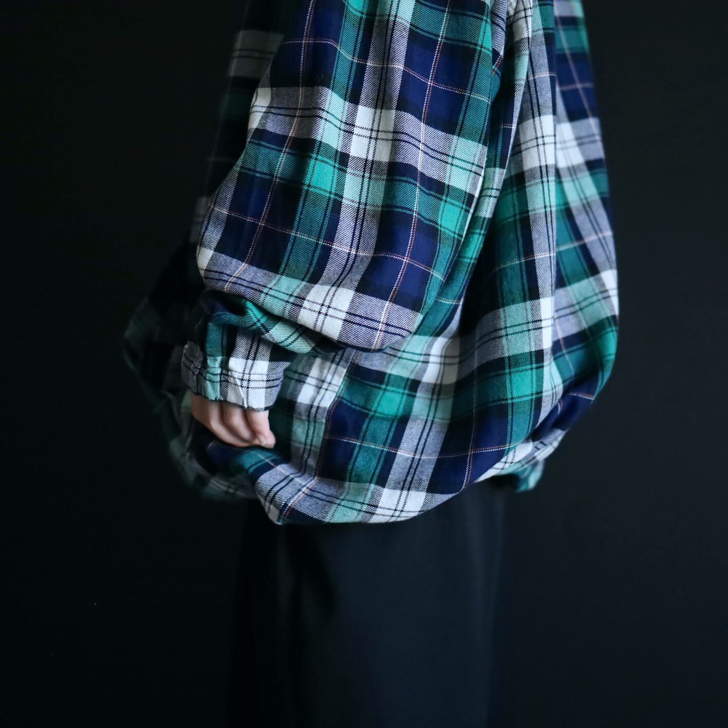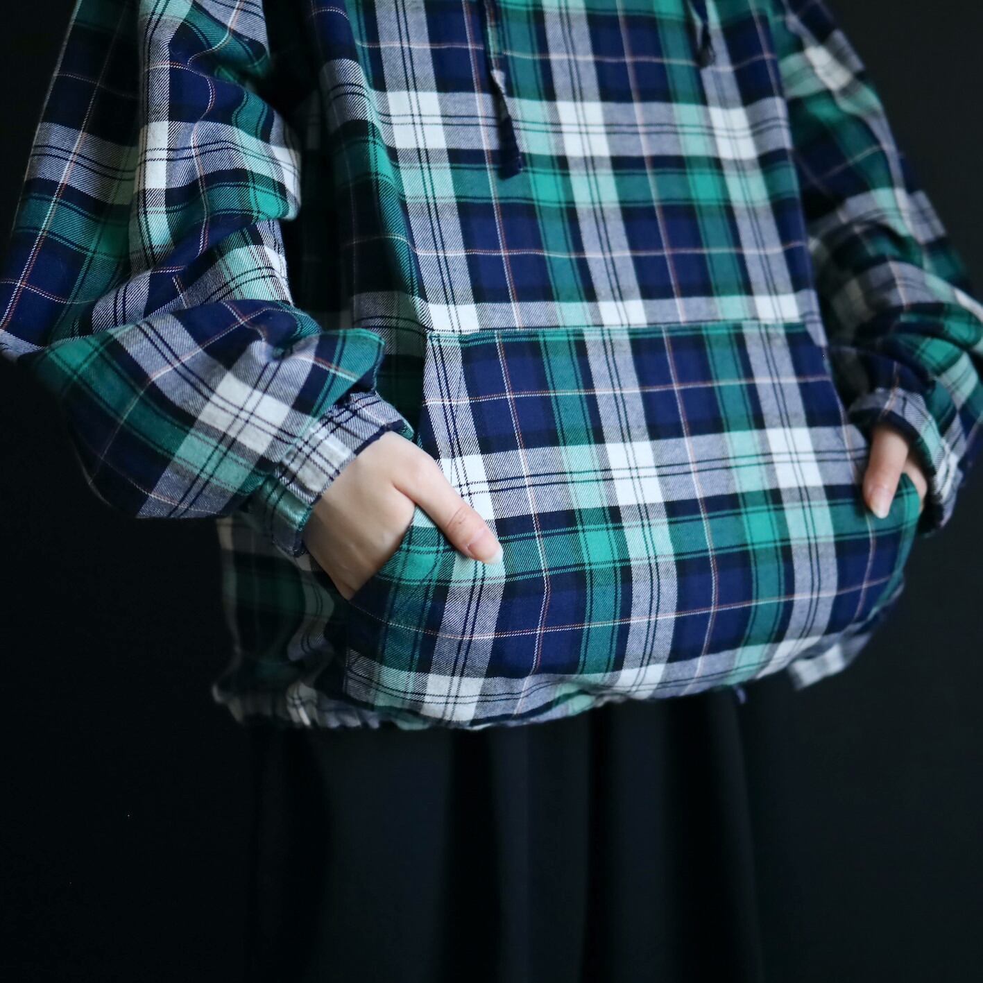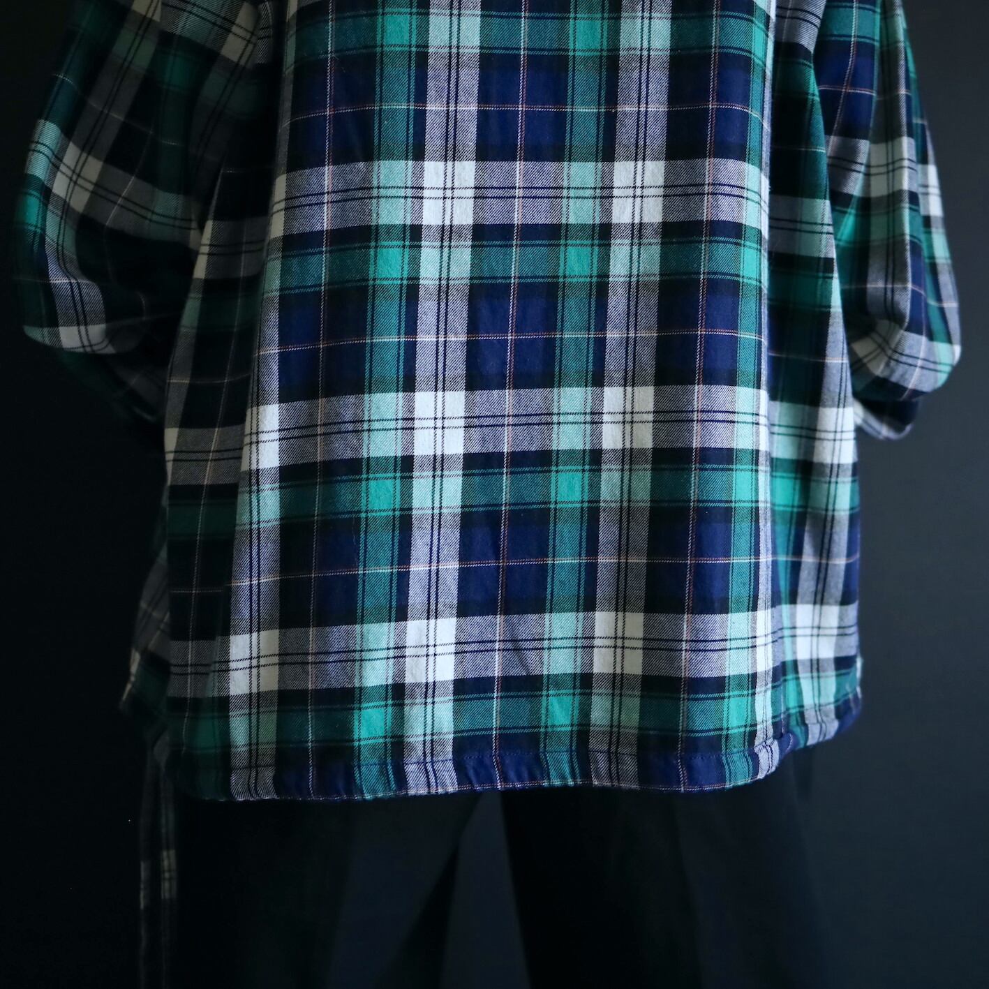 グリーン,ネイビー,ホワイトベースのマドラスチェック.