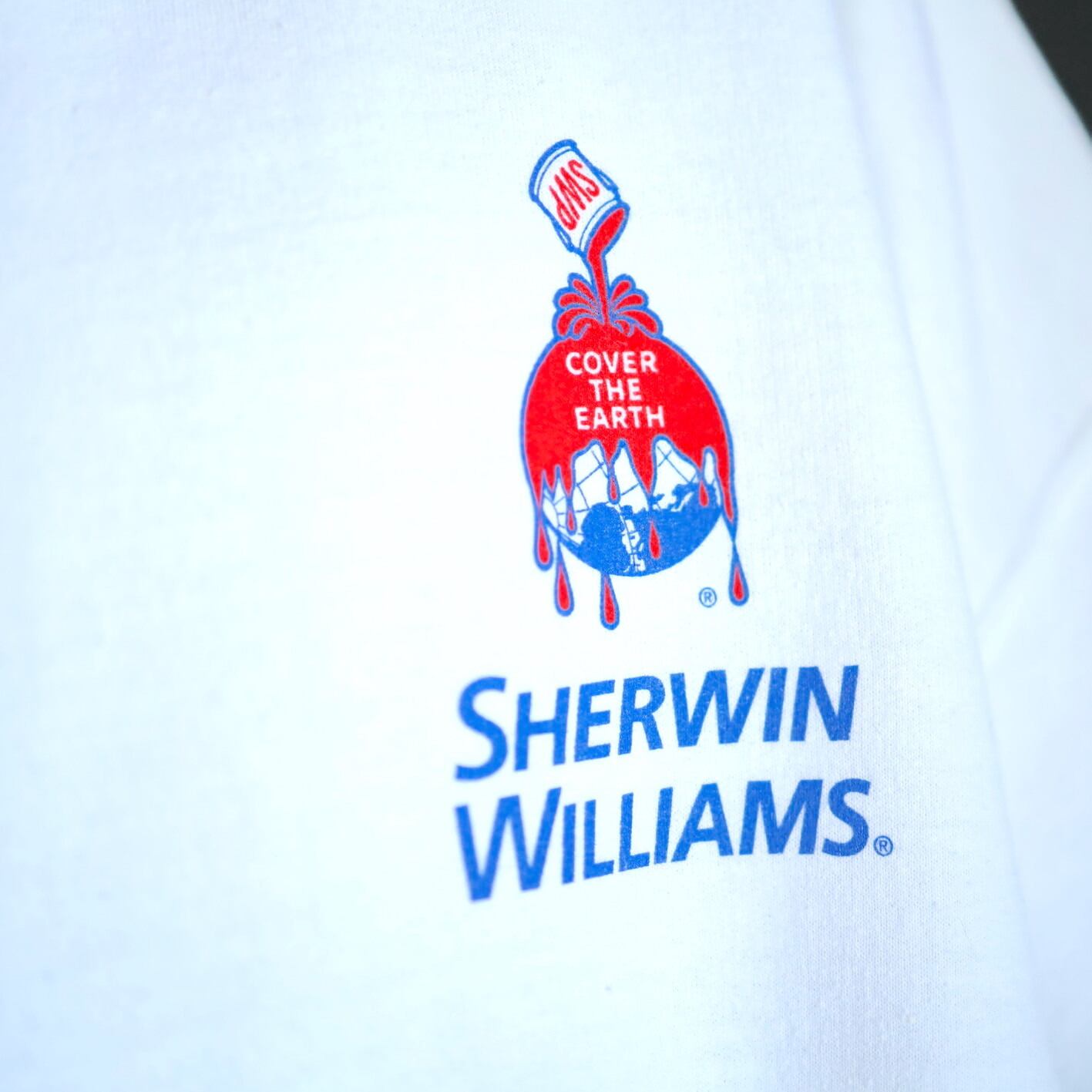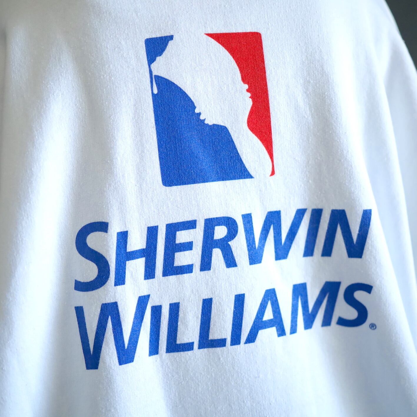 フロントは胸元に,バックには大きく,シャーウィン・ウィリアムズのロゴプリント.