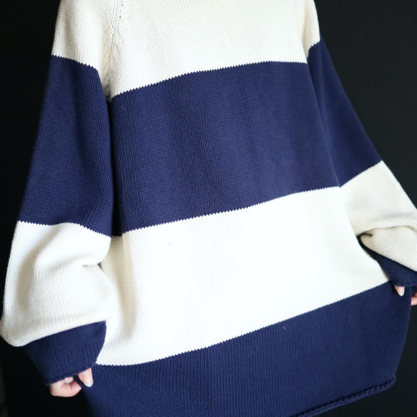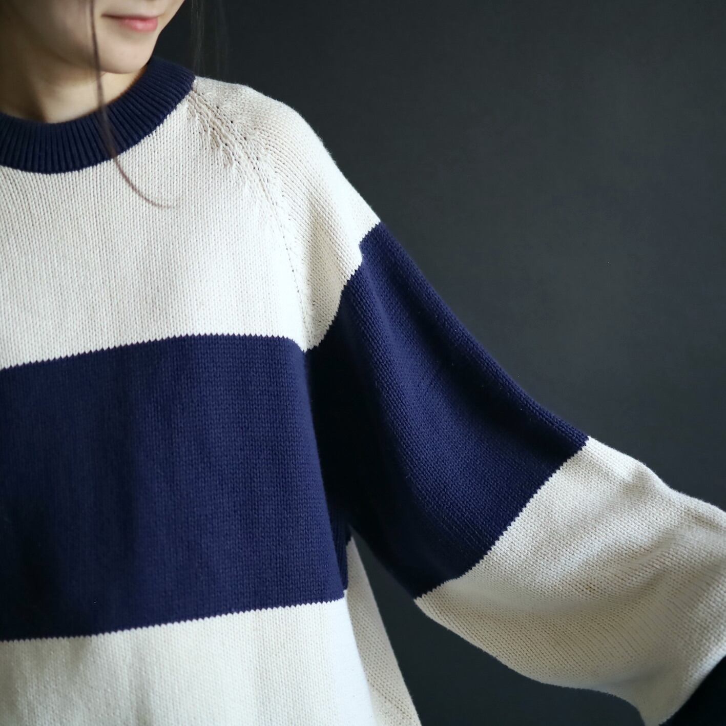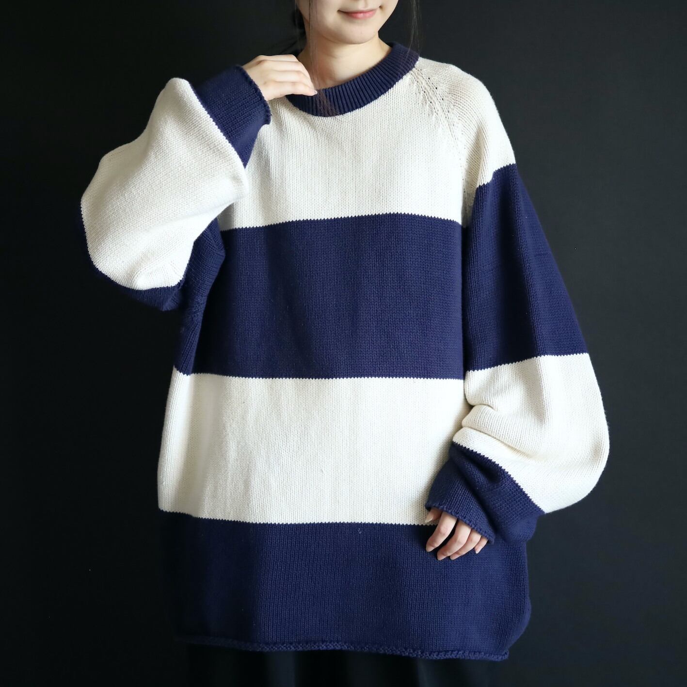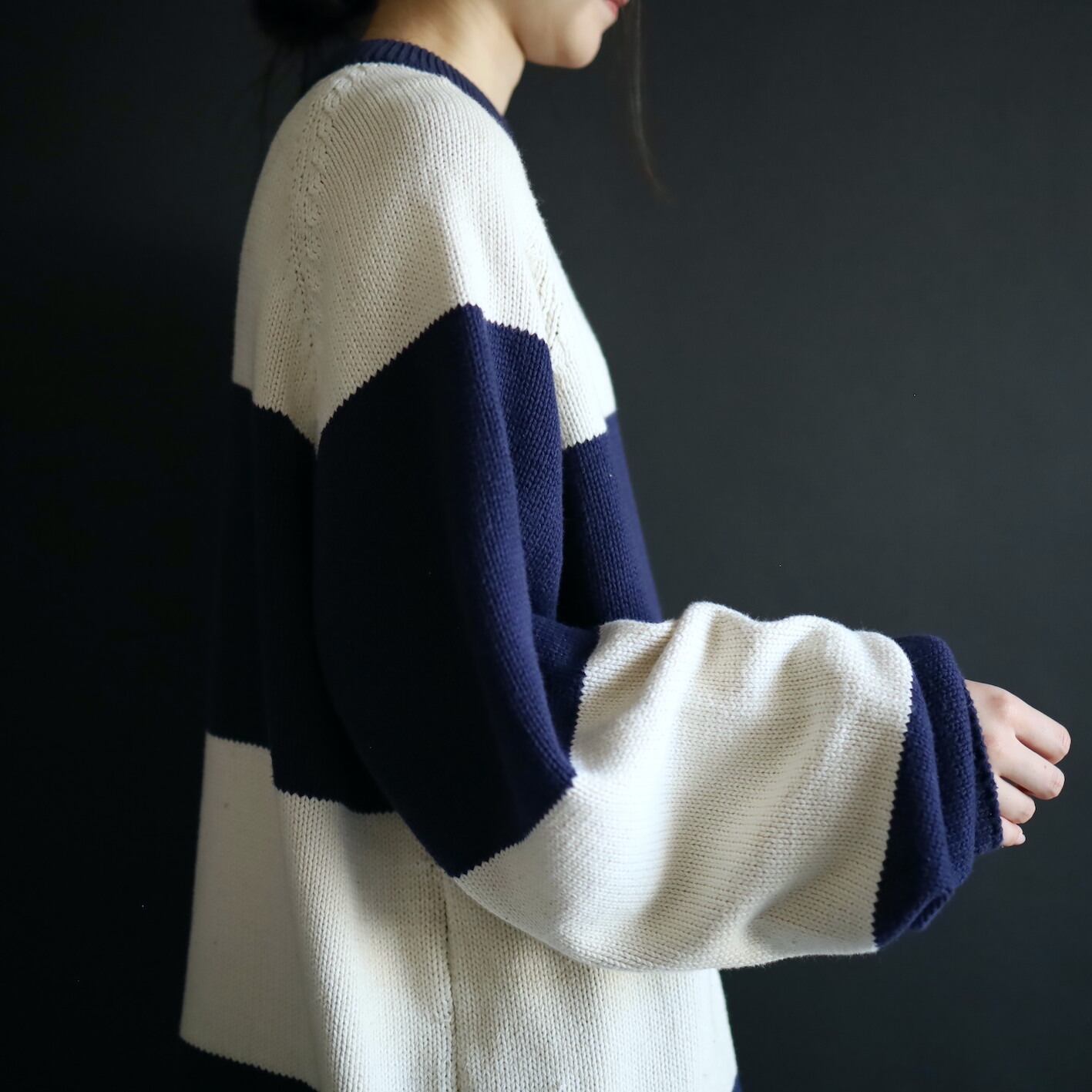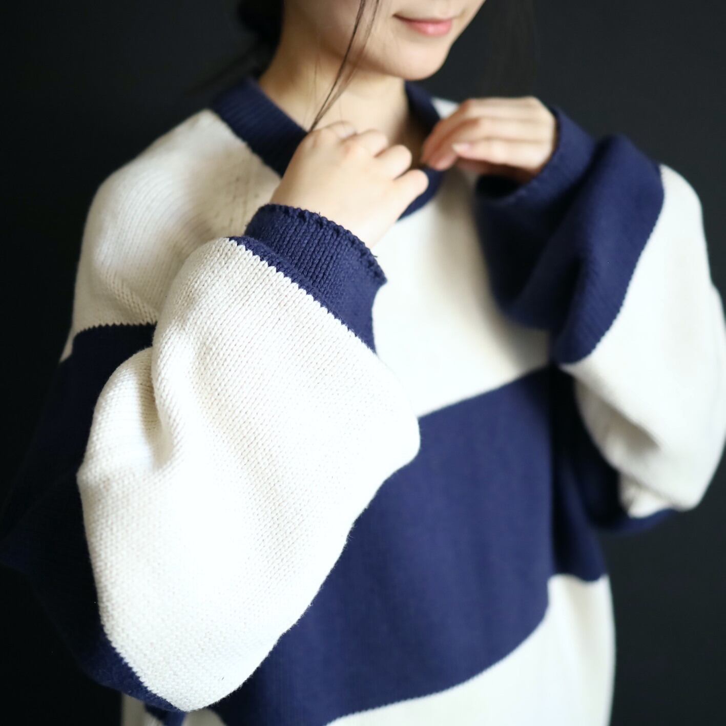 爽やかで可愛らしい極太ボーダーニットセーター.