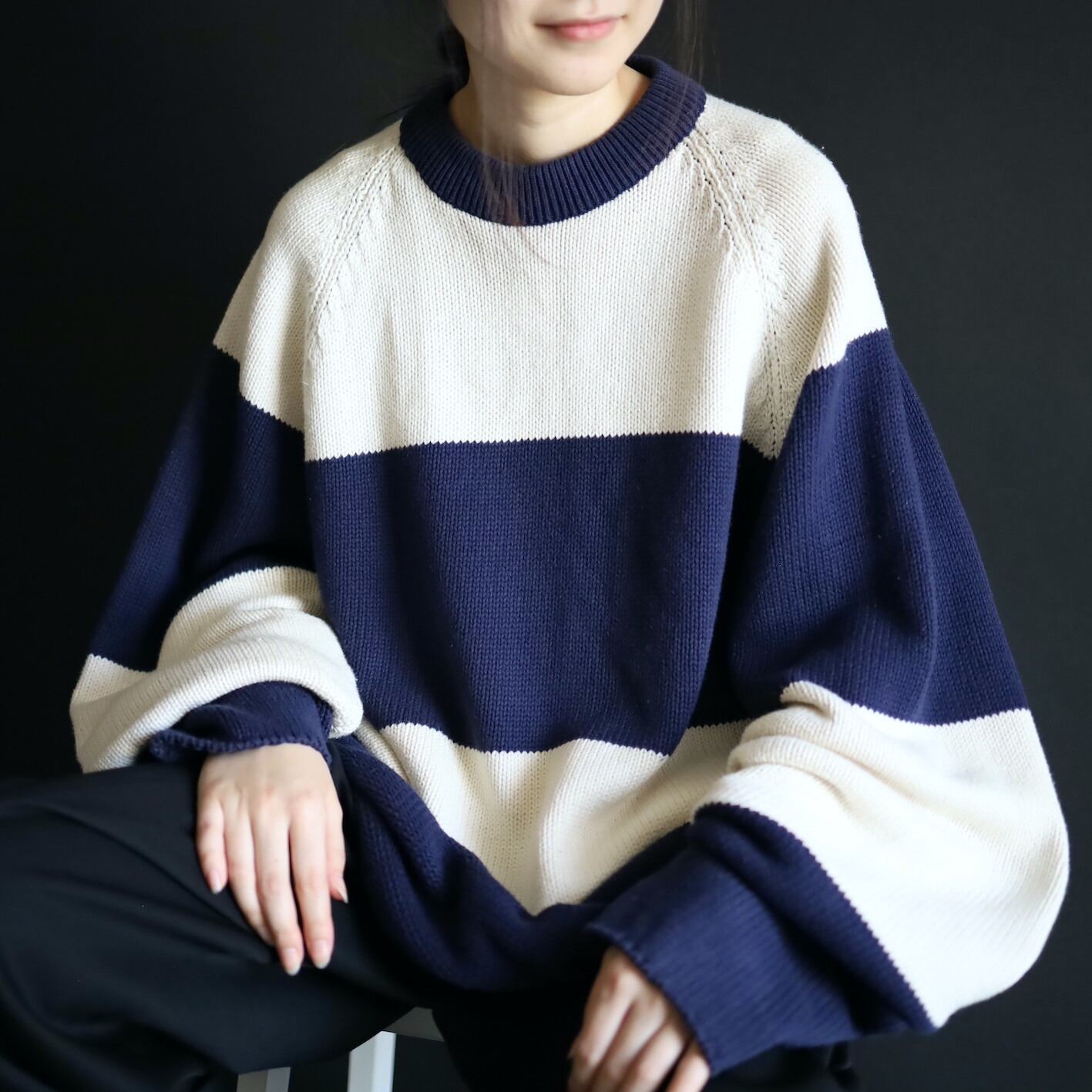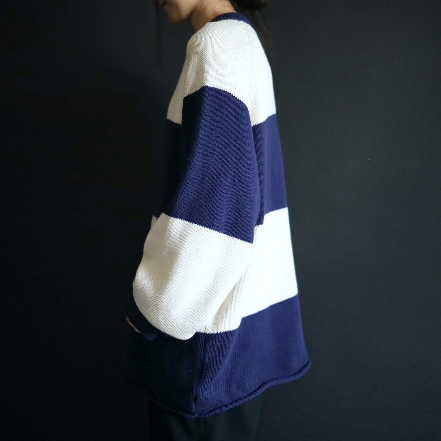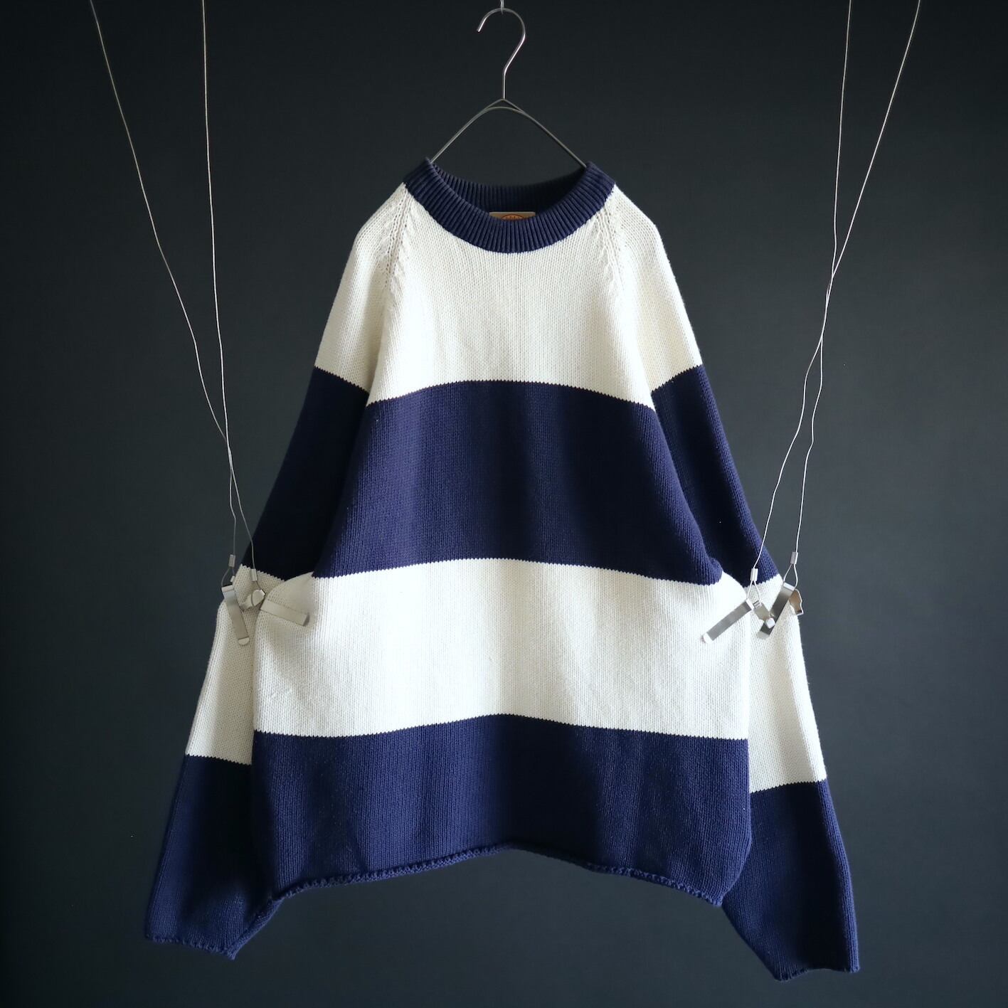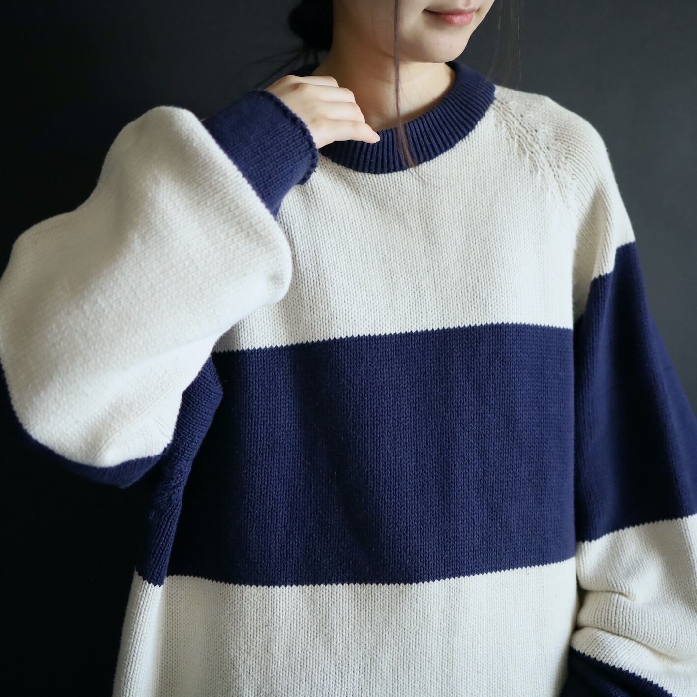 爽やかで可愛らしい極太ボーダーニットセーター.
