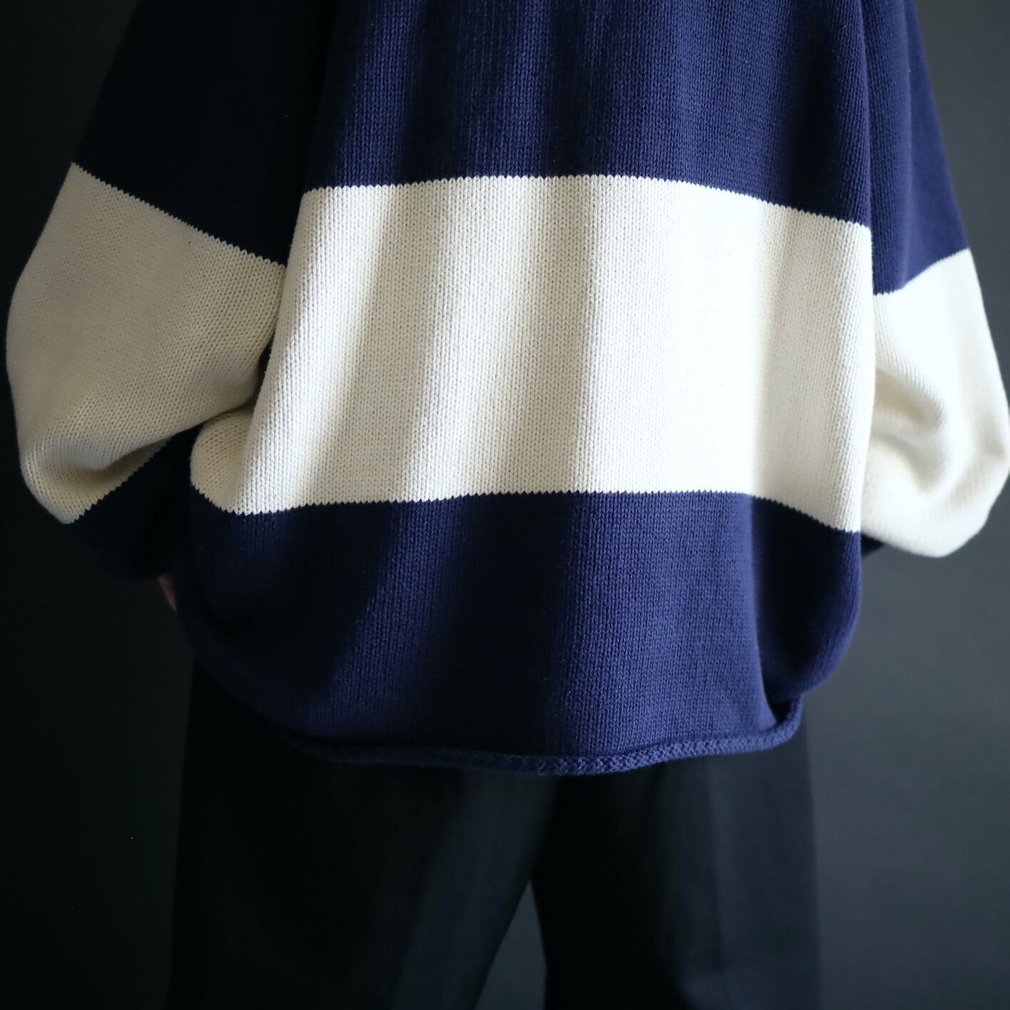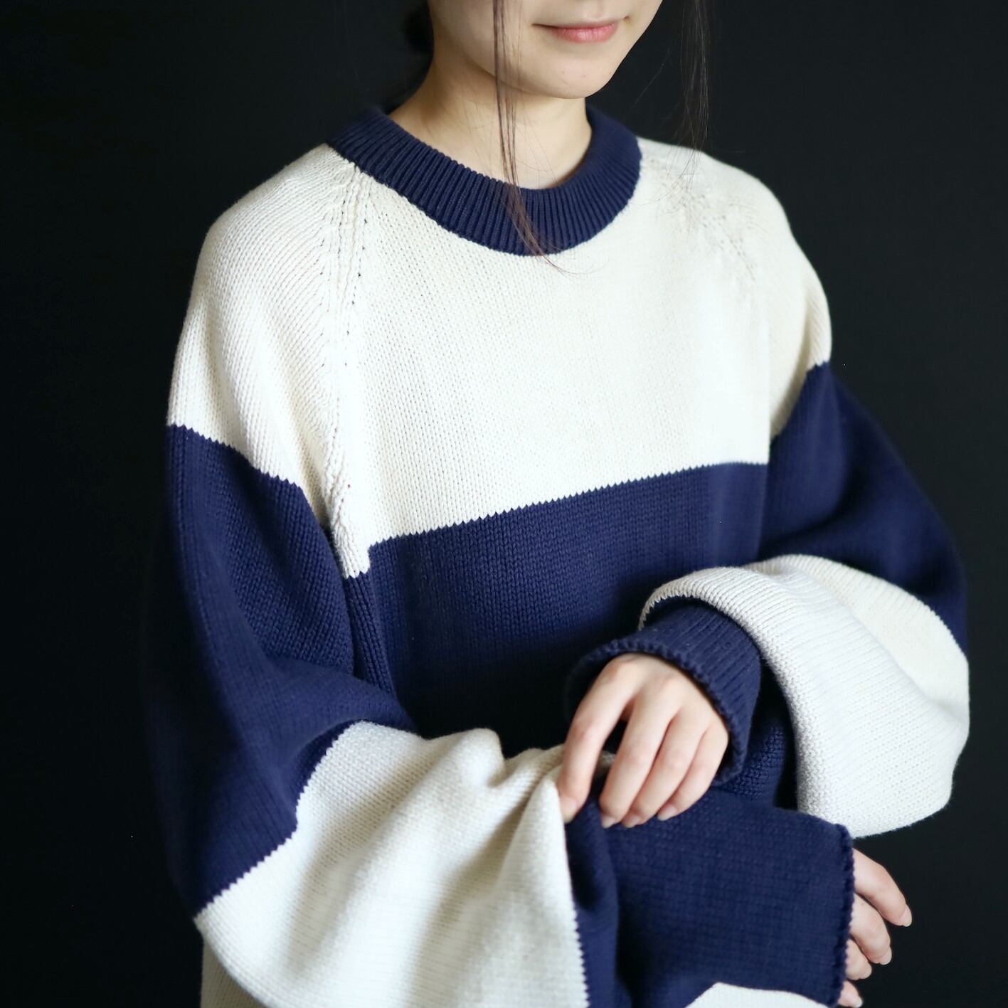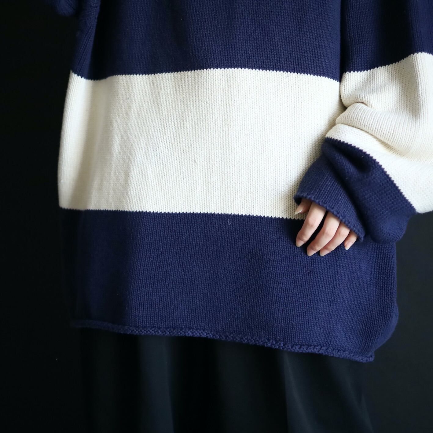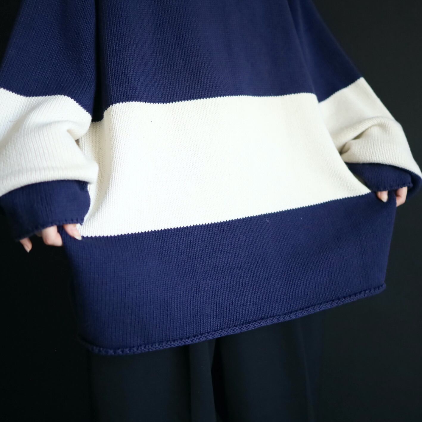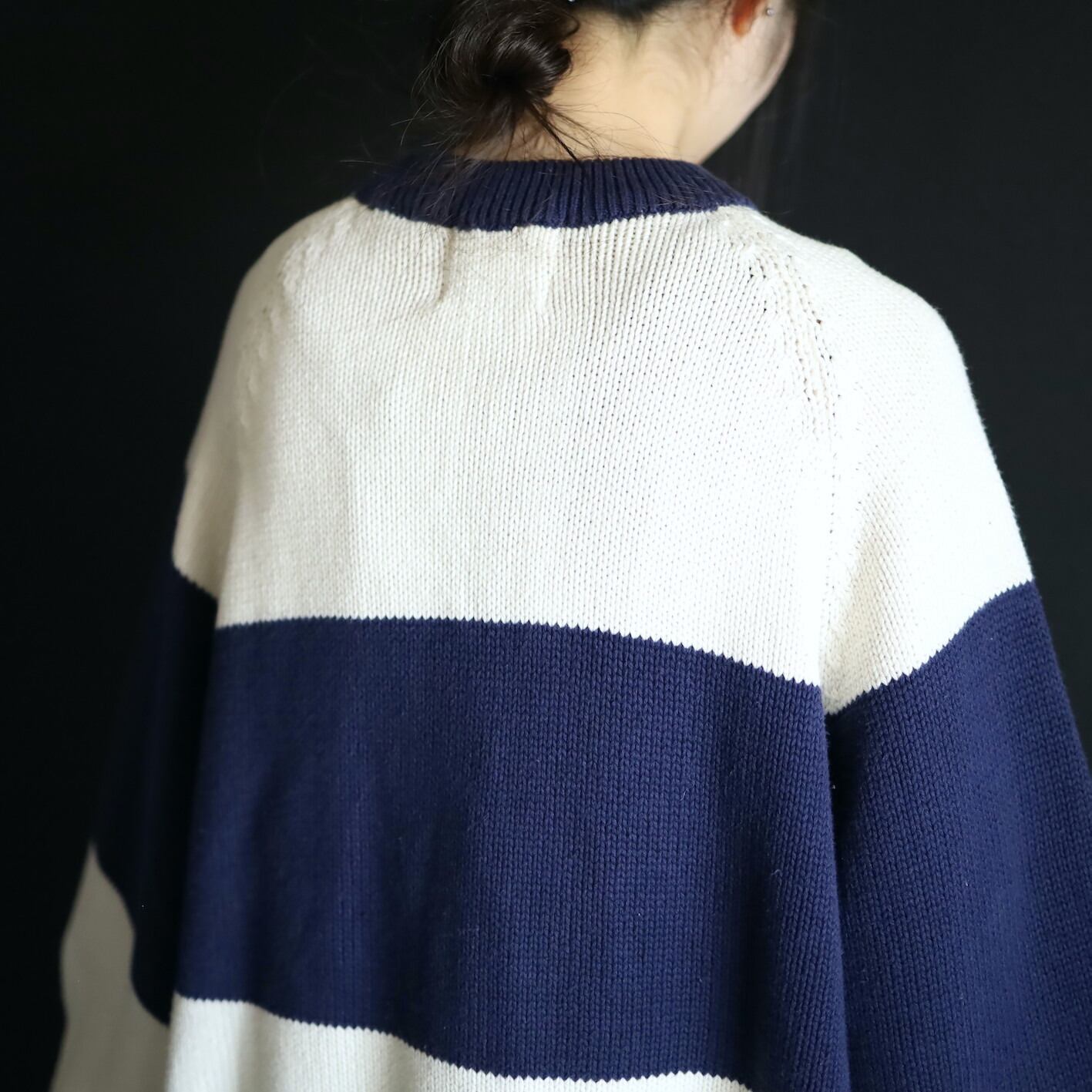 爽やかで可愛らしい極太ボーダーニットセーター.