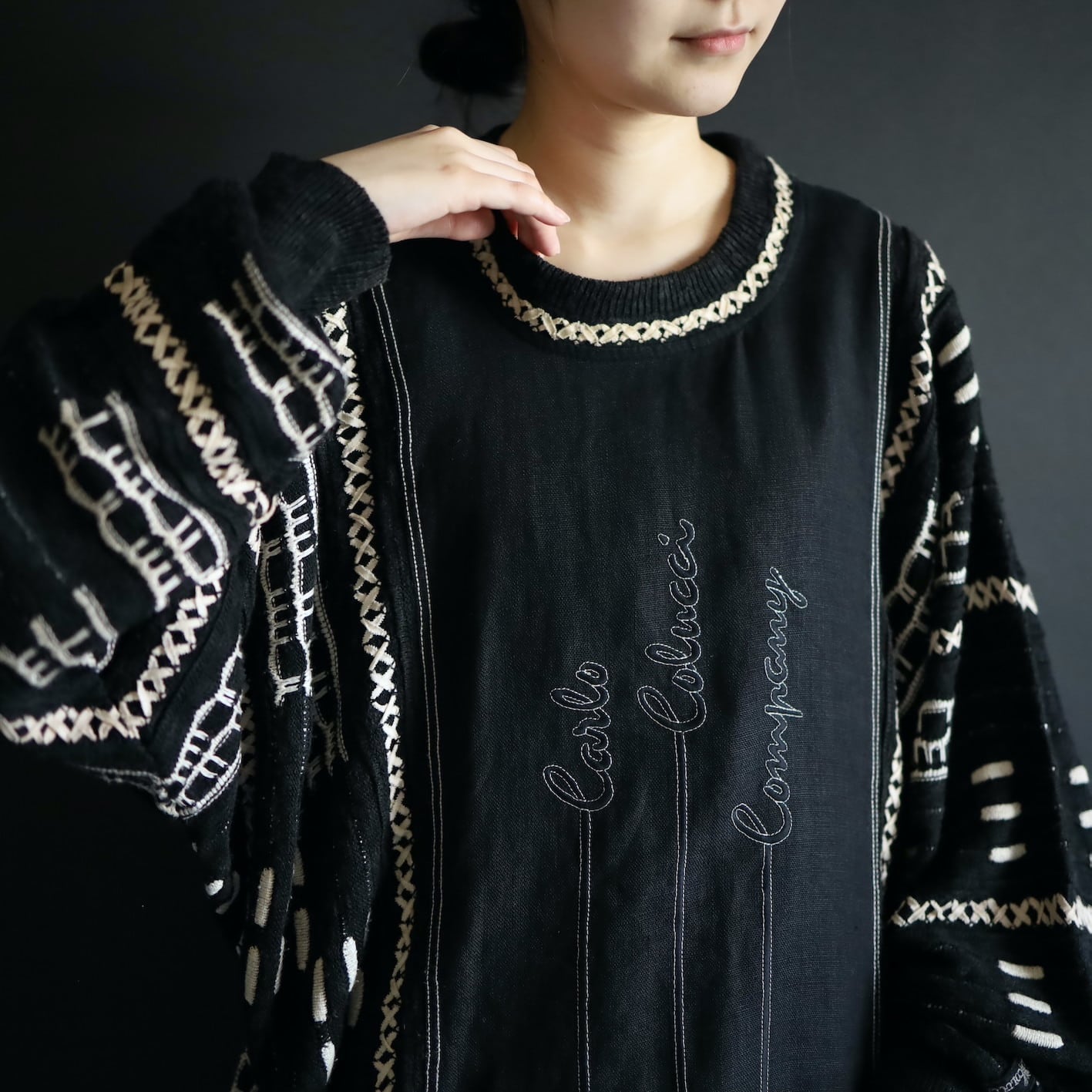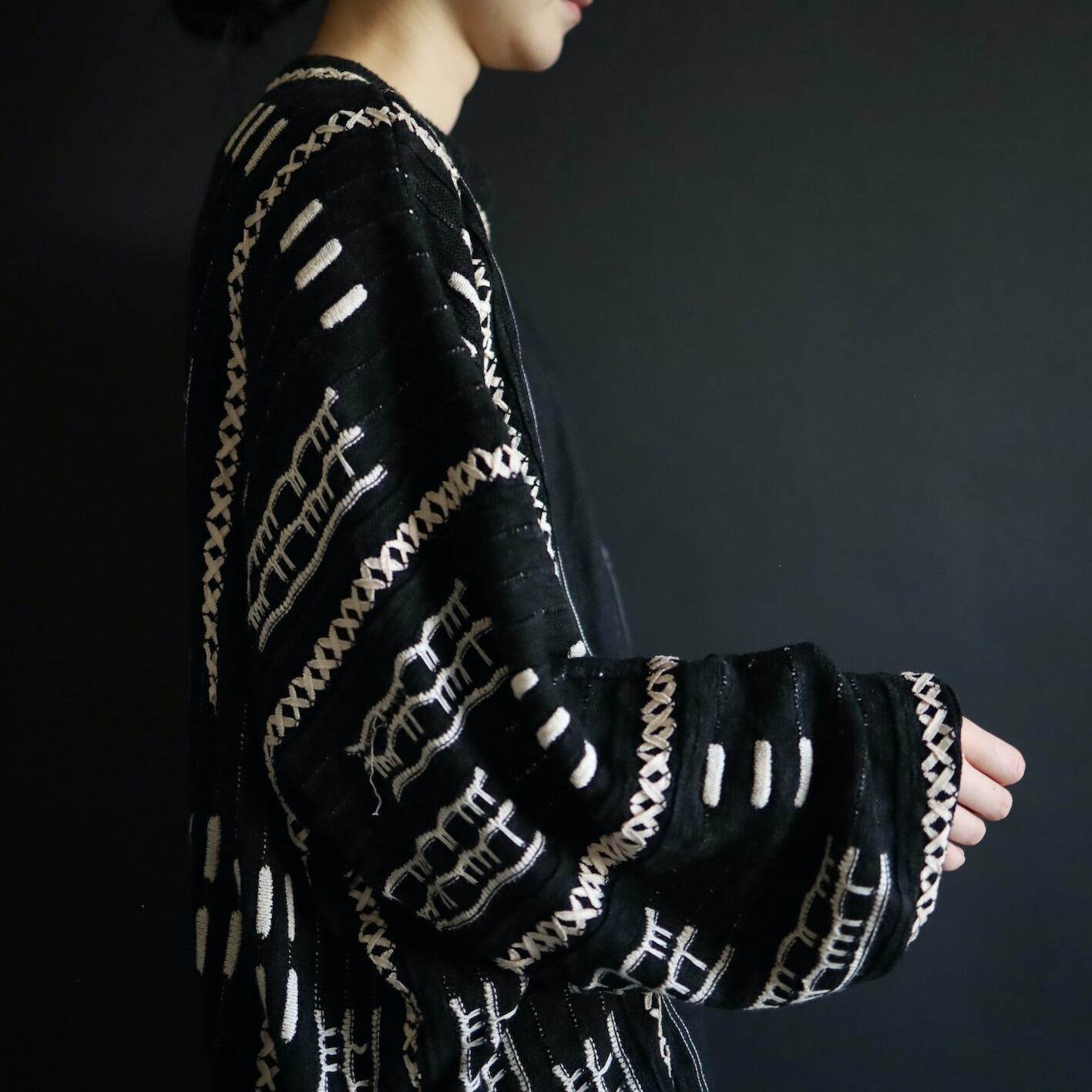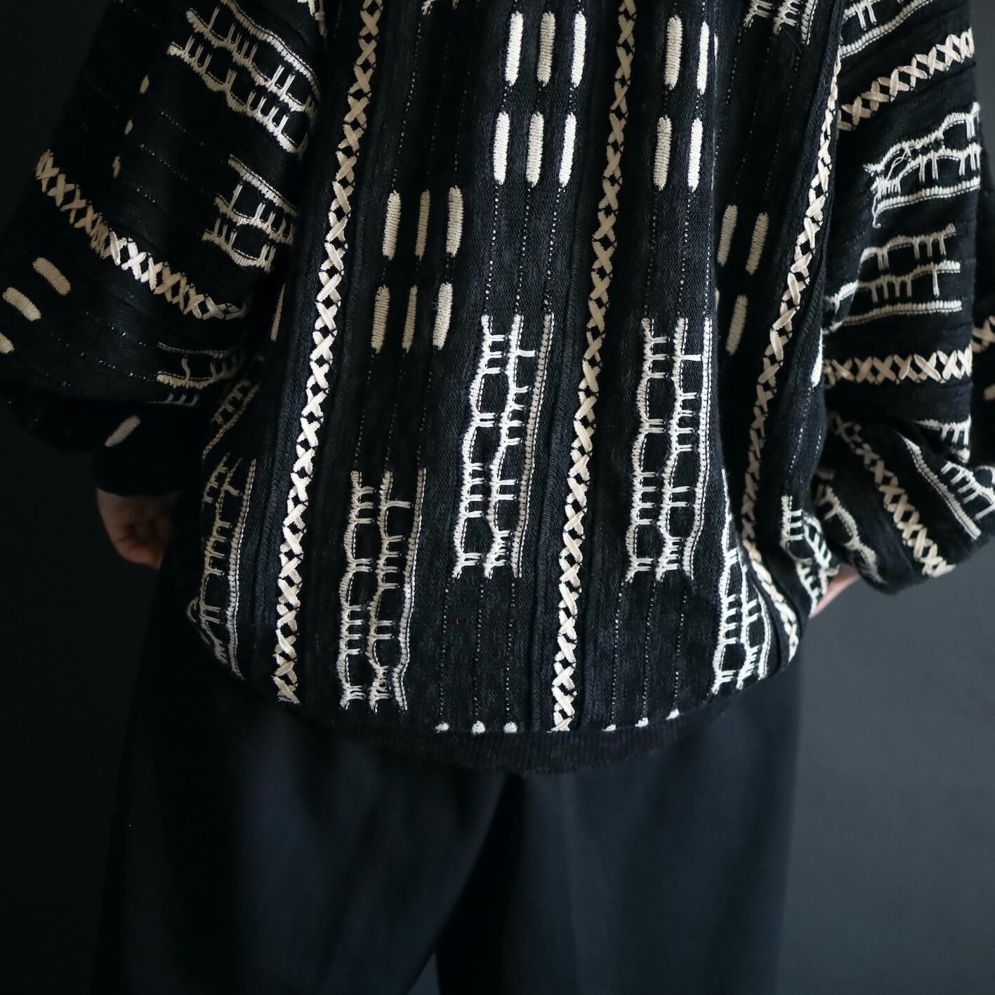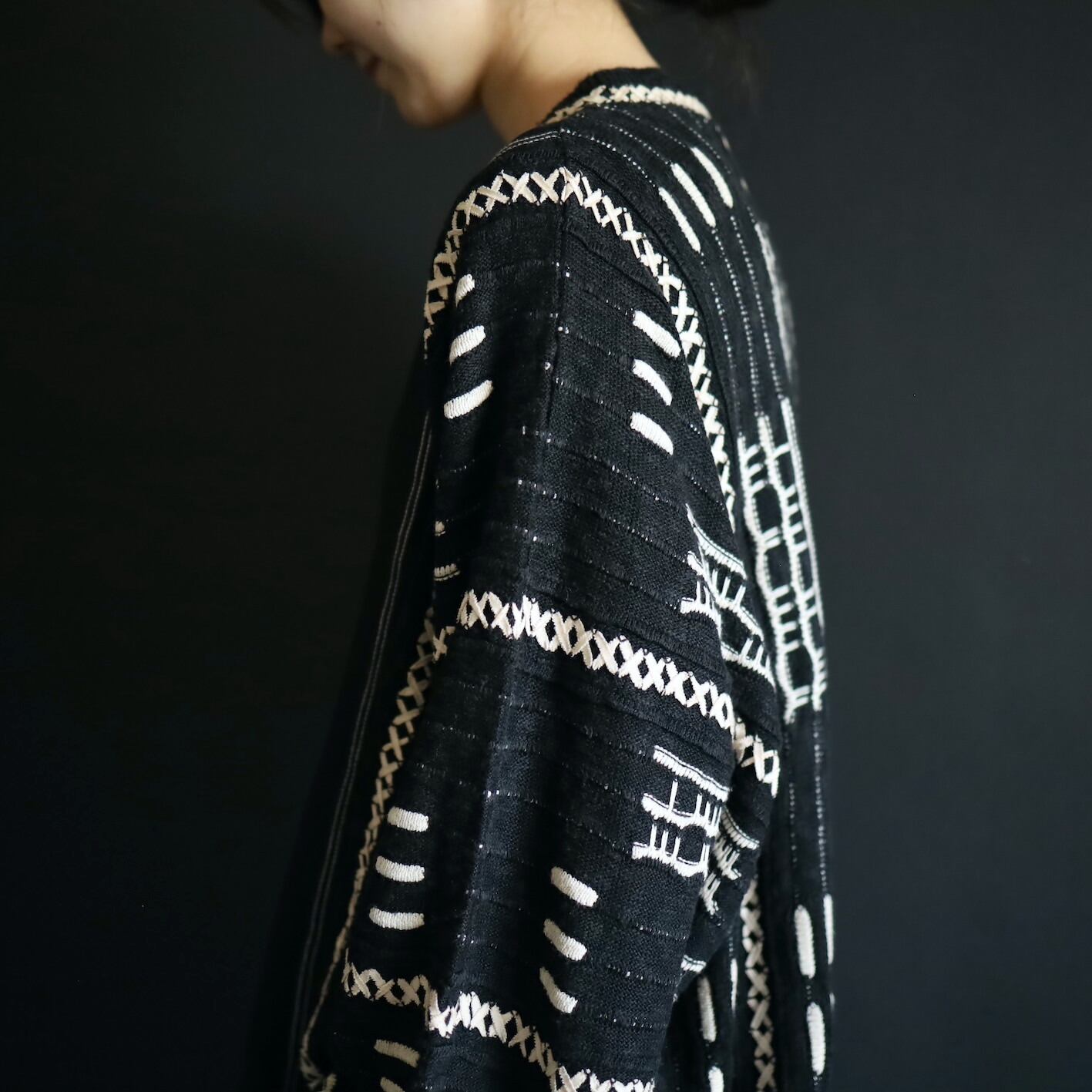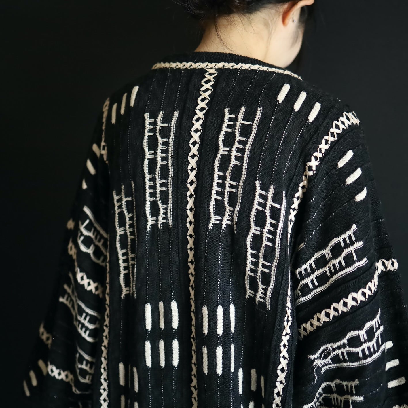 ブラックベースのボディの中で,ホワイトの凝った編み込みが主張するセンス抜群の一枚.