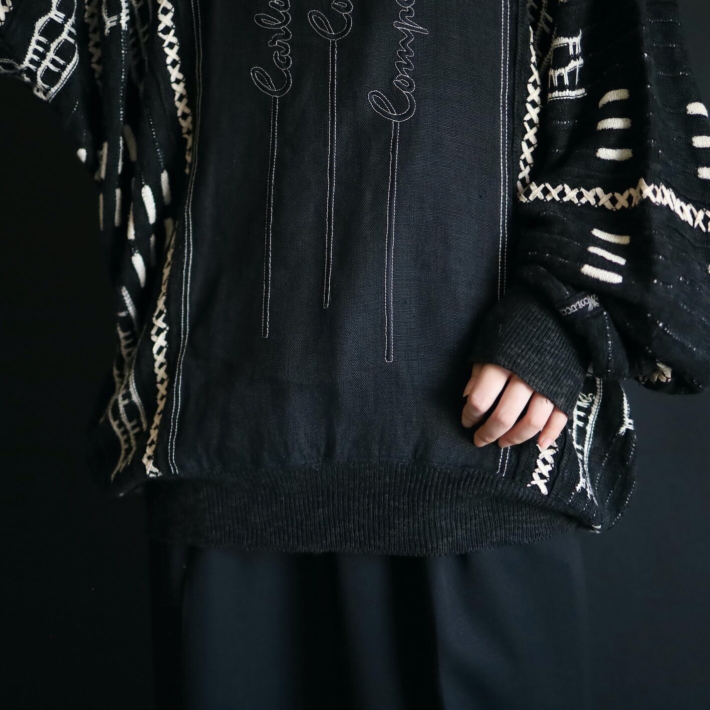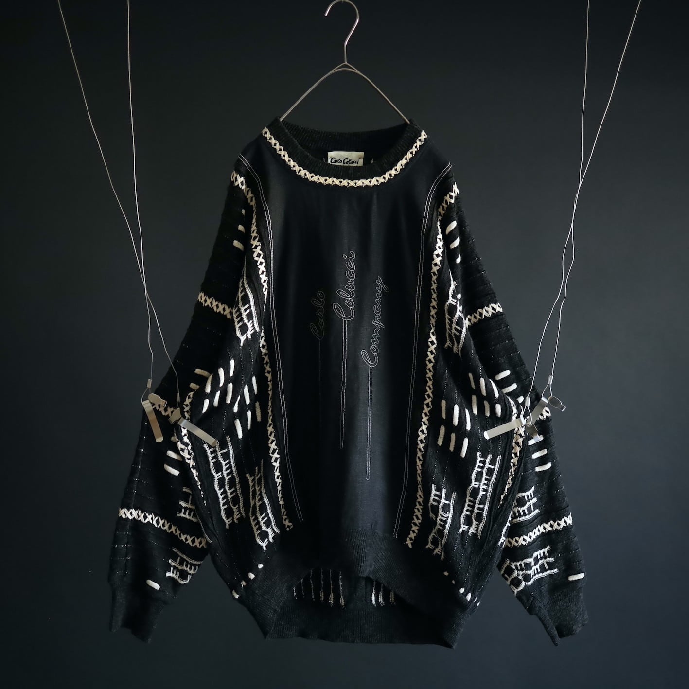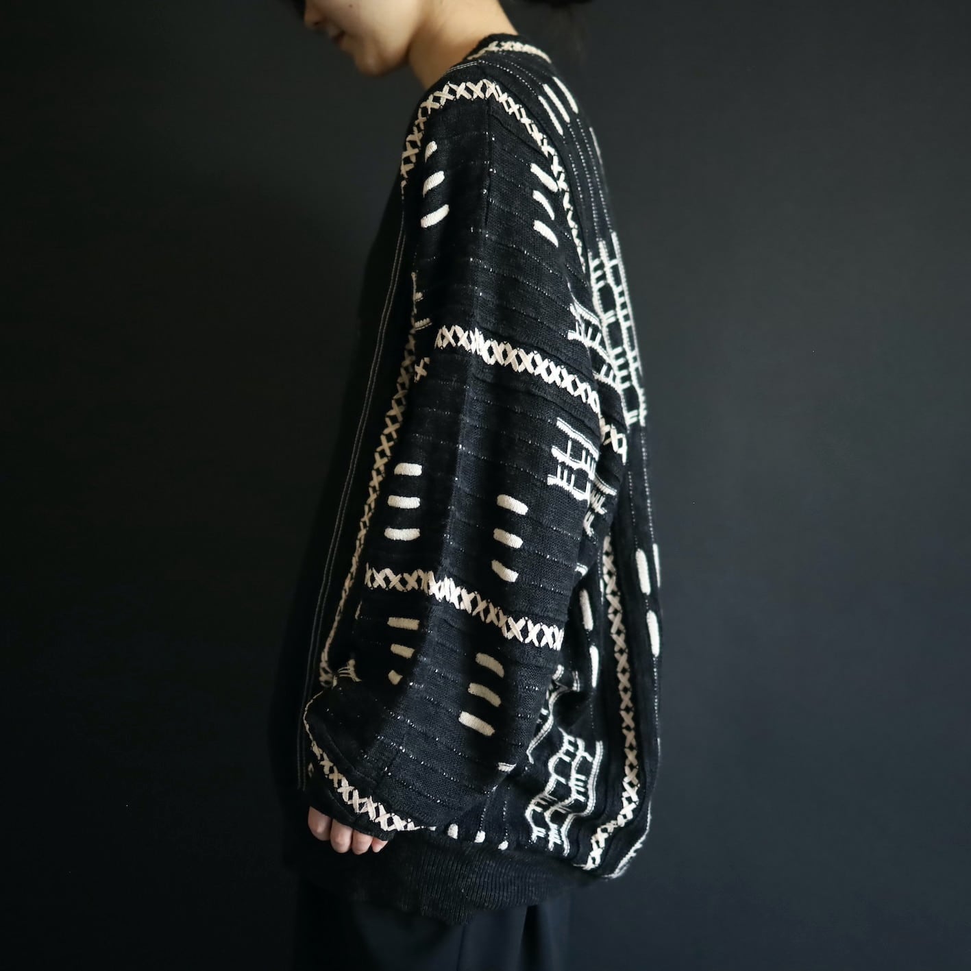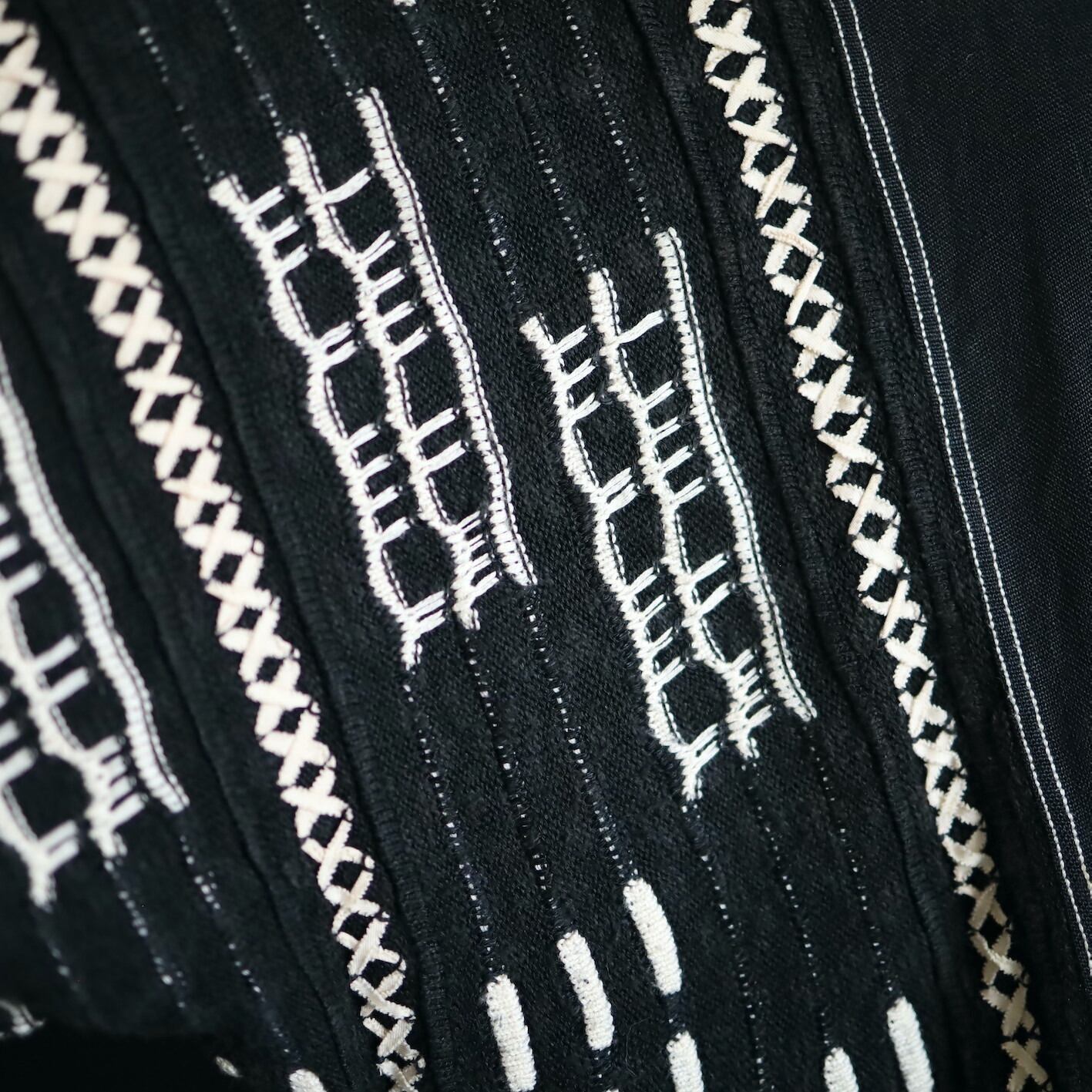 ブラックベースのボディの中で,ホワイトの凝った編み込みが主張するセンス抜群の一枚.