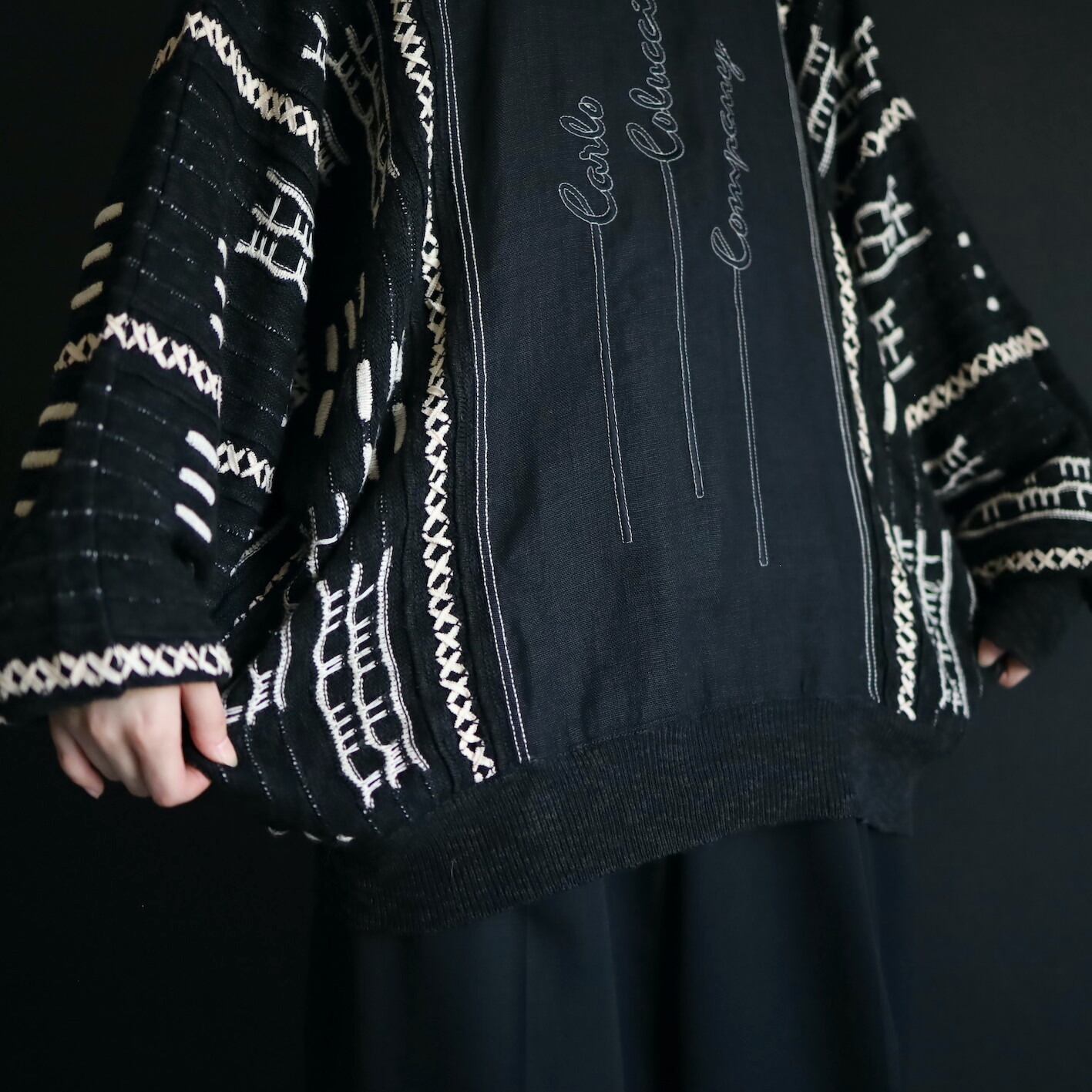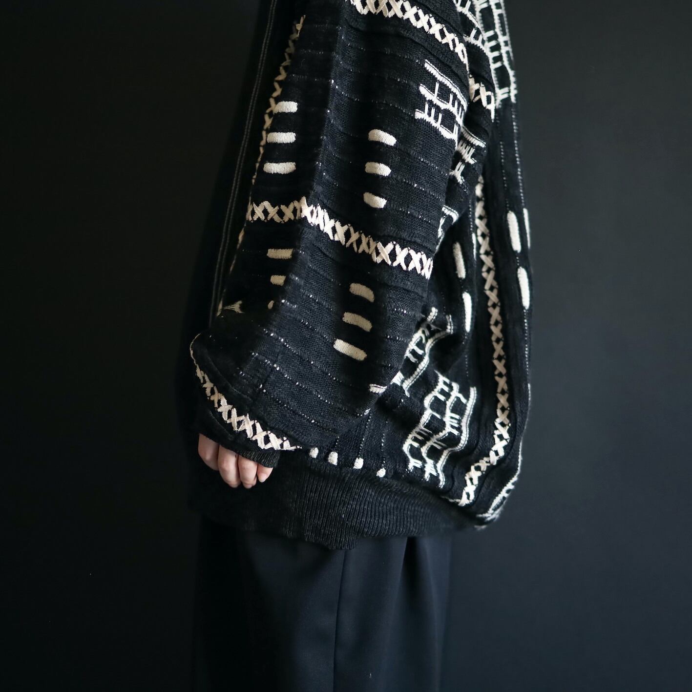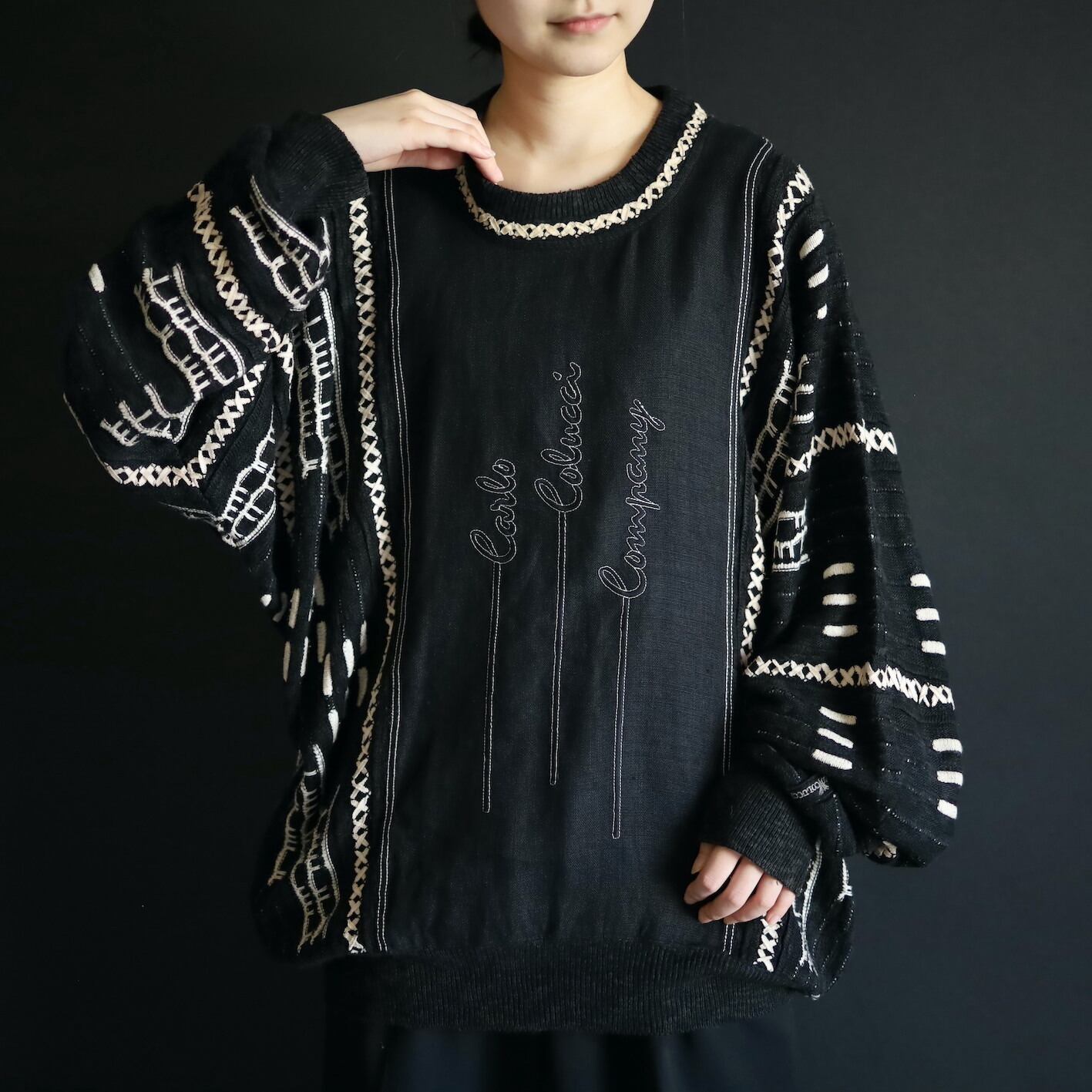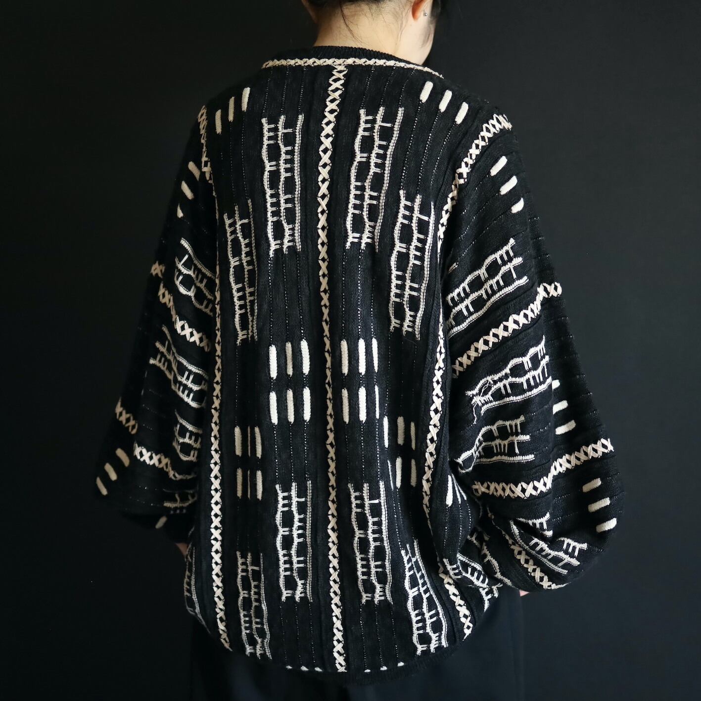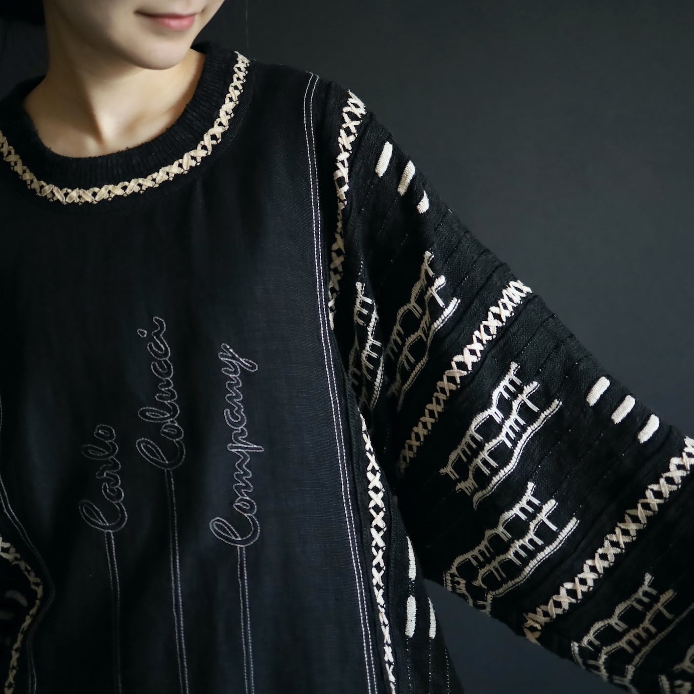 ブラックベースのボディの中で,ホワイトの凝った編み込みが主張するセンス抜群の一枚.