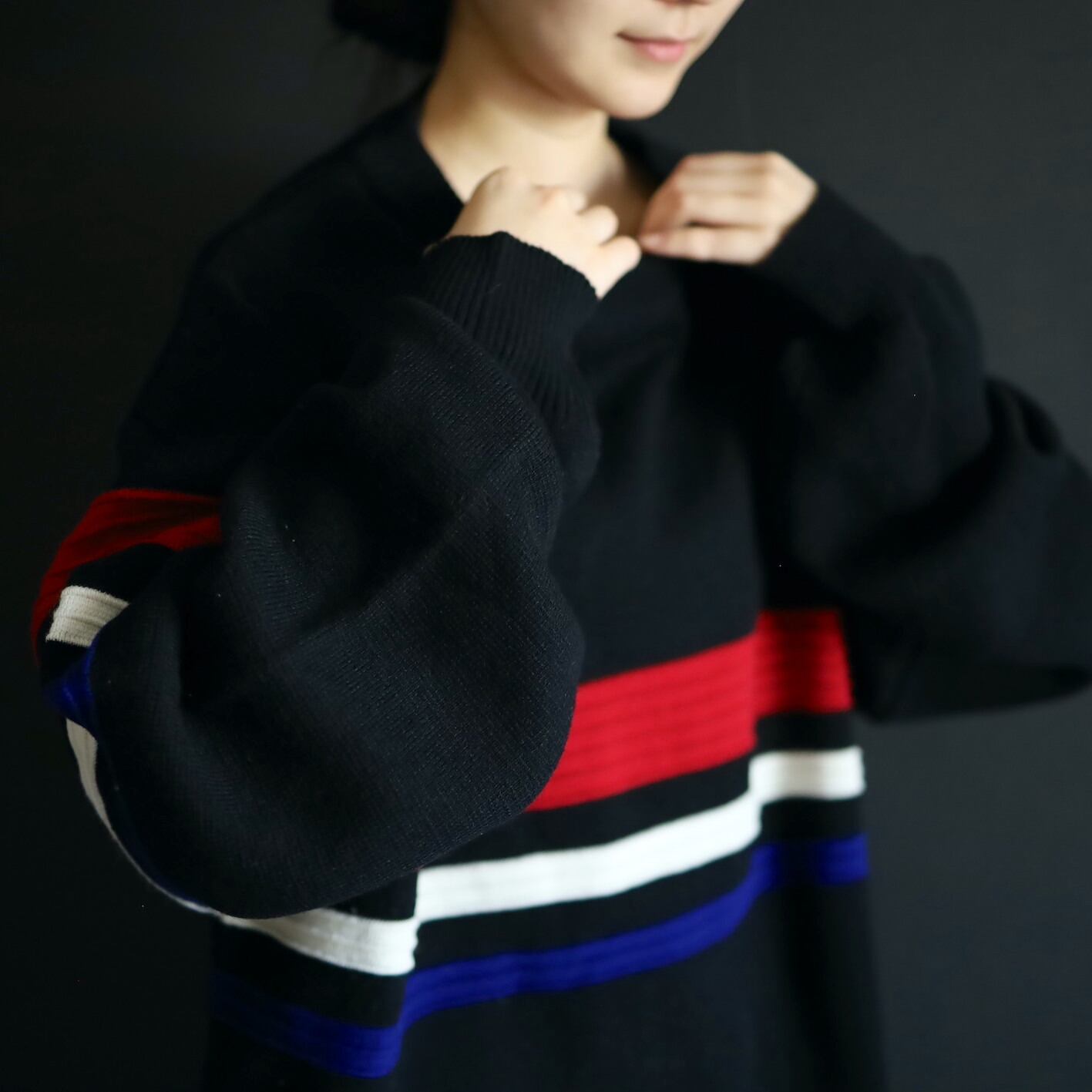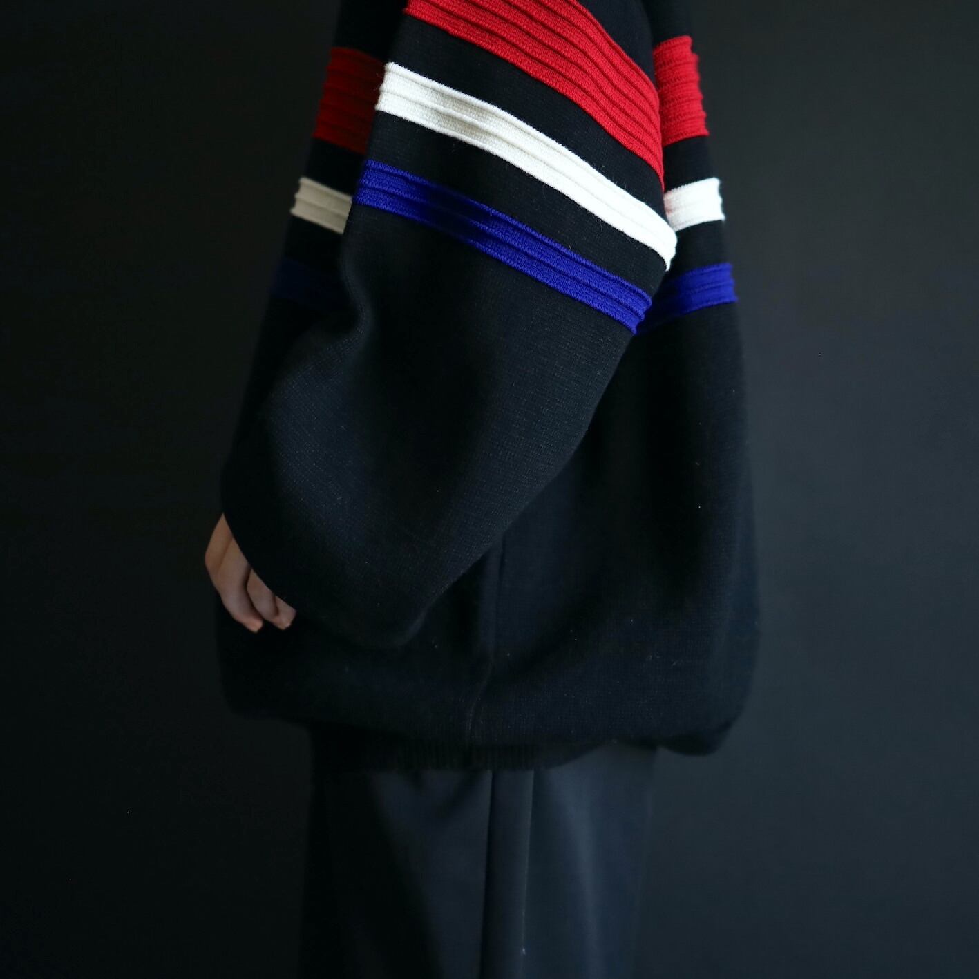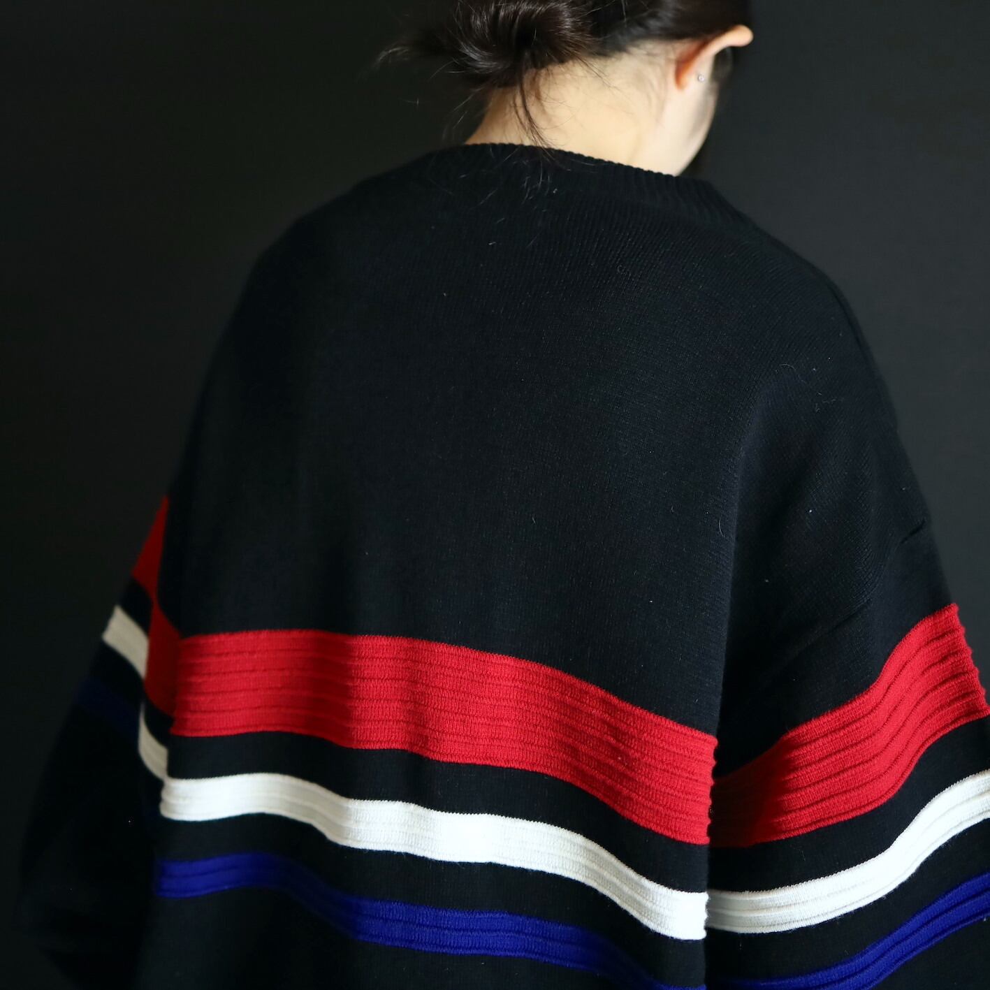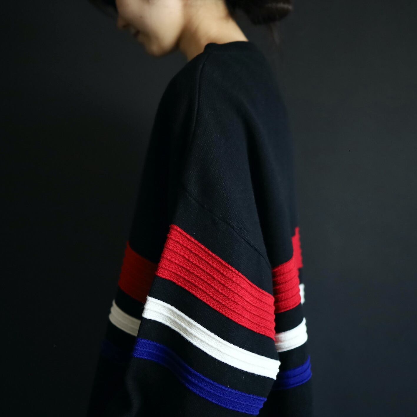 上から下まで総ボーダーとは違い,ワンポイントボーダーにすることで,ブラックもラインもどちらも引き立つ計算された一枚.