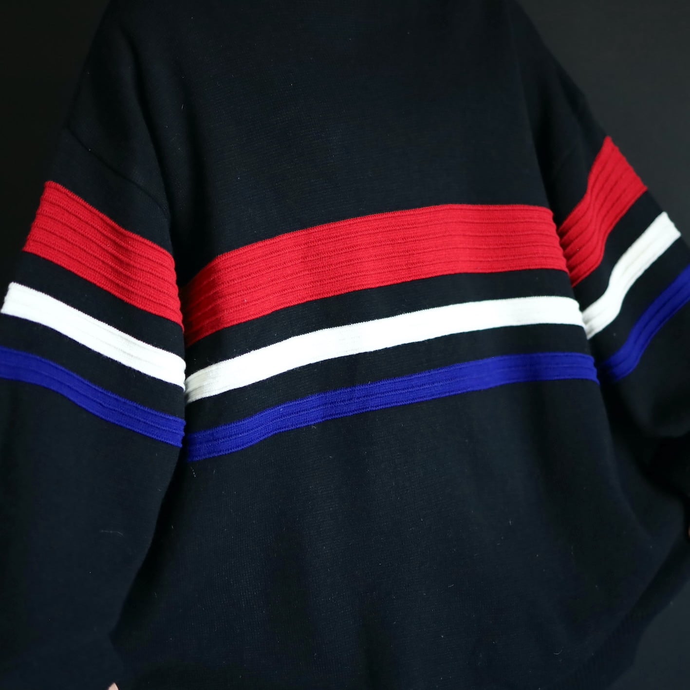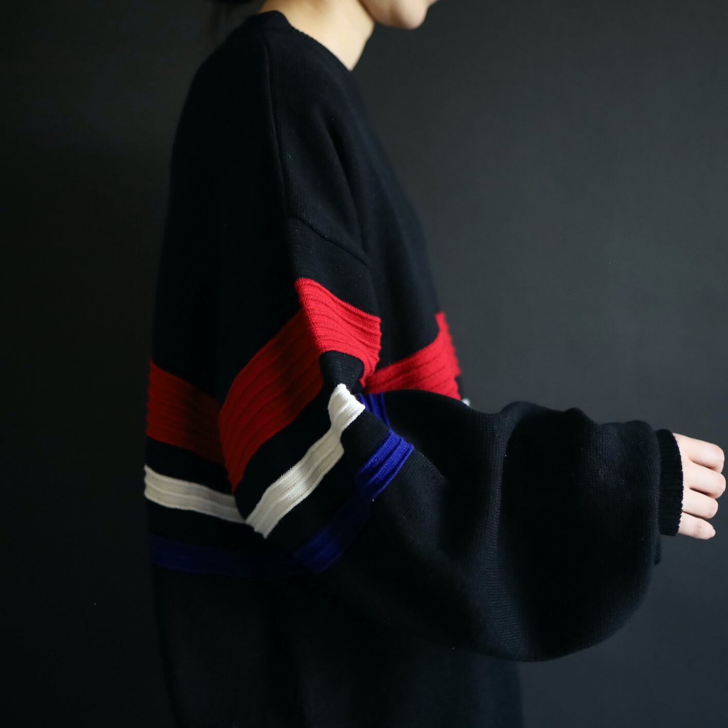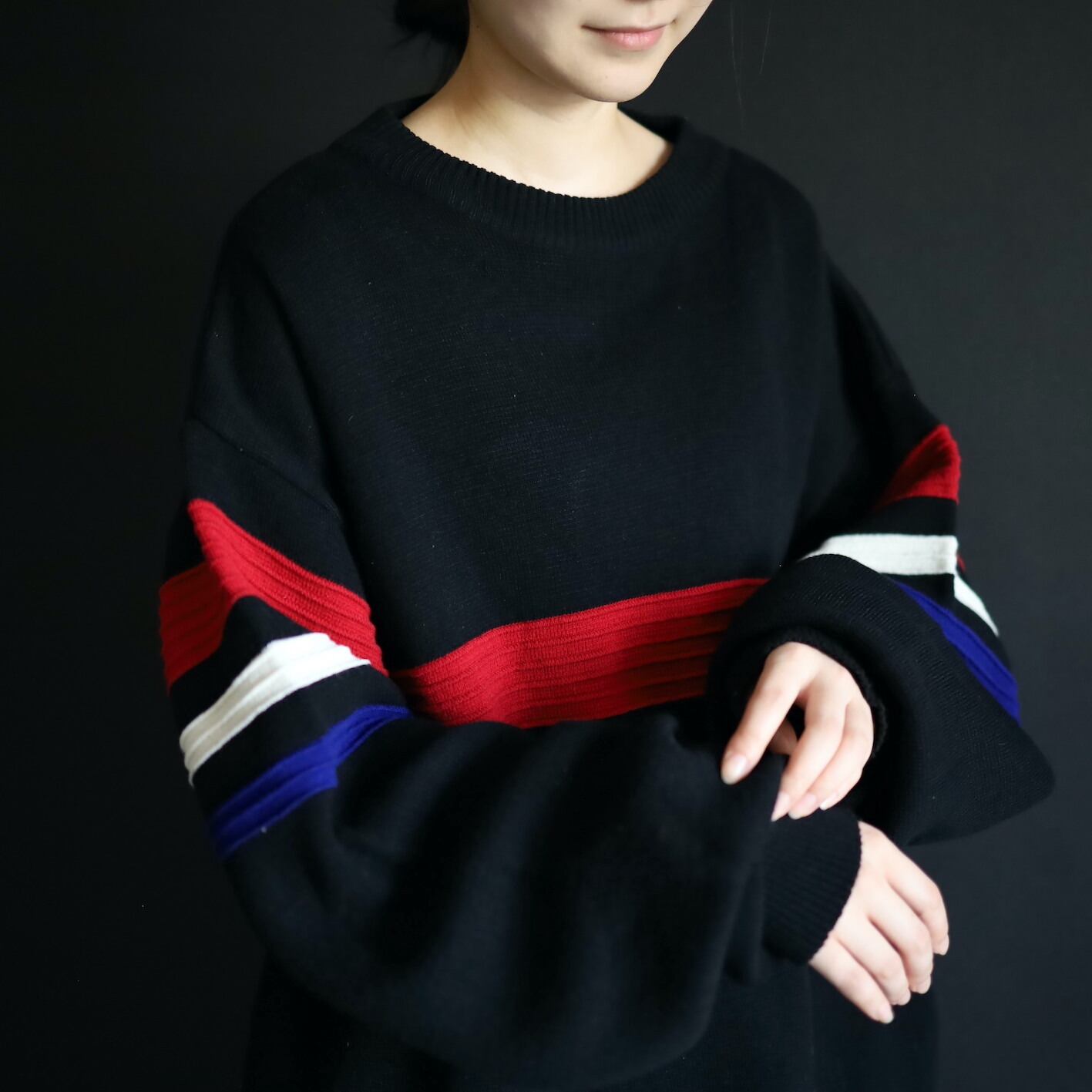 上から下まで総ボーダーとは違い,ワンポイントボーダーにすることで,ブラックもラインもどちらも引き立つ計算された一枚.