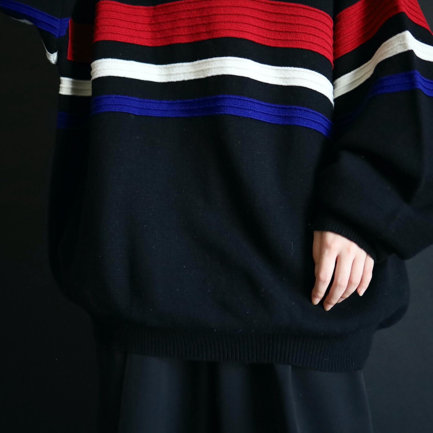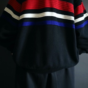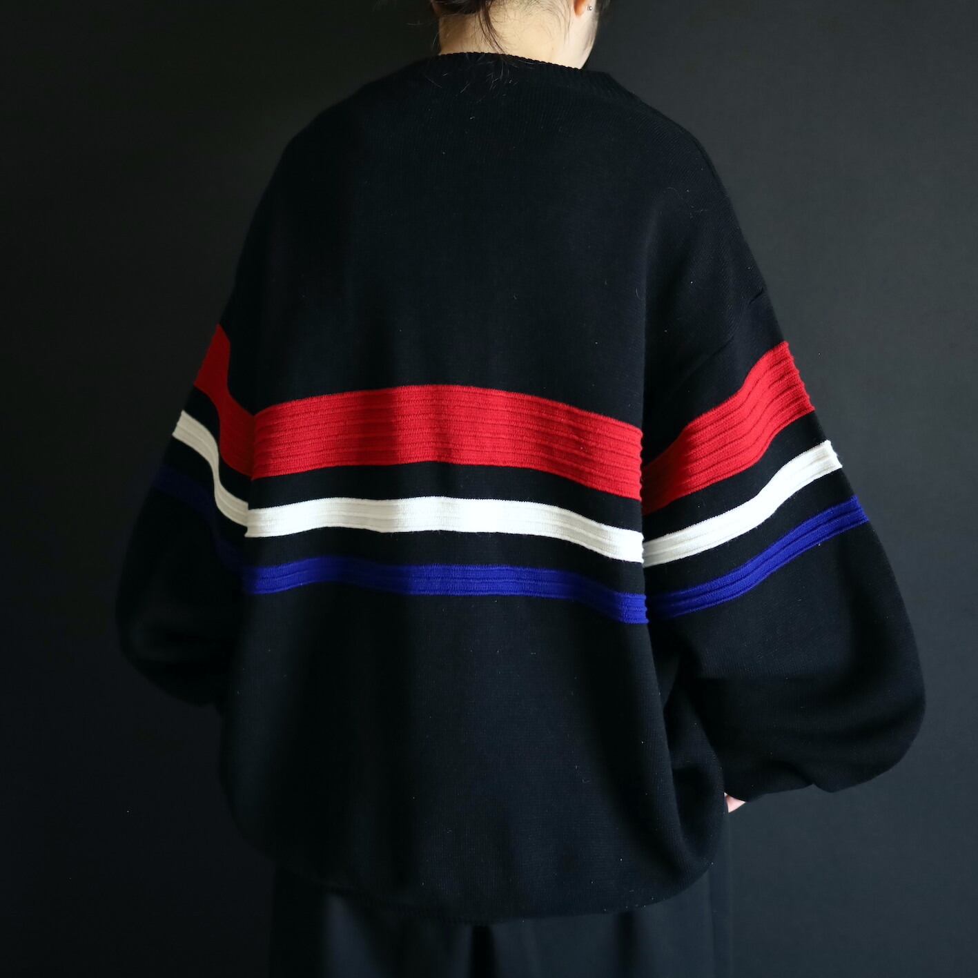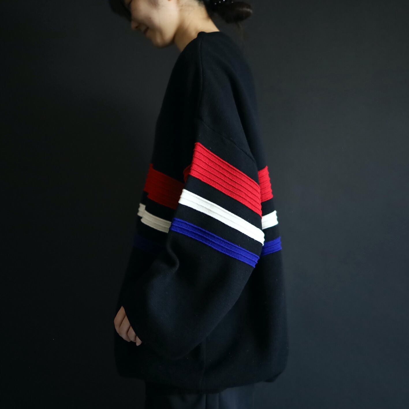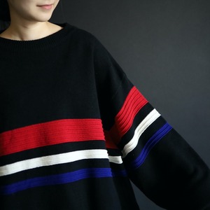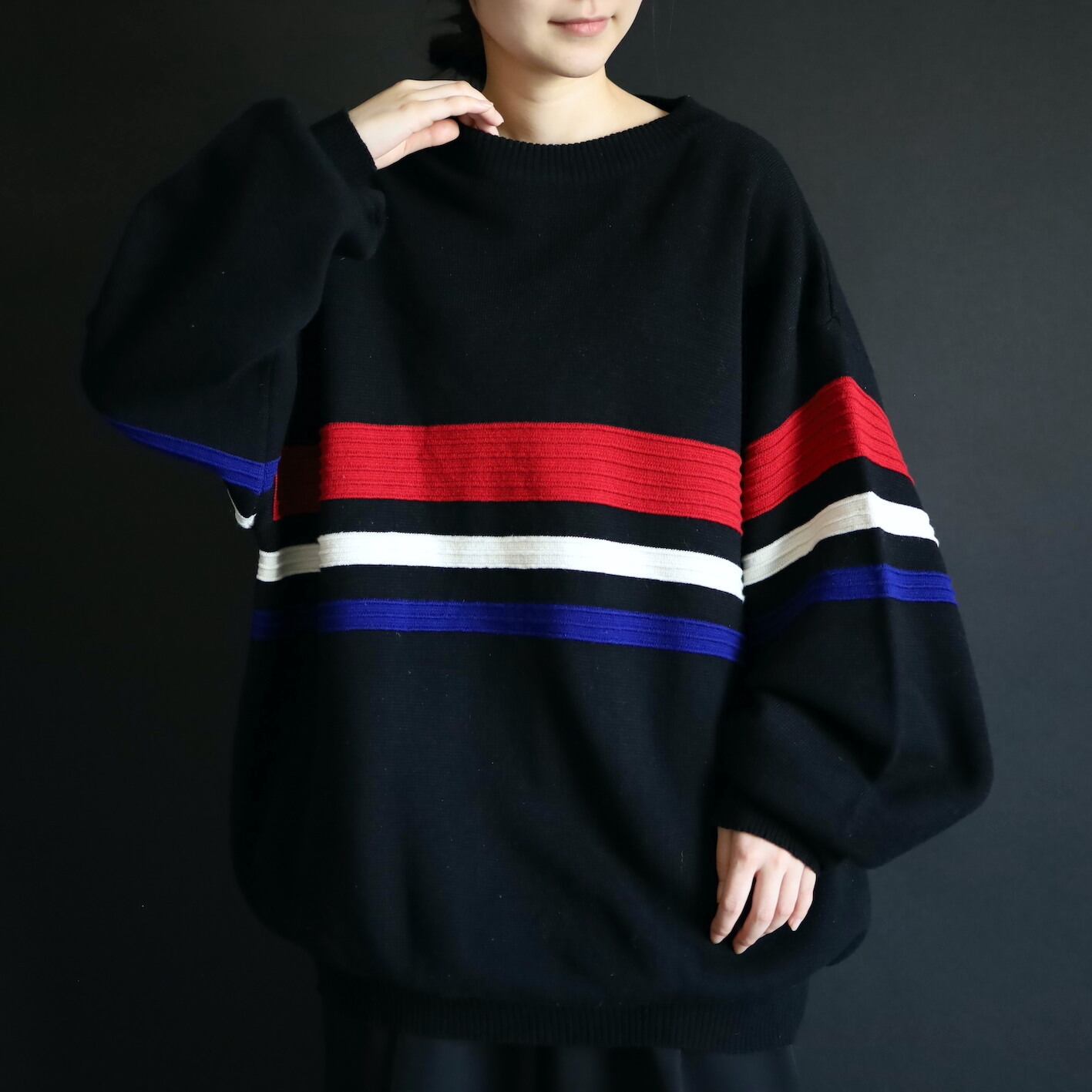 上から下まで総ボーダーとは違い,ワンポイントボーダーにすることで,ブラックもラインもどちらも引き立つ計算された一枚.