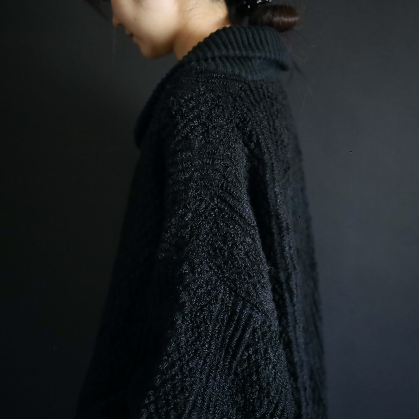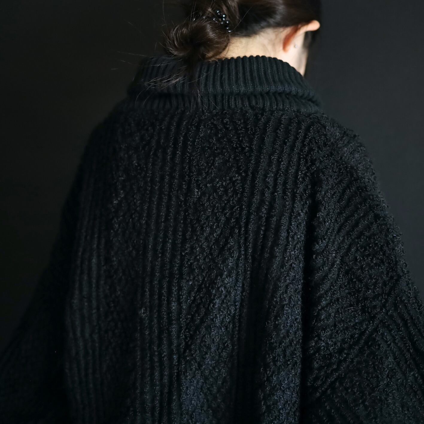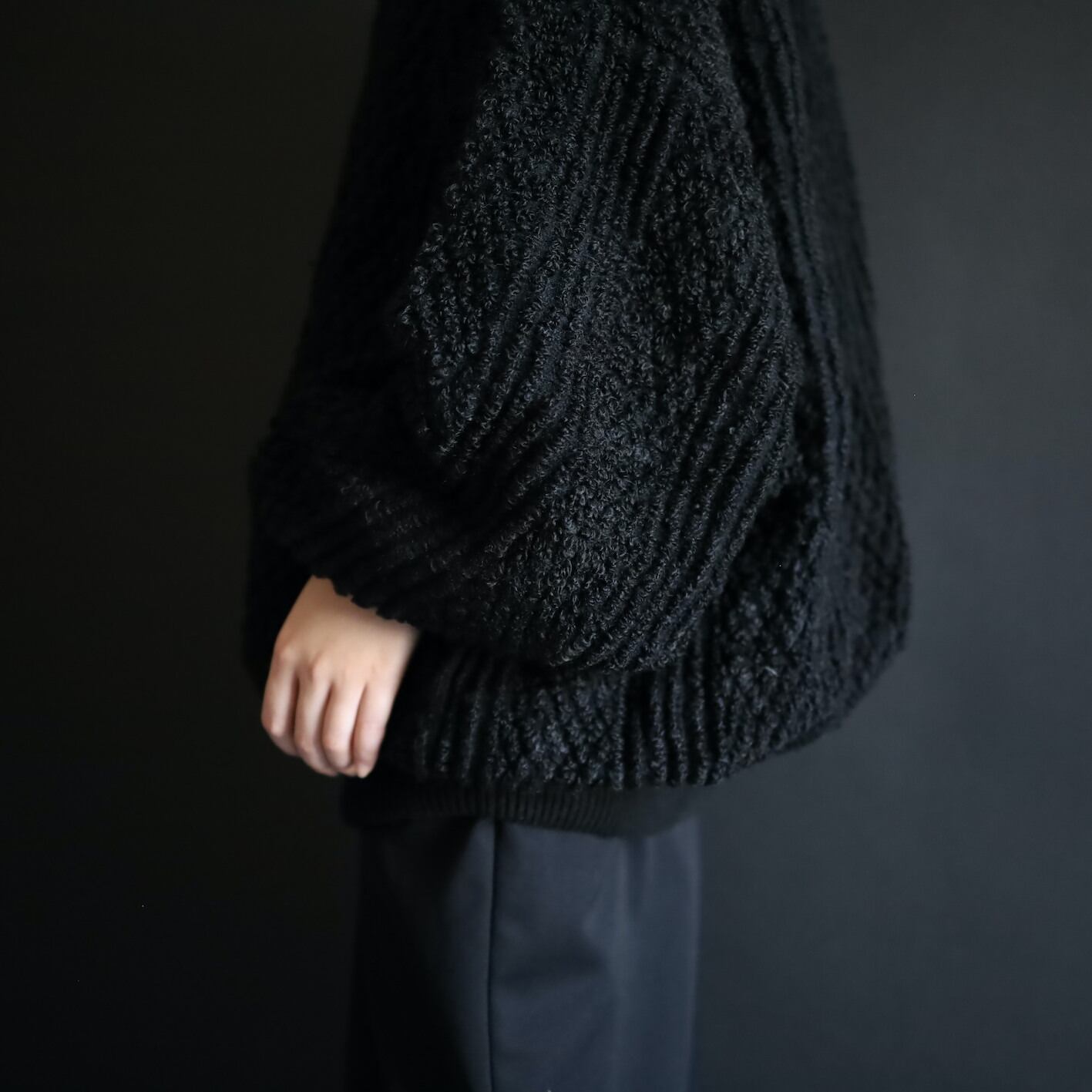 裾,袖のリブに生地が溜まる表情は,ニットセーターとして理想的な"だぼだぼ感".