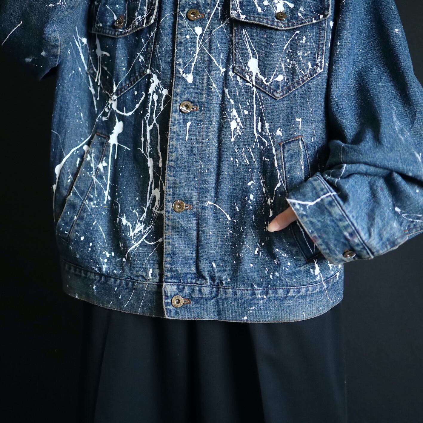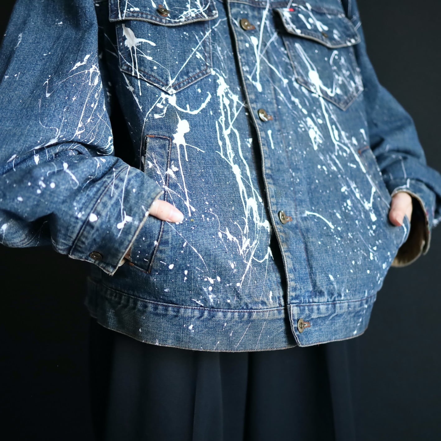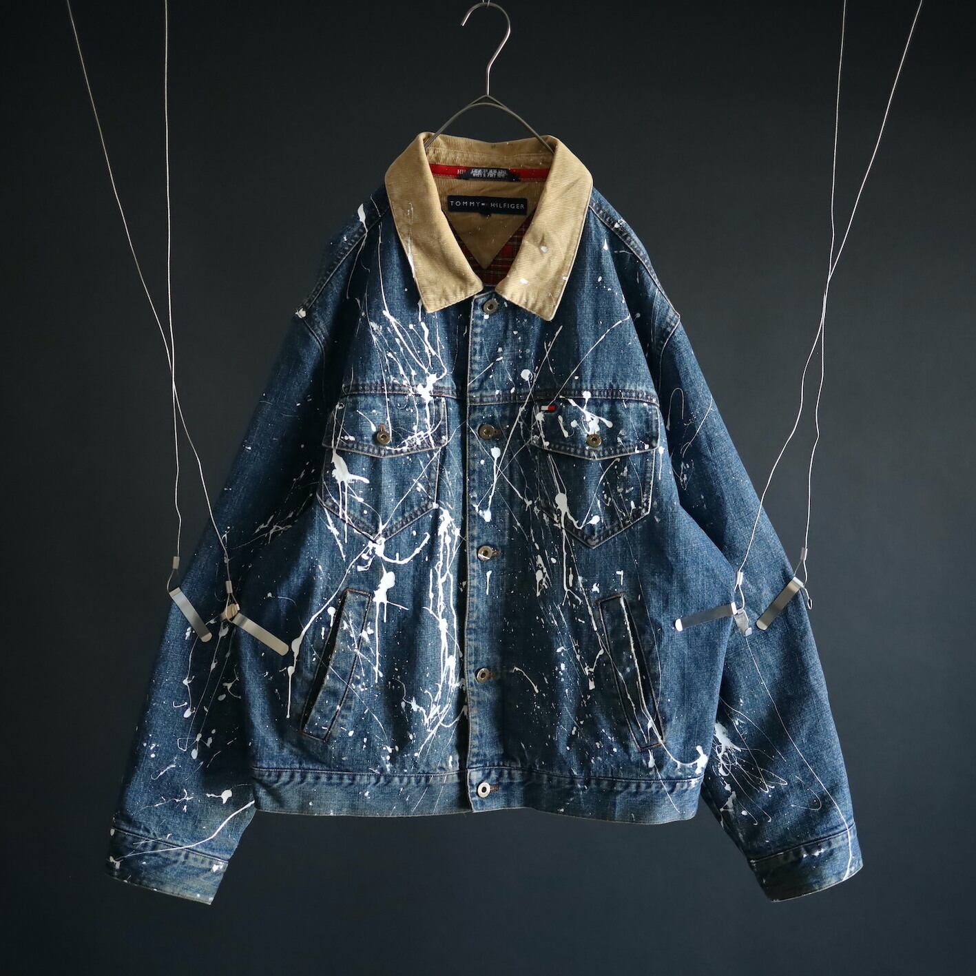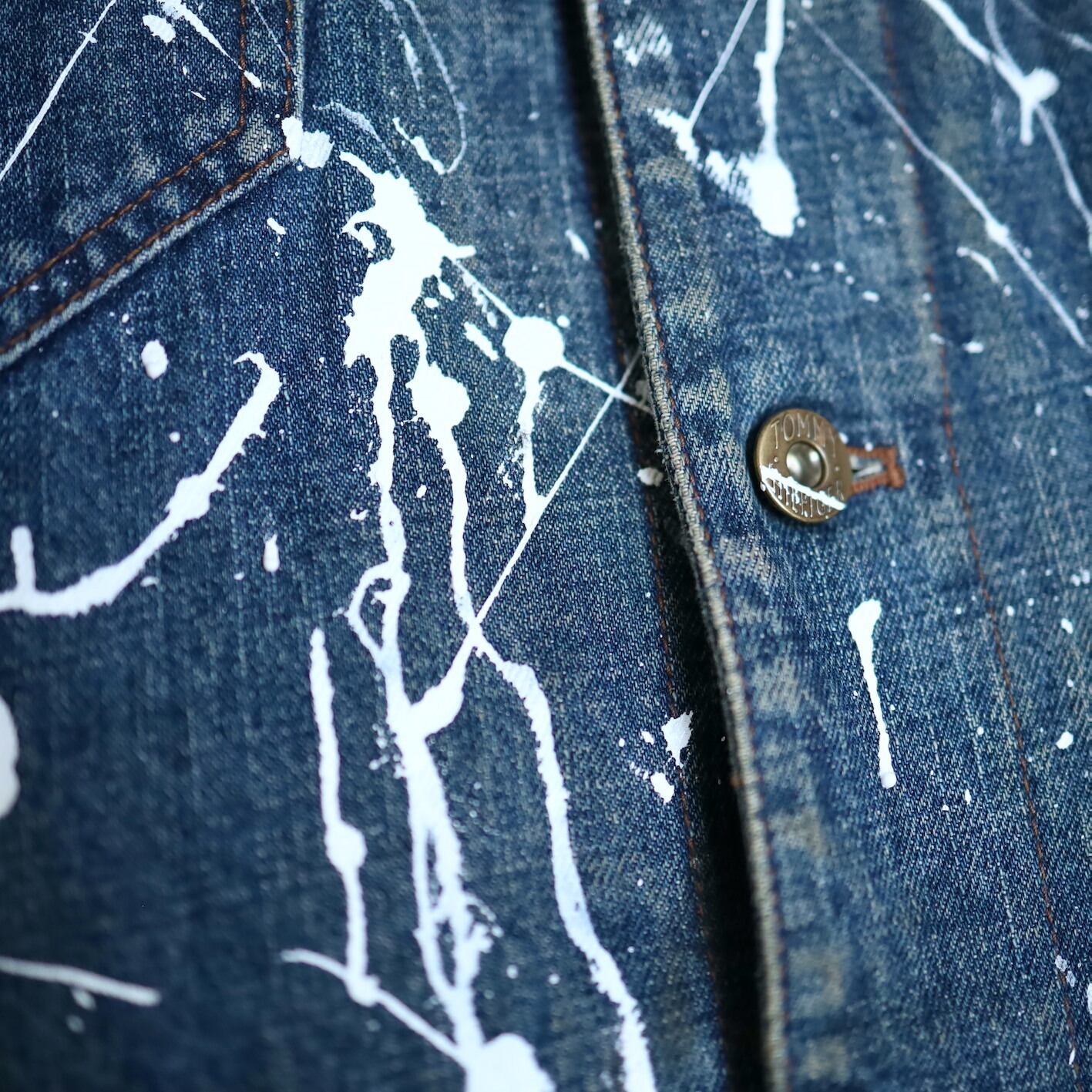 王道のアメカジスタイルにグランジ感を加えて,一般のデニムジャケットとは異なる雰囲気の仕上がり.