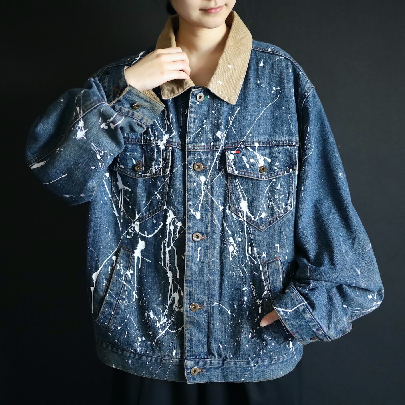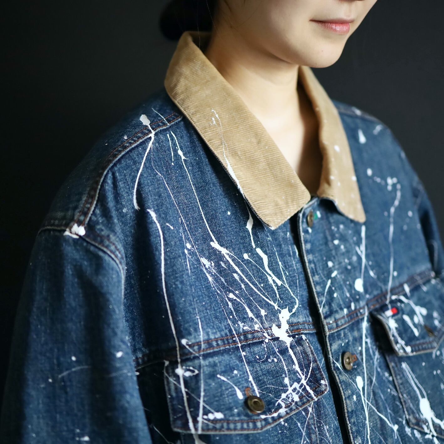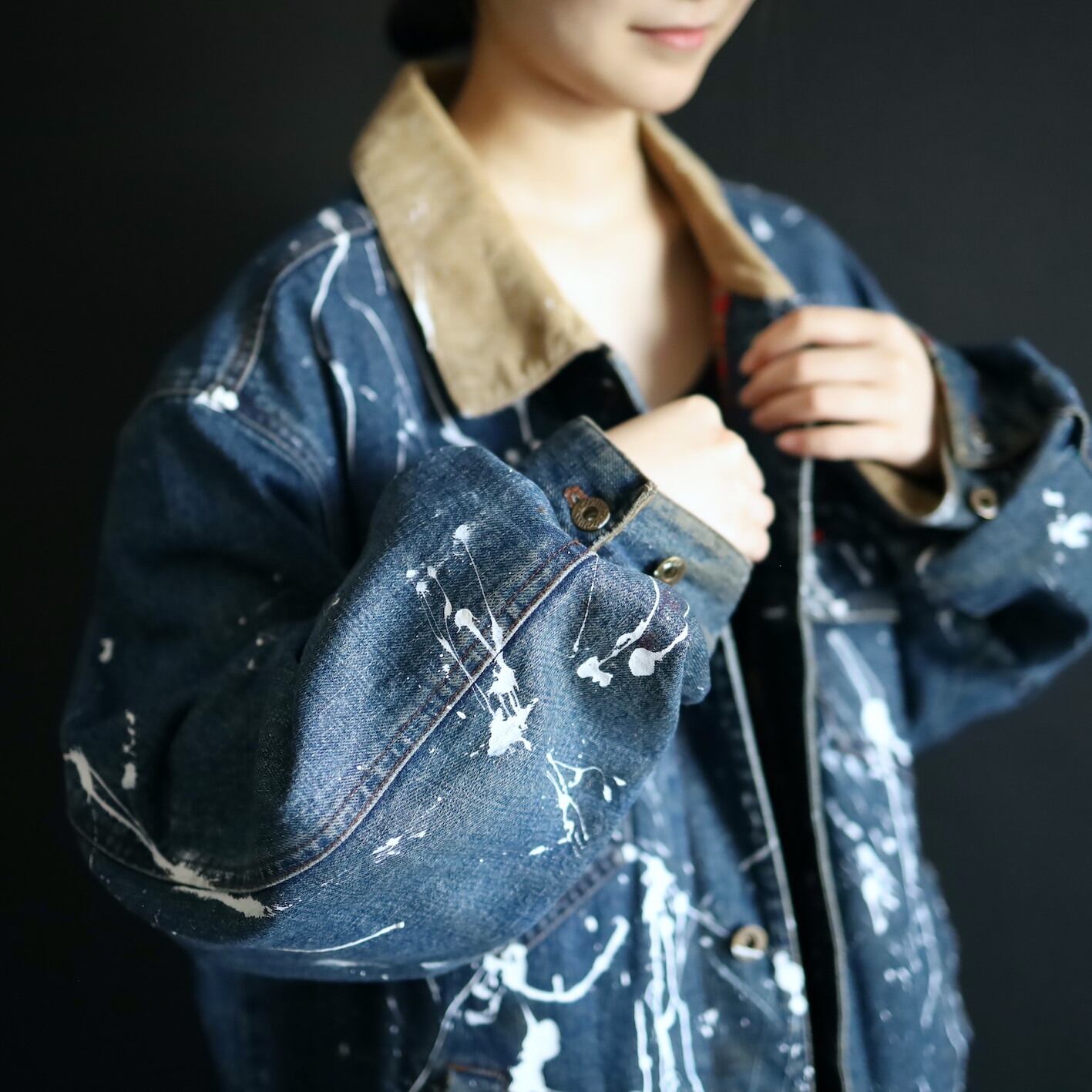 ブルーデニムをベースに,襟がベージュのコーデュロイスイッチ.