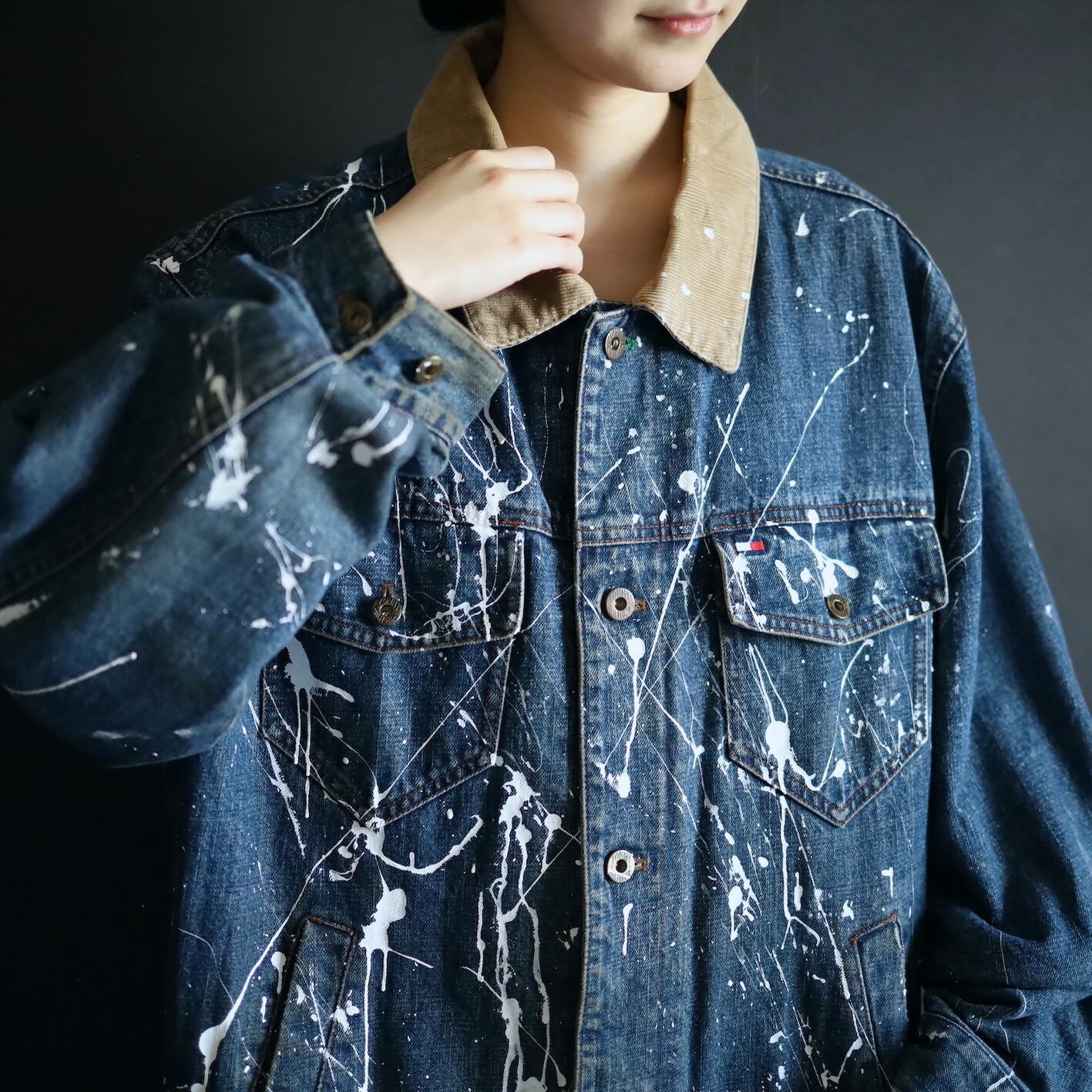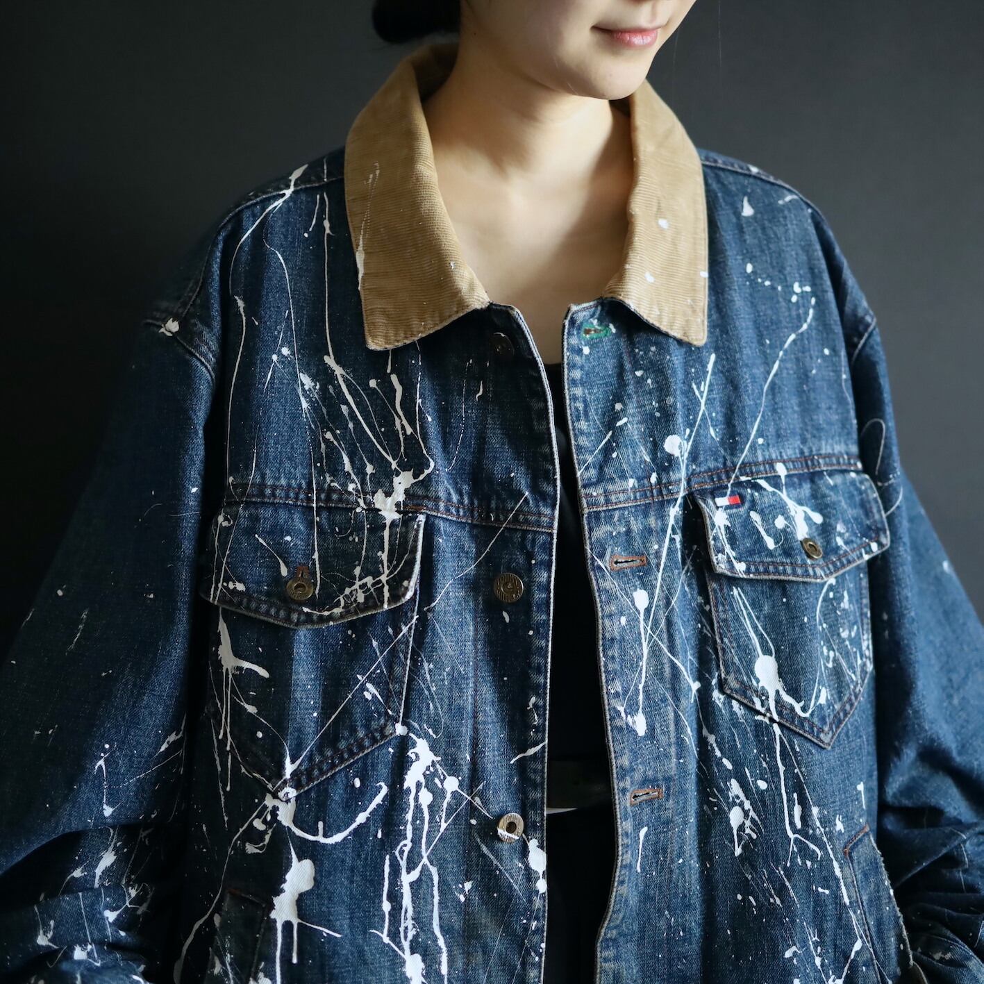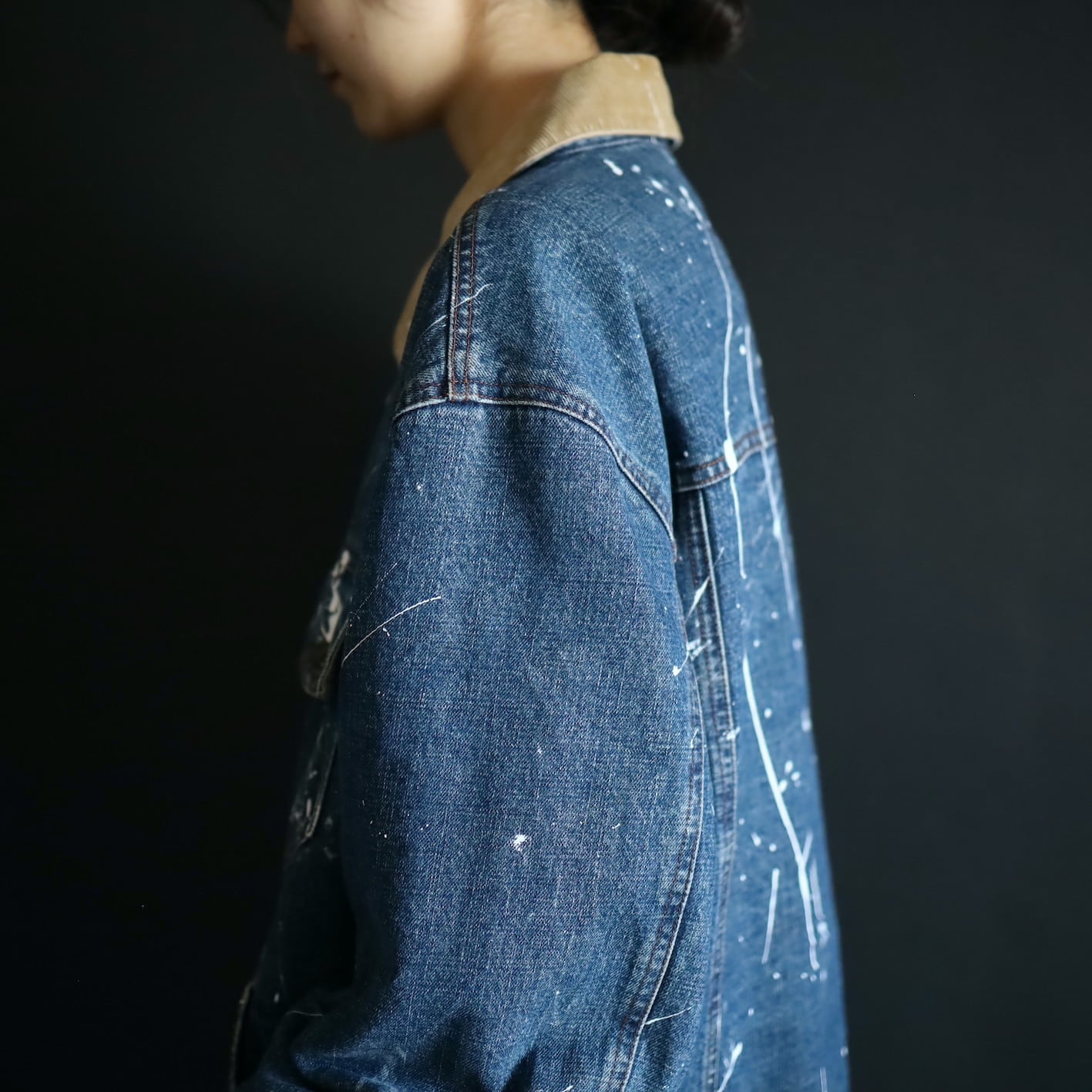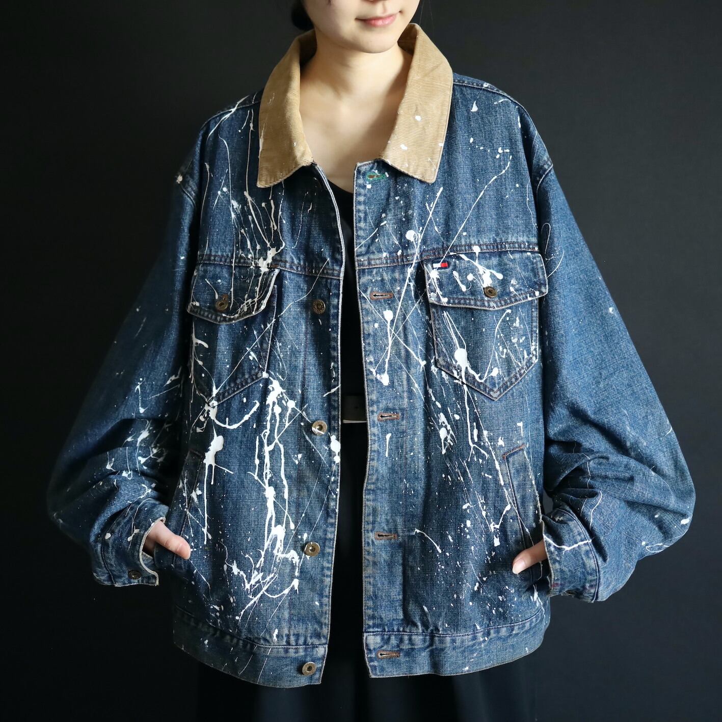 ブルーデニムをベースに,襟がベージュのコーデュロイスイッチ.