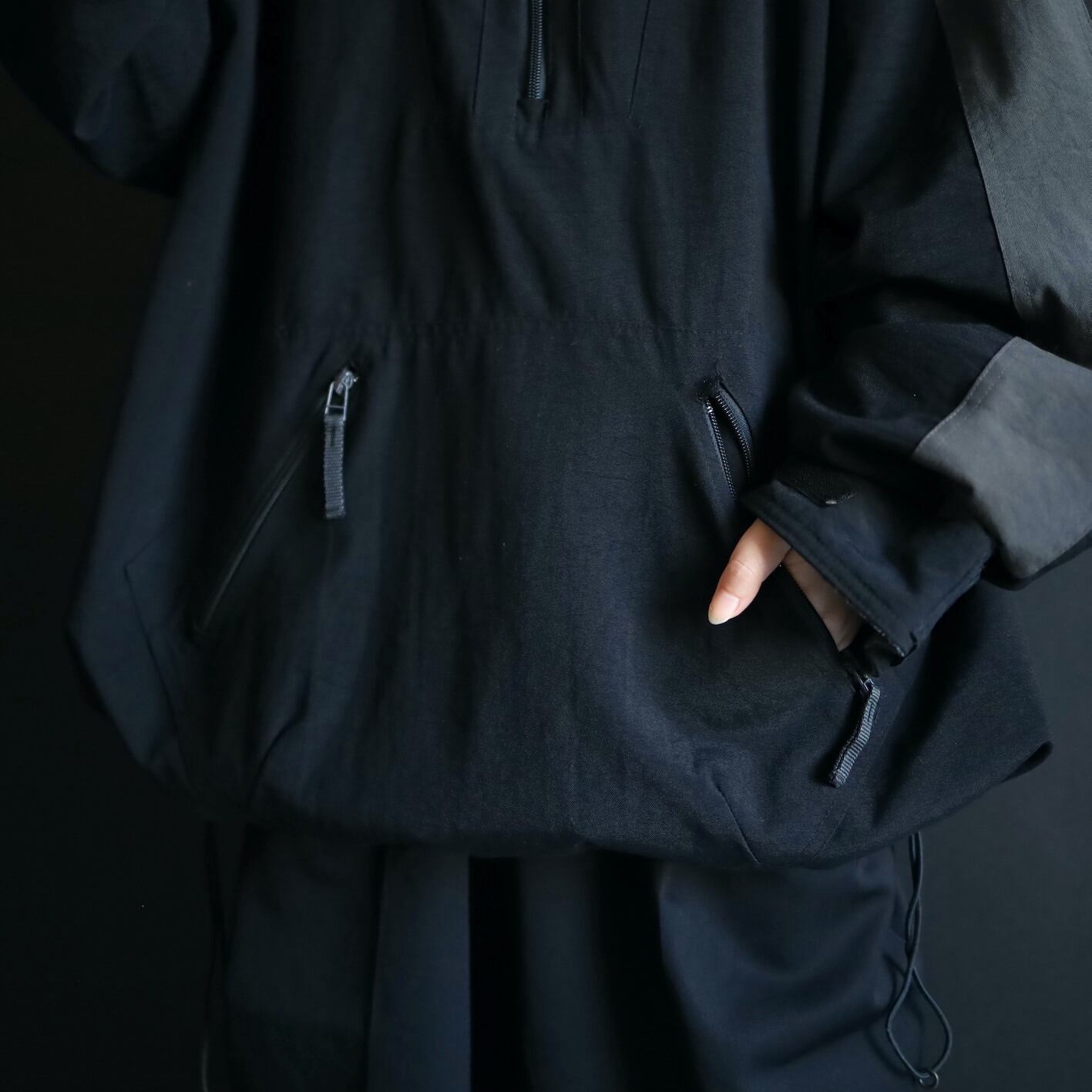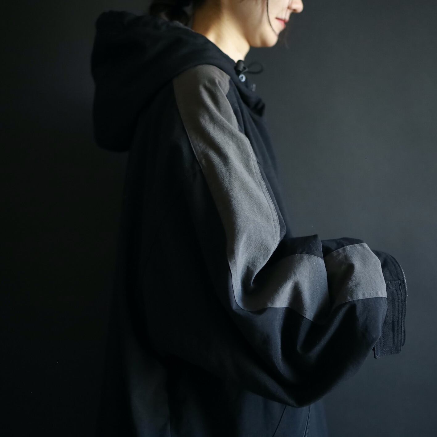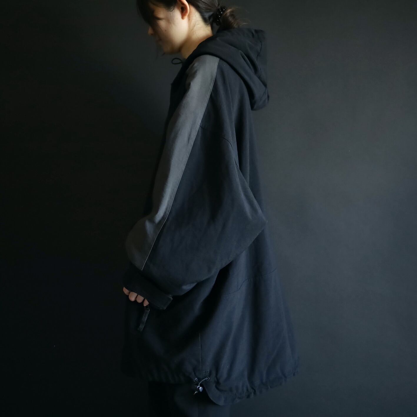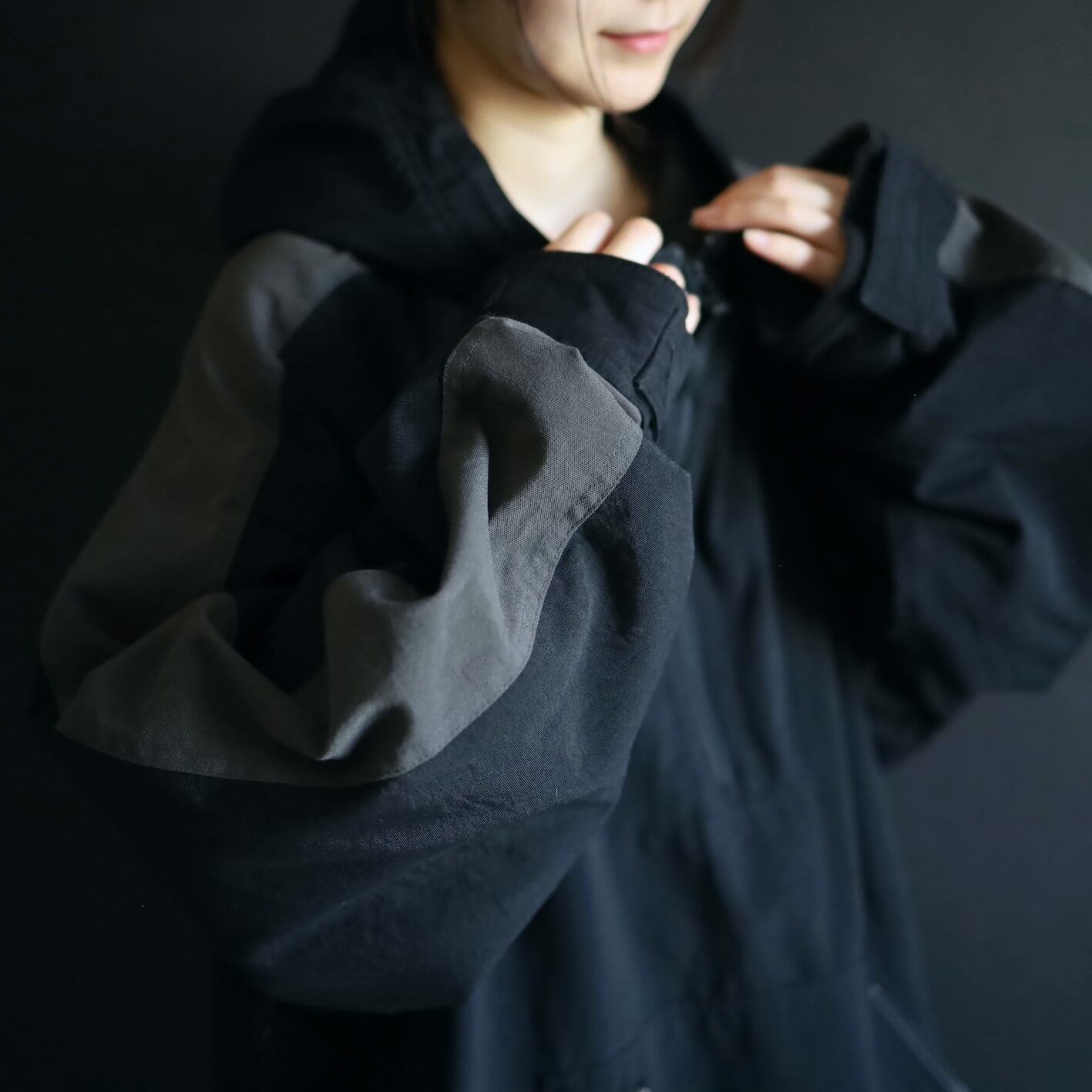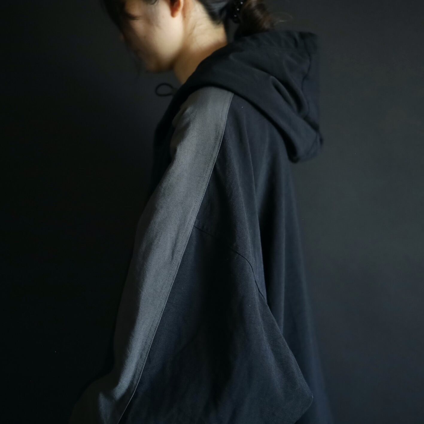 ブラックベースのボディに,首元から袖先までグレーのラインが走るバイカラー.
