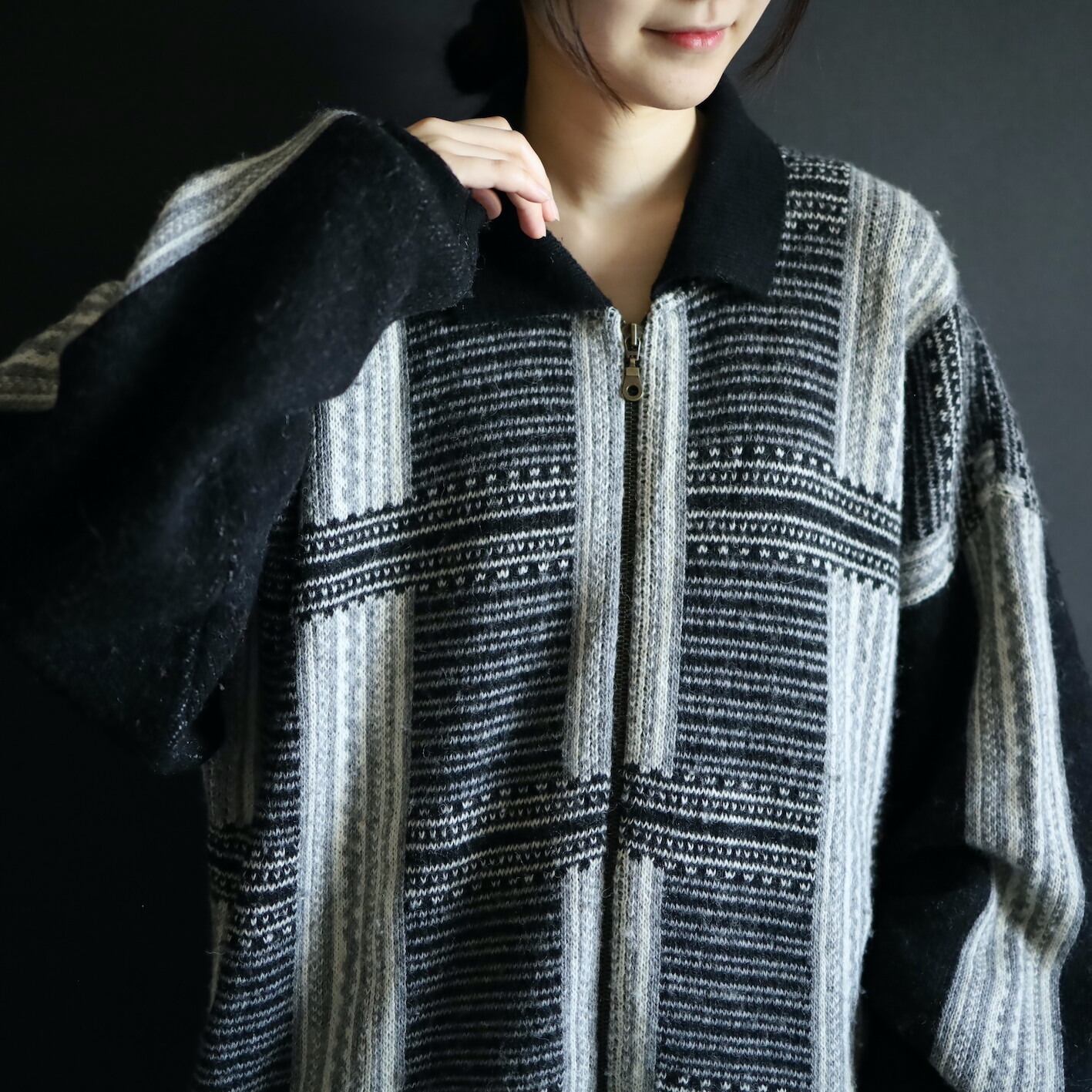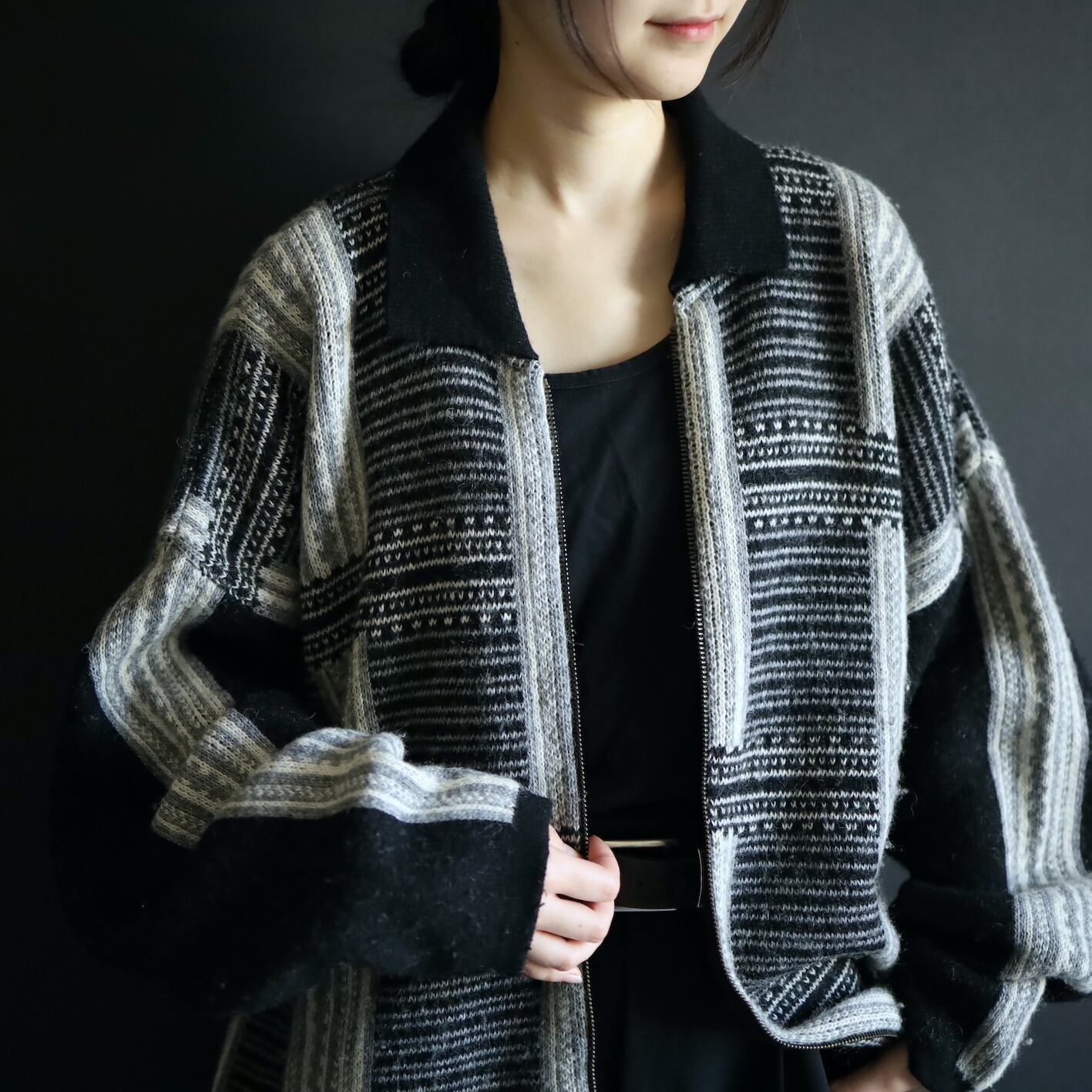 ビッグシルエット,モードなニットジャケット.
