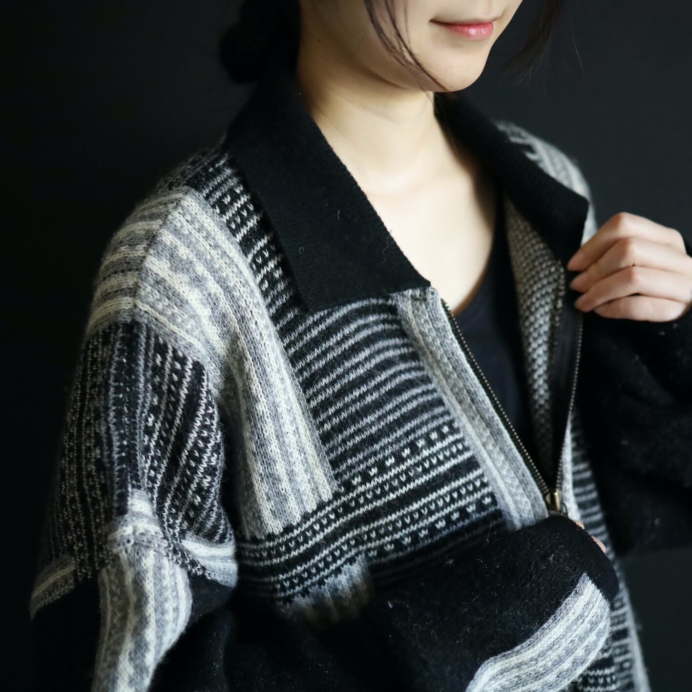 ジャガード編みによる柄も非常に細かく切替り,モノトーンだけでしっかりメリハリが表現されてます.