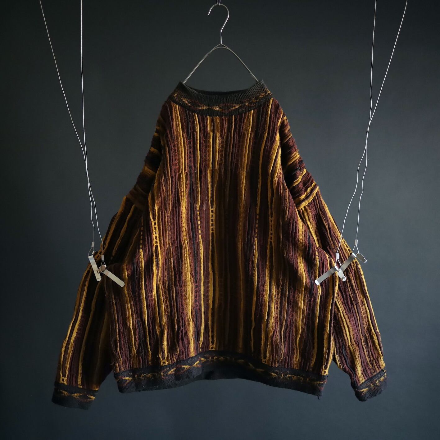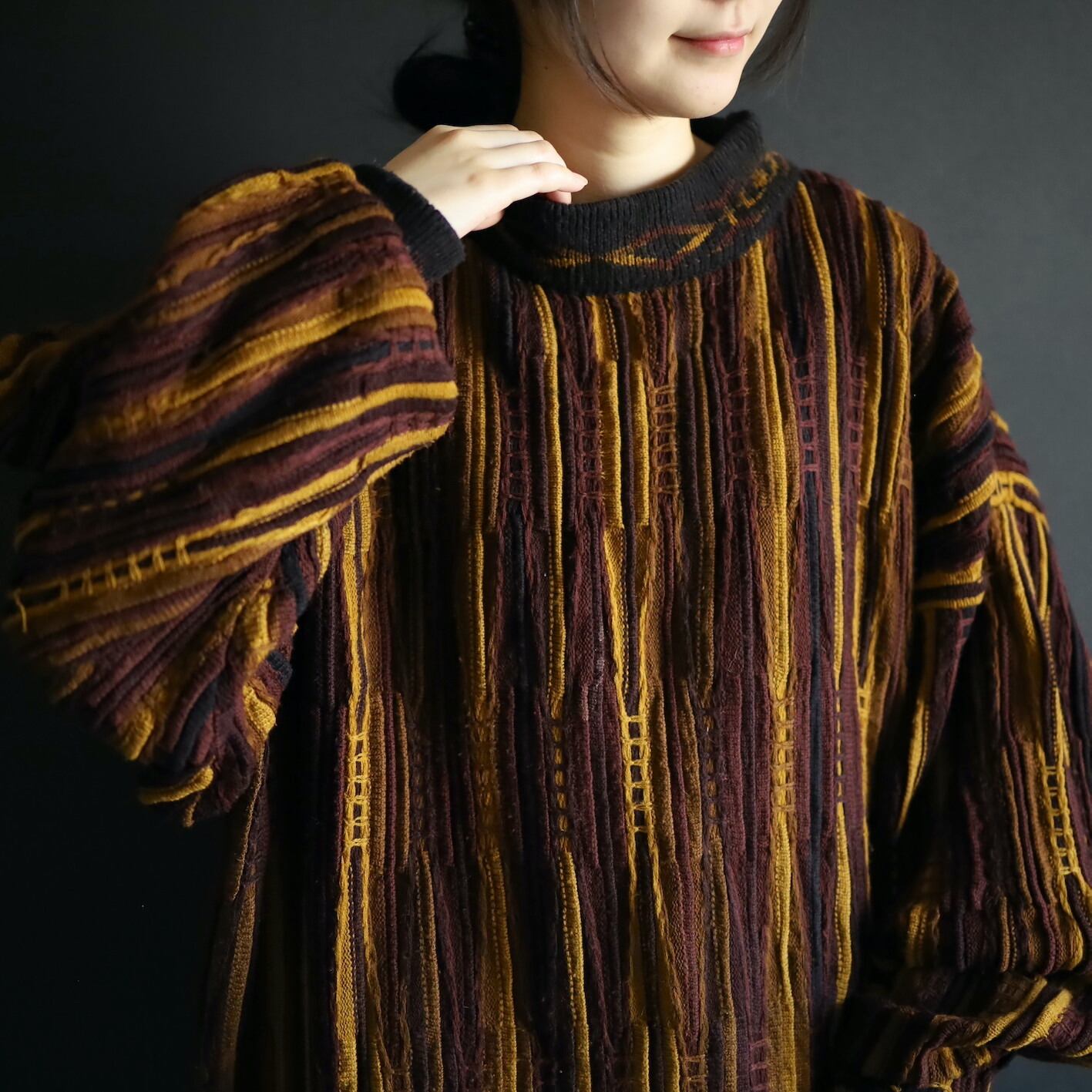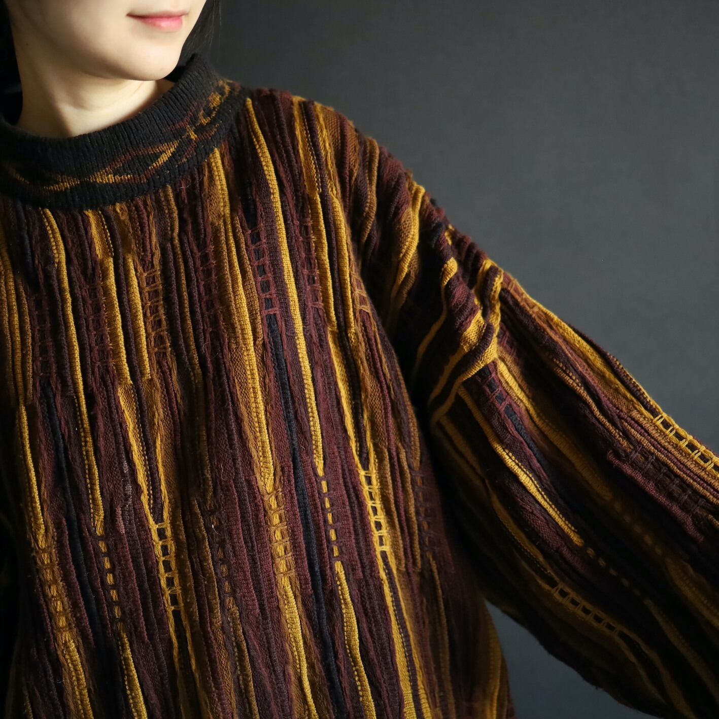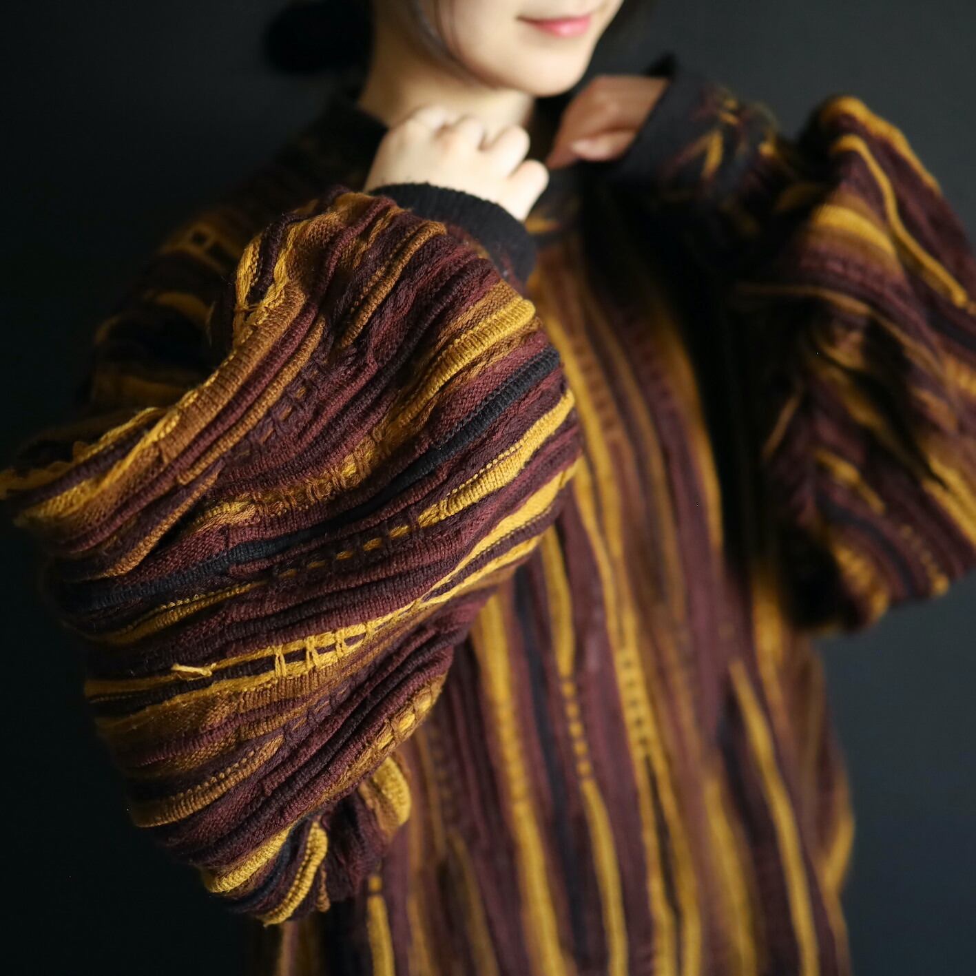 渋いカラーリングの大人っぽい3Dニットセーター.