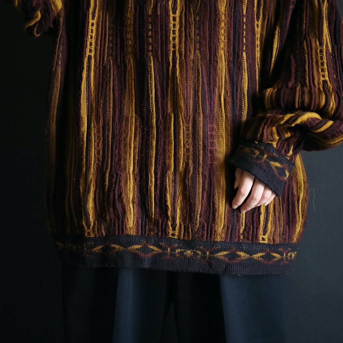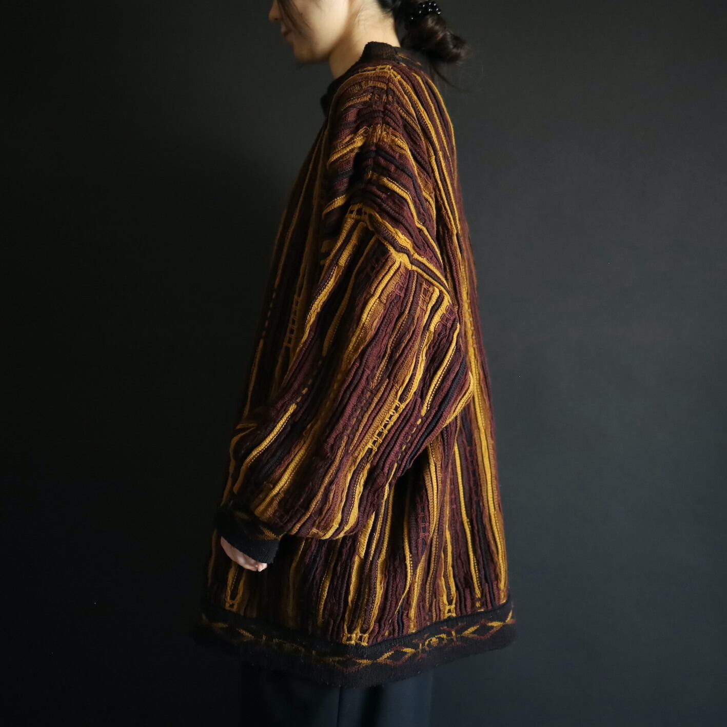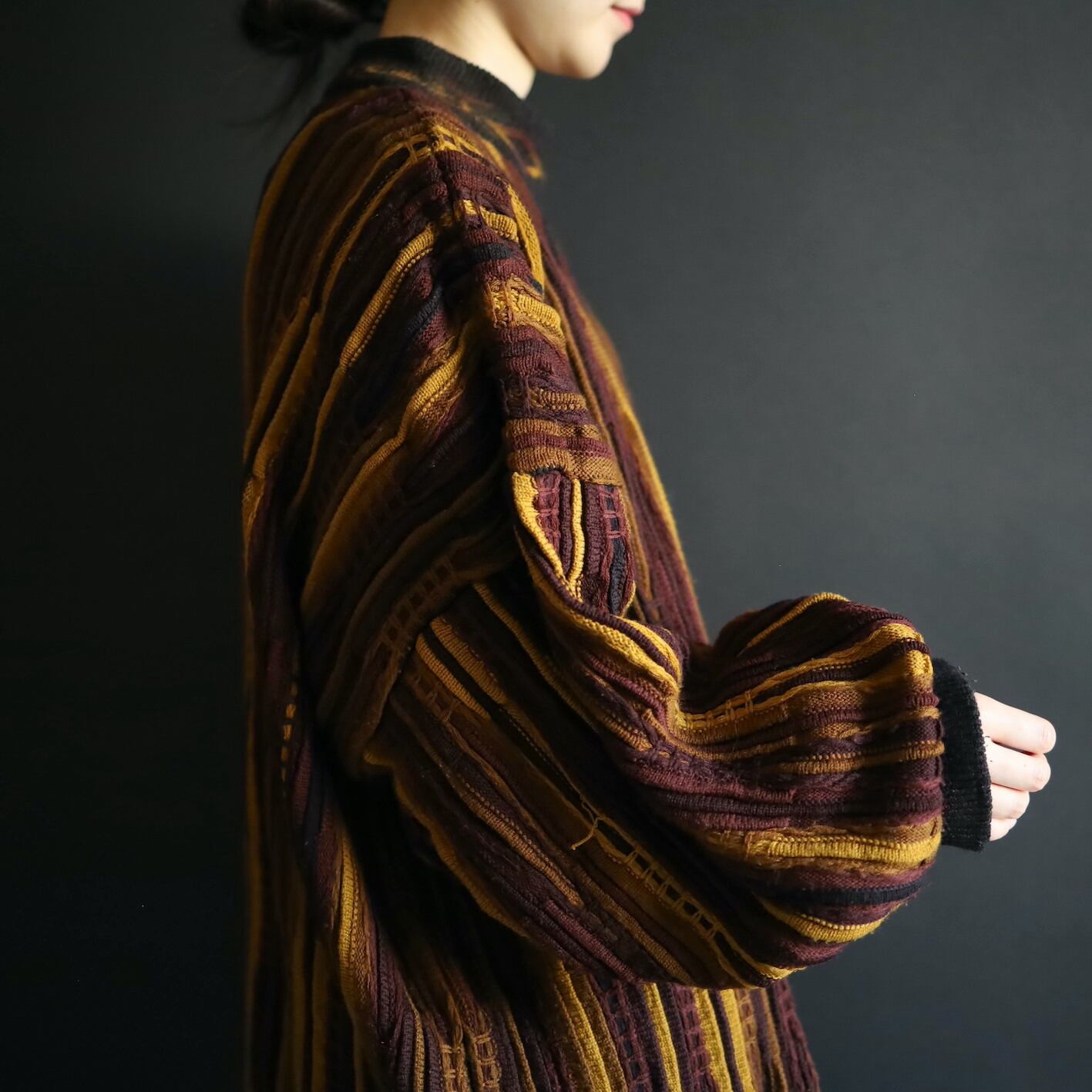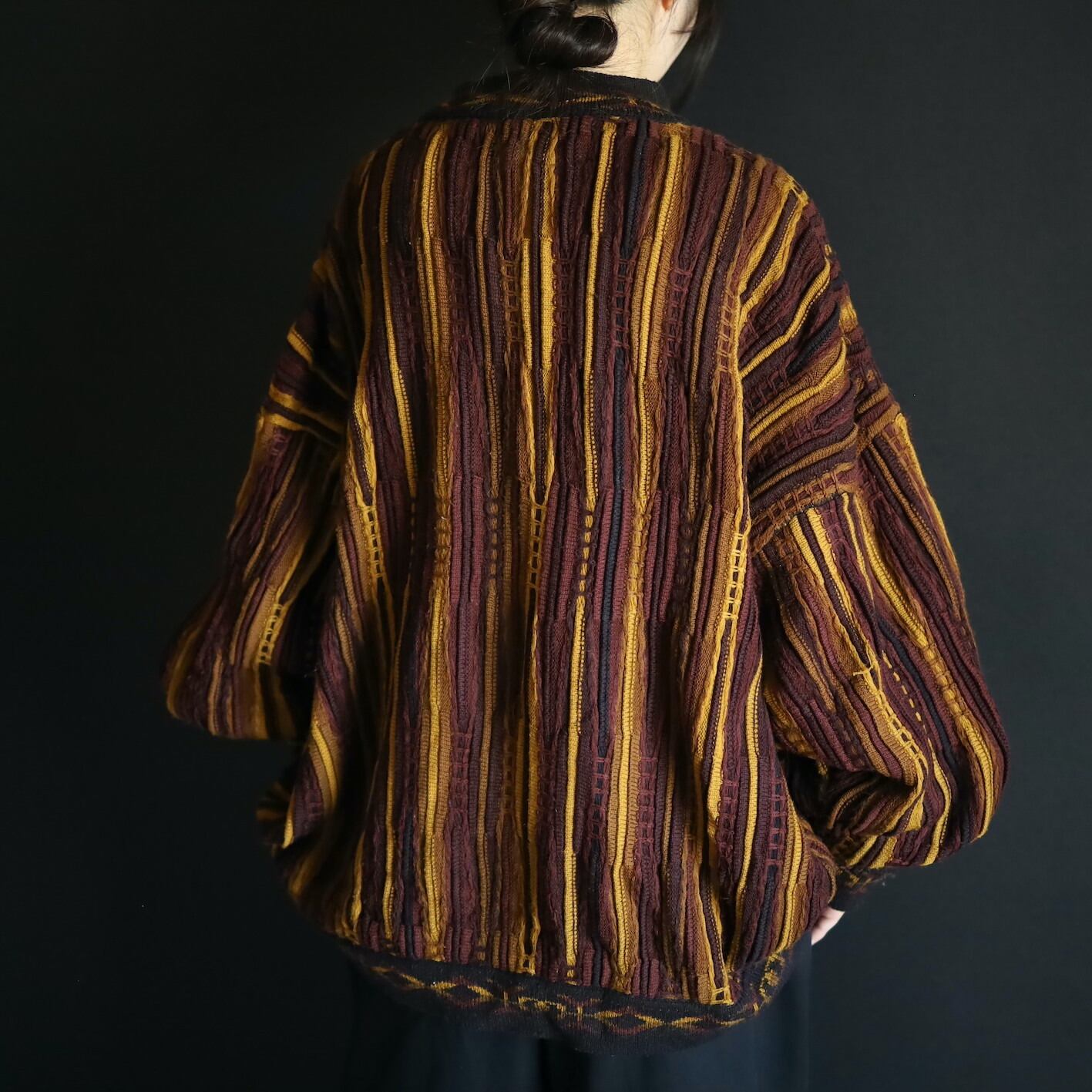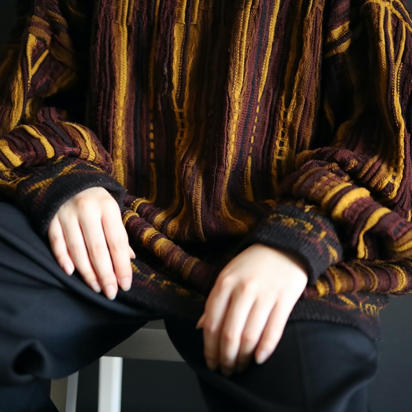渋いカラーリングの大人っぽい3Dニットセーター.