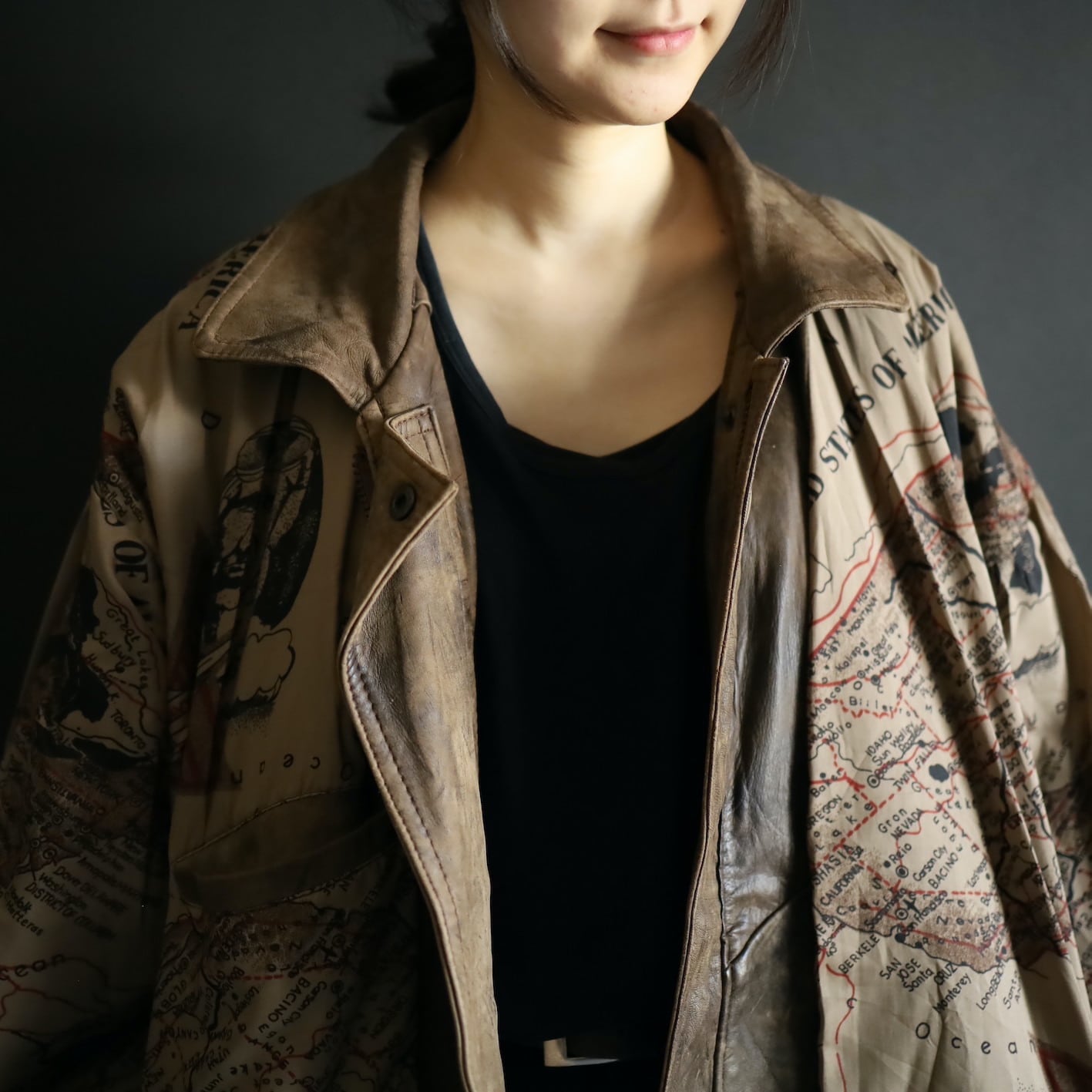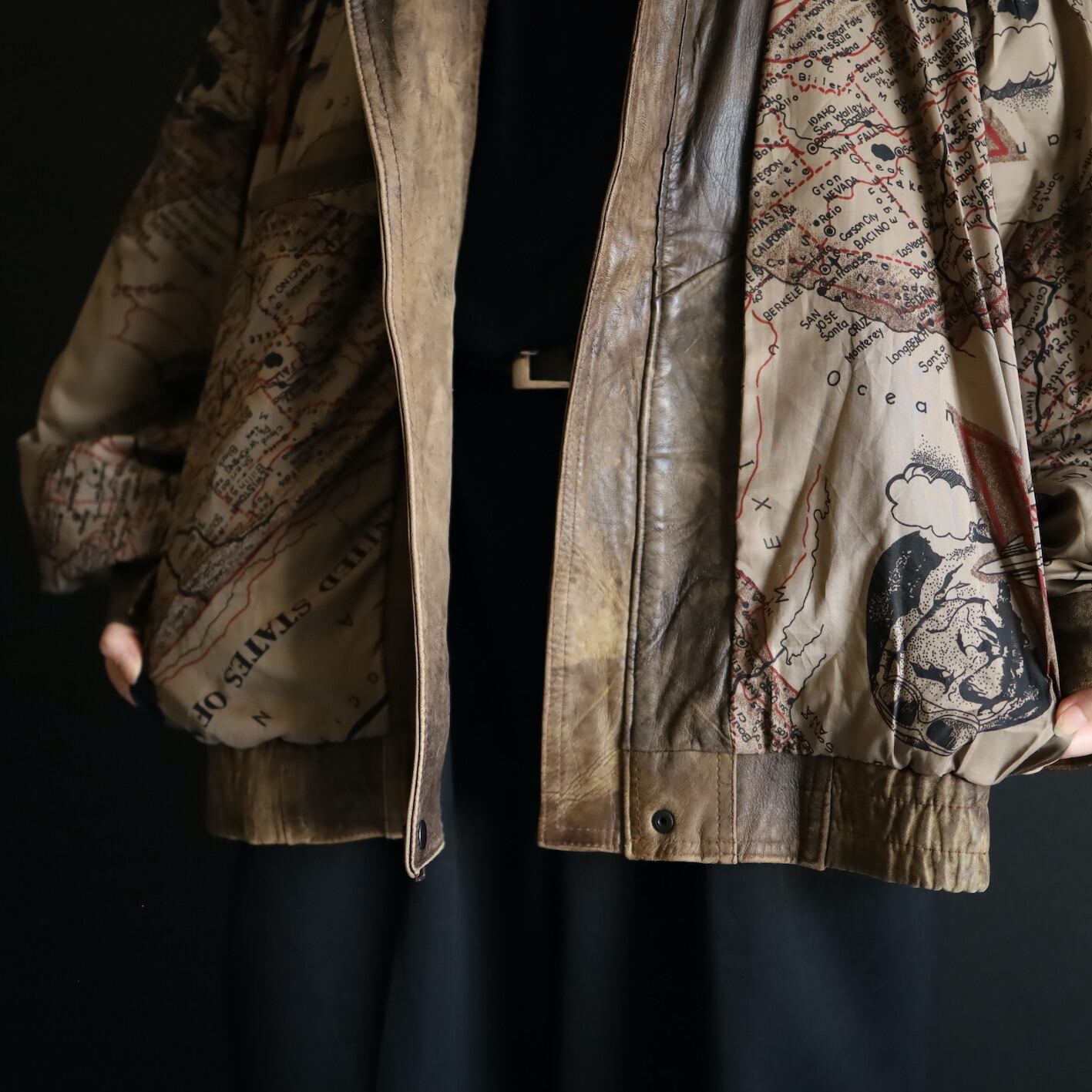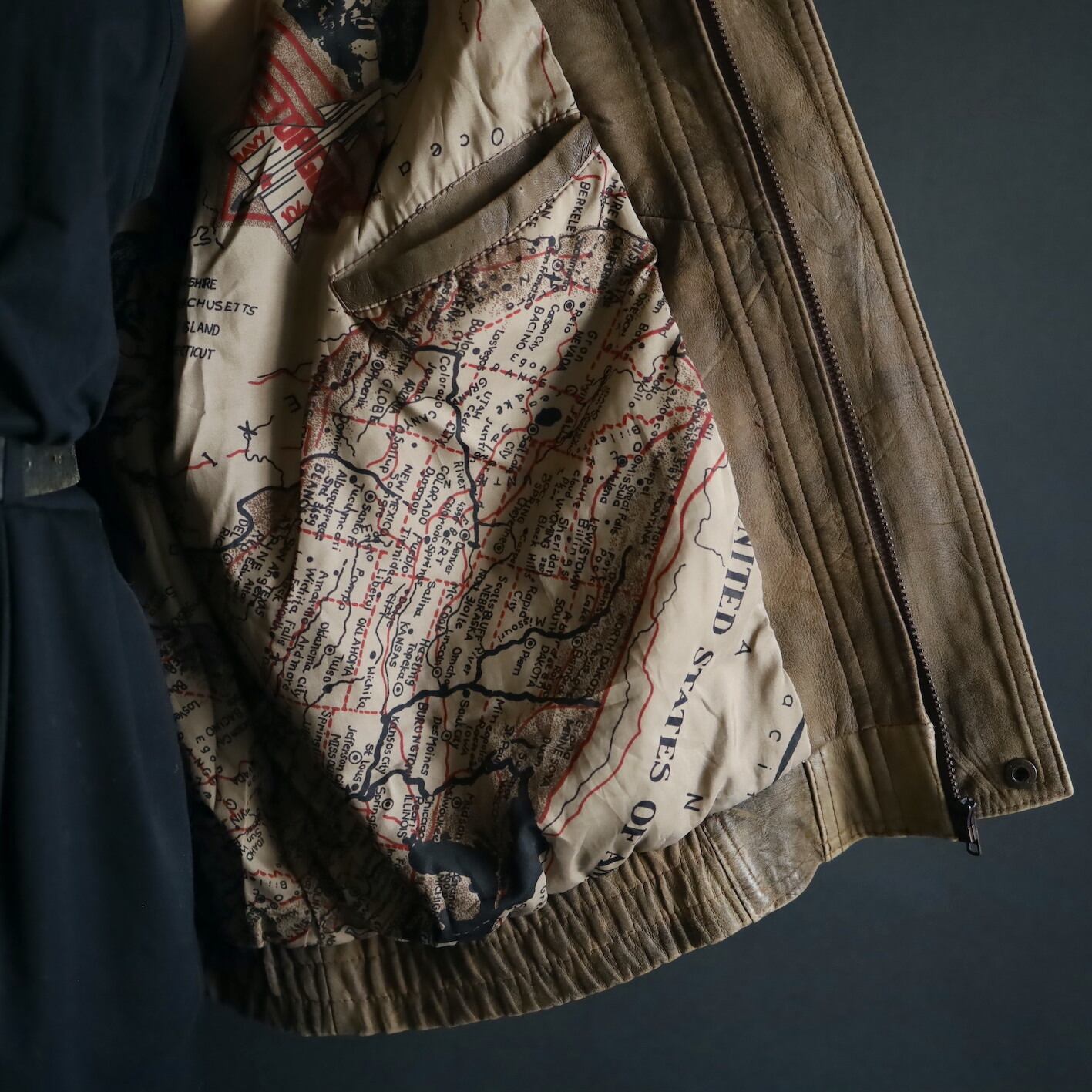 これだけでも充分なほどの一品なのですが,裏地がアメリカの地図柄という目に見えないこだわり.