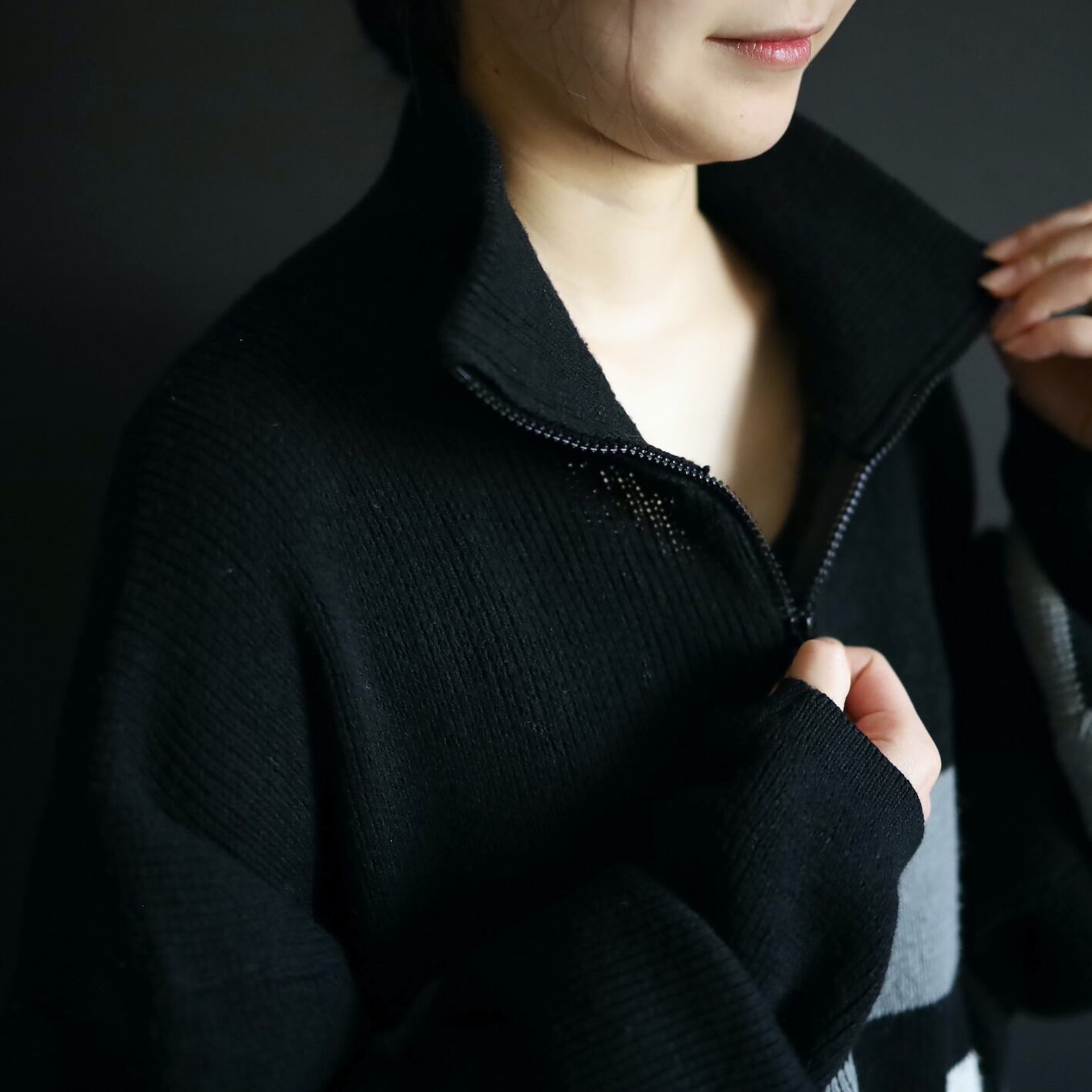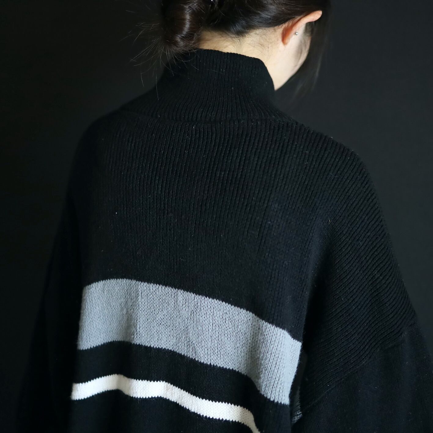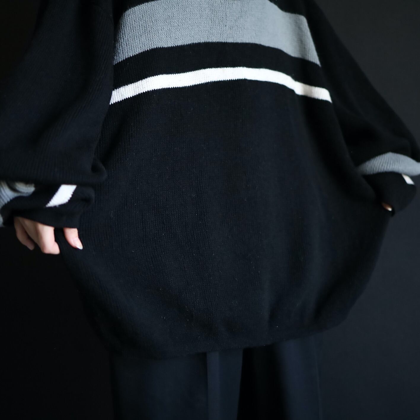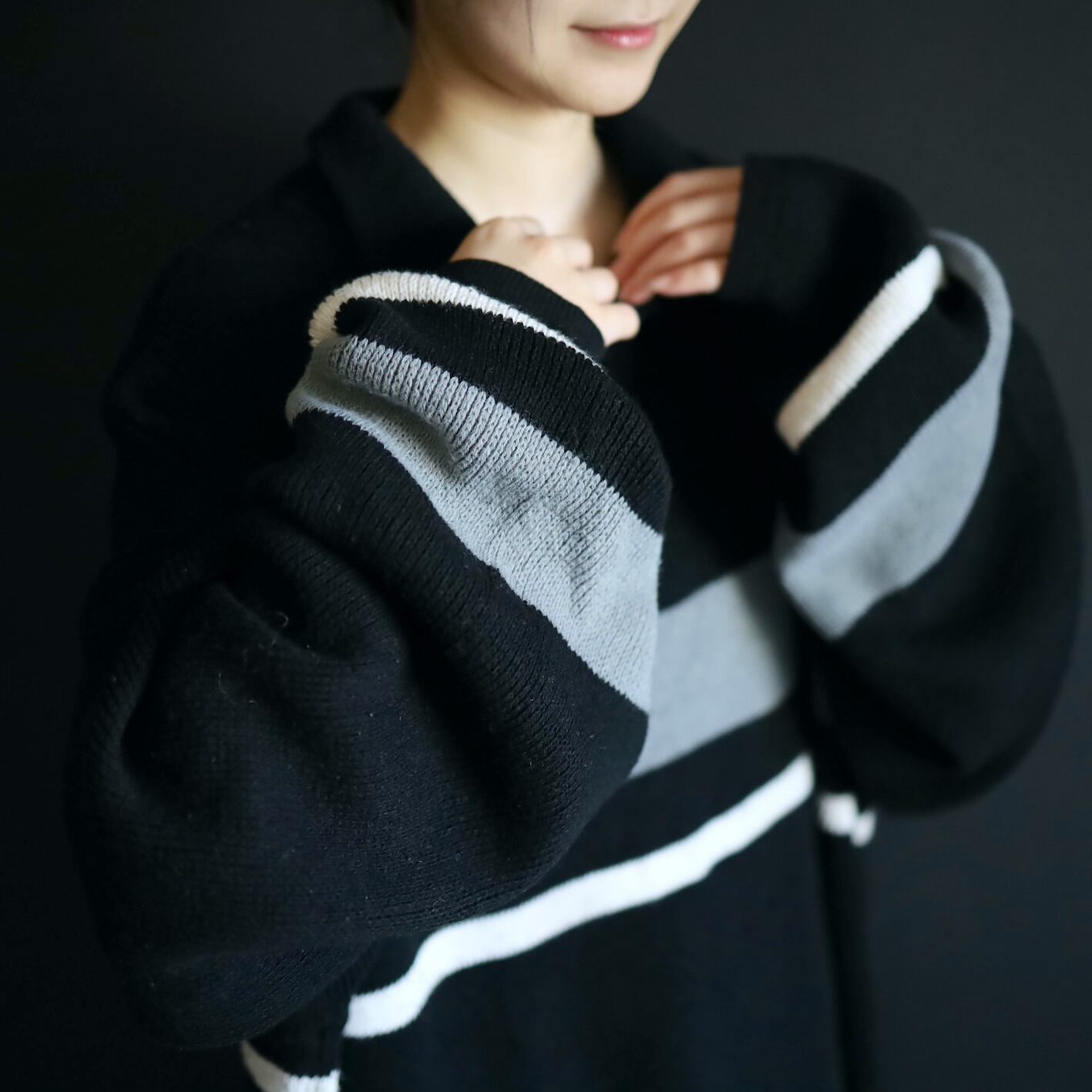 使い勝手抜群のブラックベースに,袖と身頃がホワイト,グレーのワンポイントボーダー.