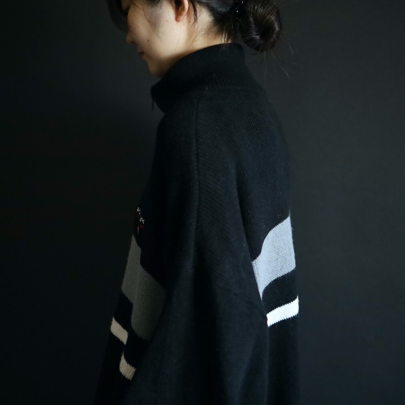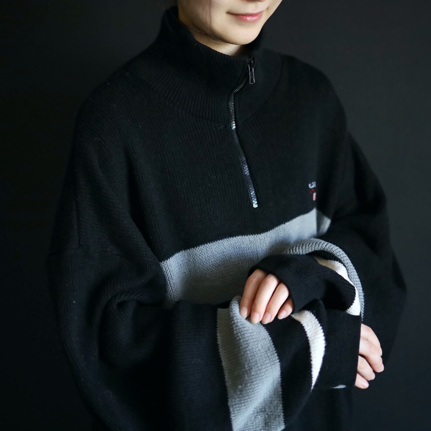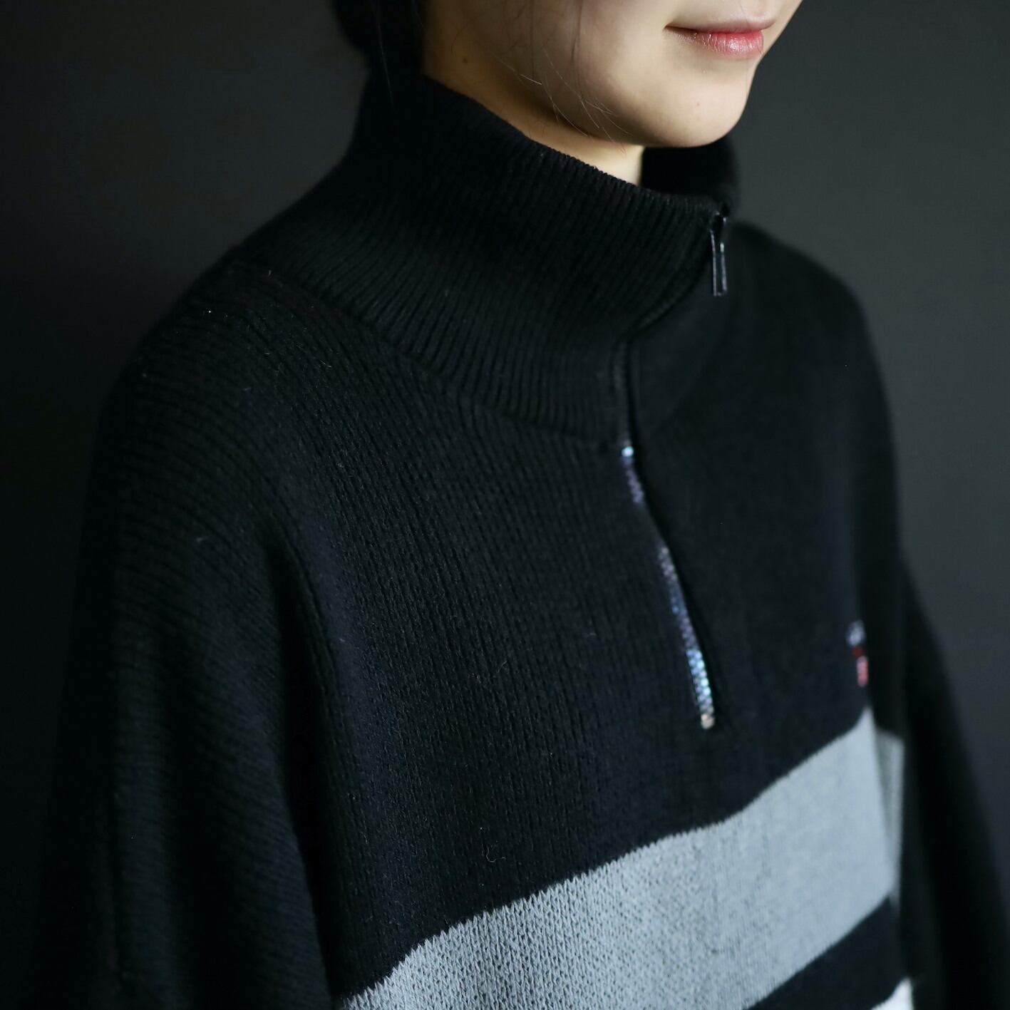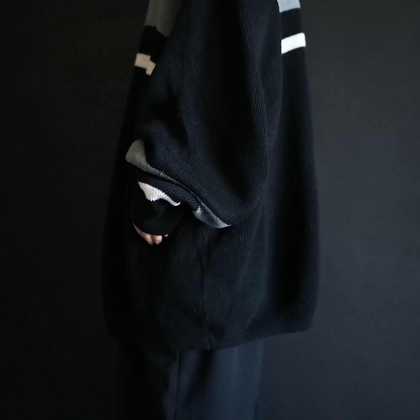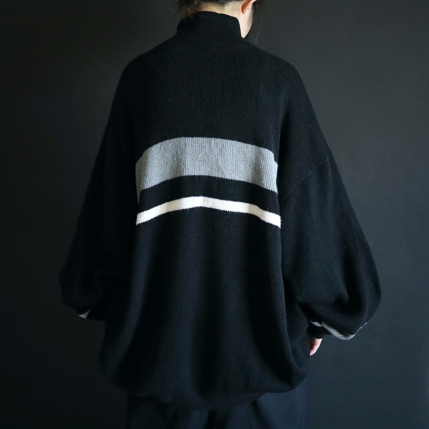 使い勝手抜群のブラックベースに,袖と身頃がホワイト,グレーのワンポイントボーダー.