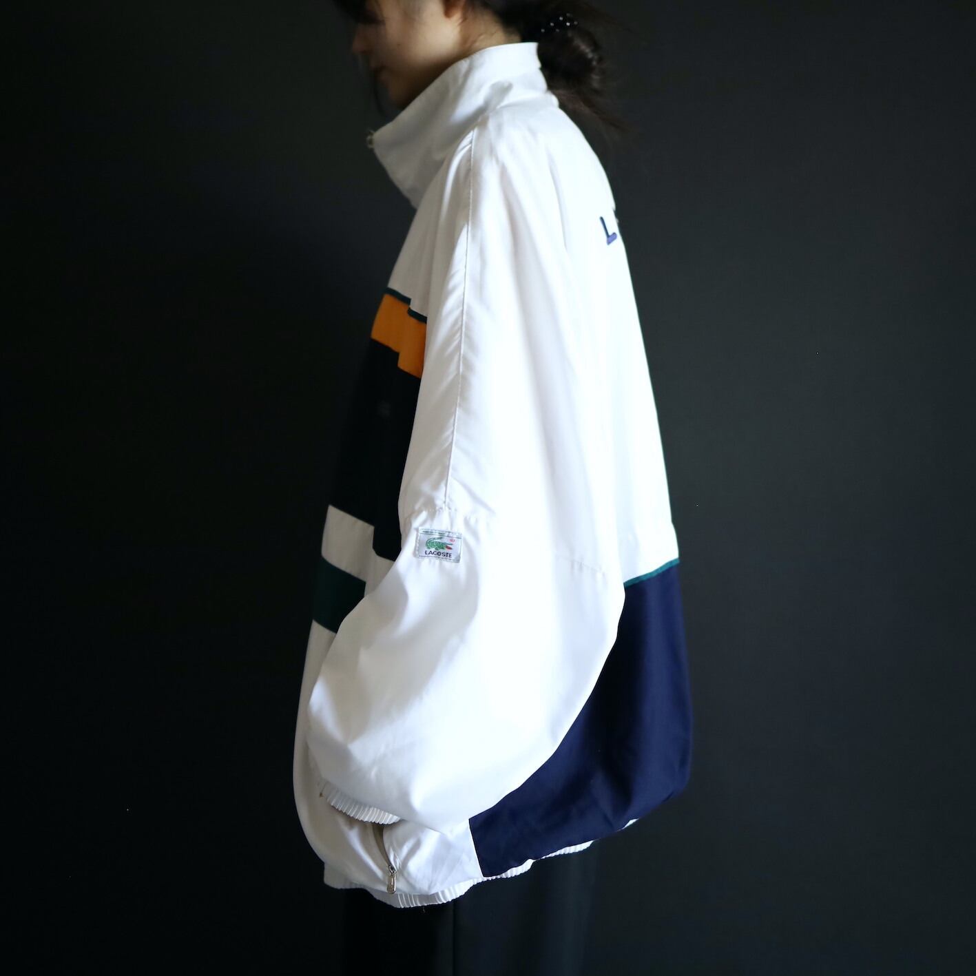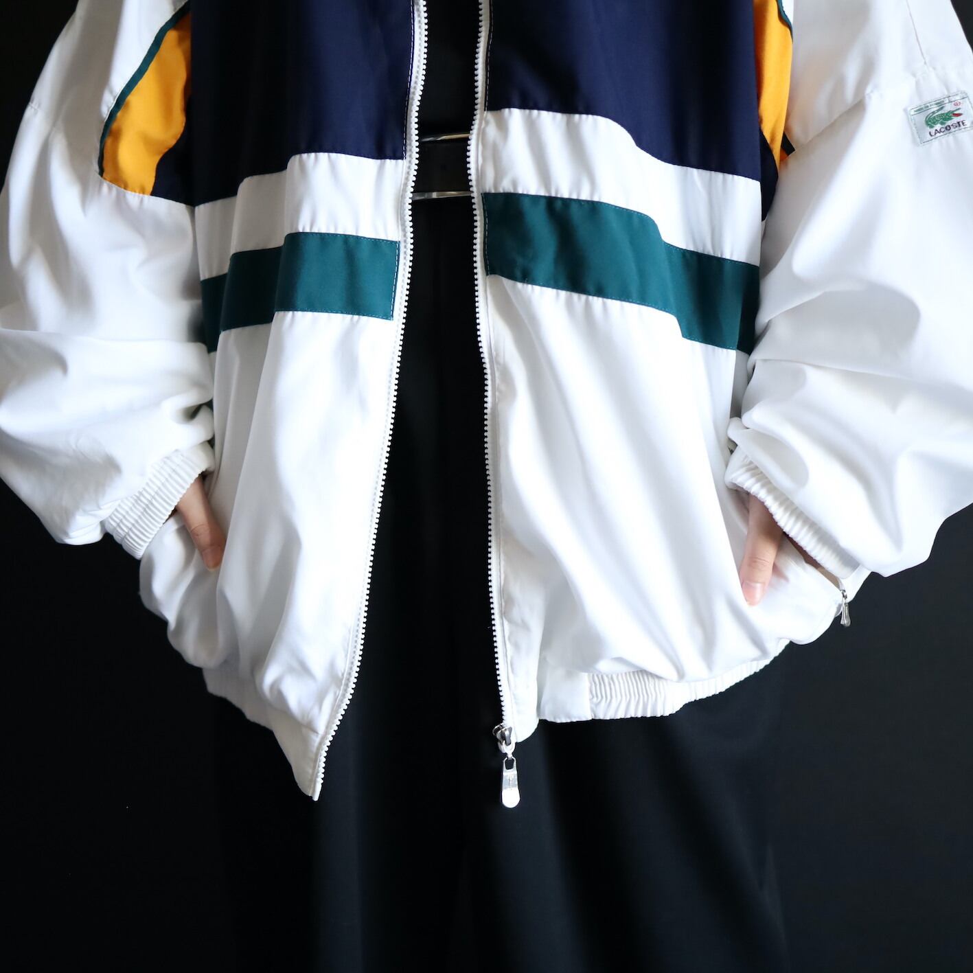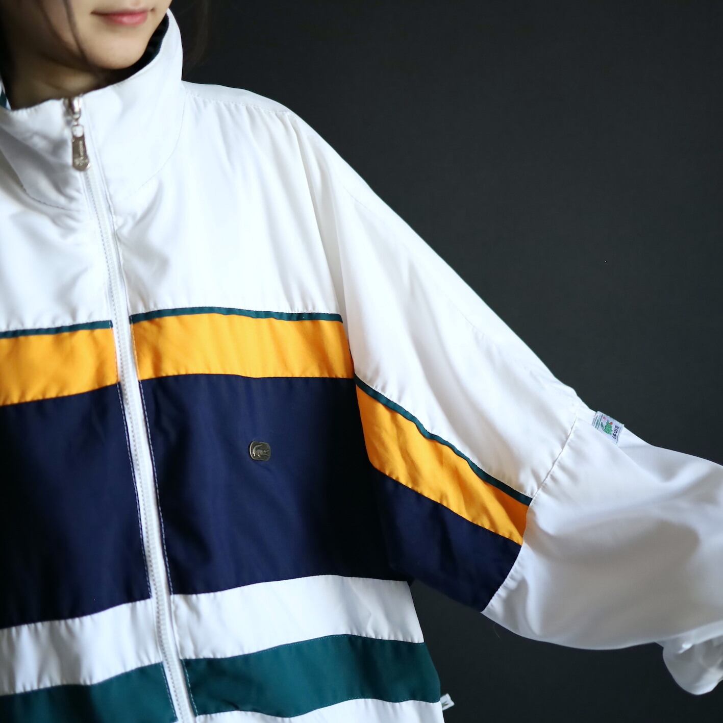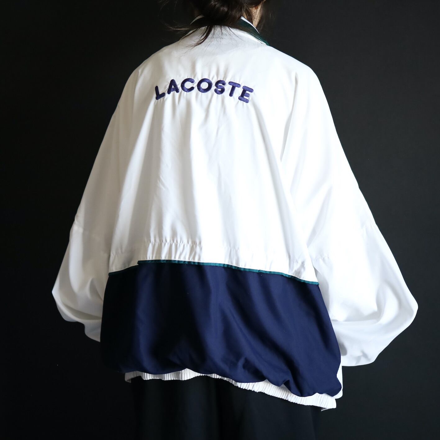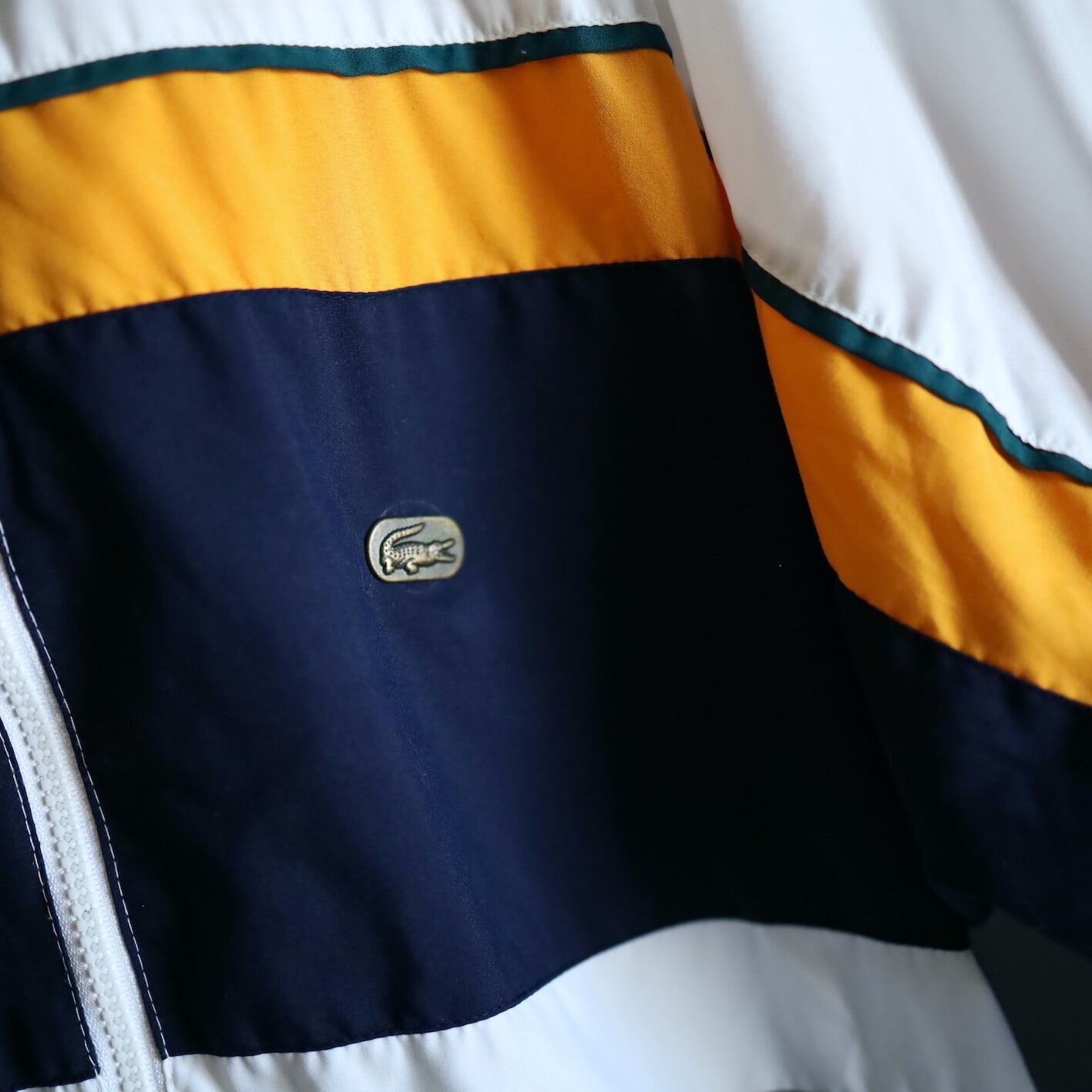 また胸元にはお馴染みのワニのエンブレム,左袖にワニのロゴタグでブランド感もしっかり主張.