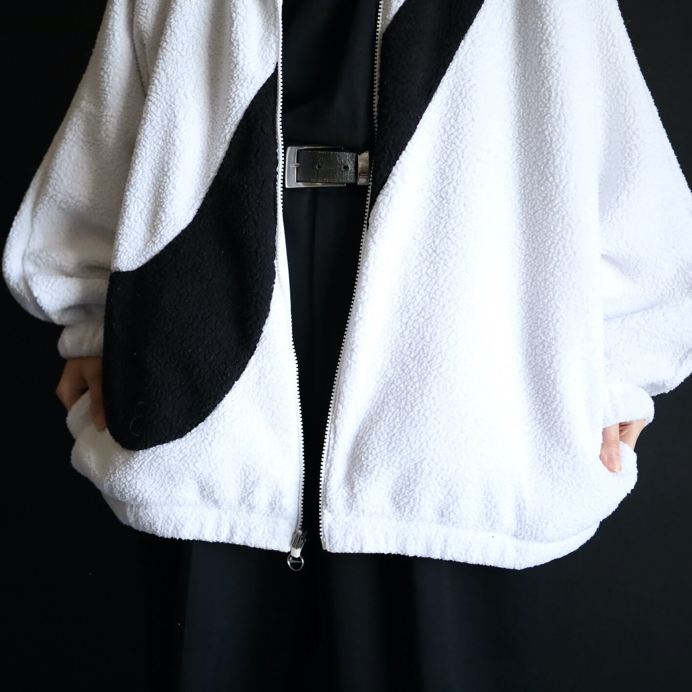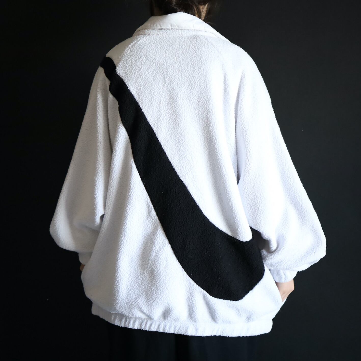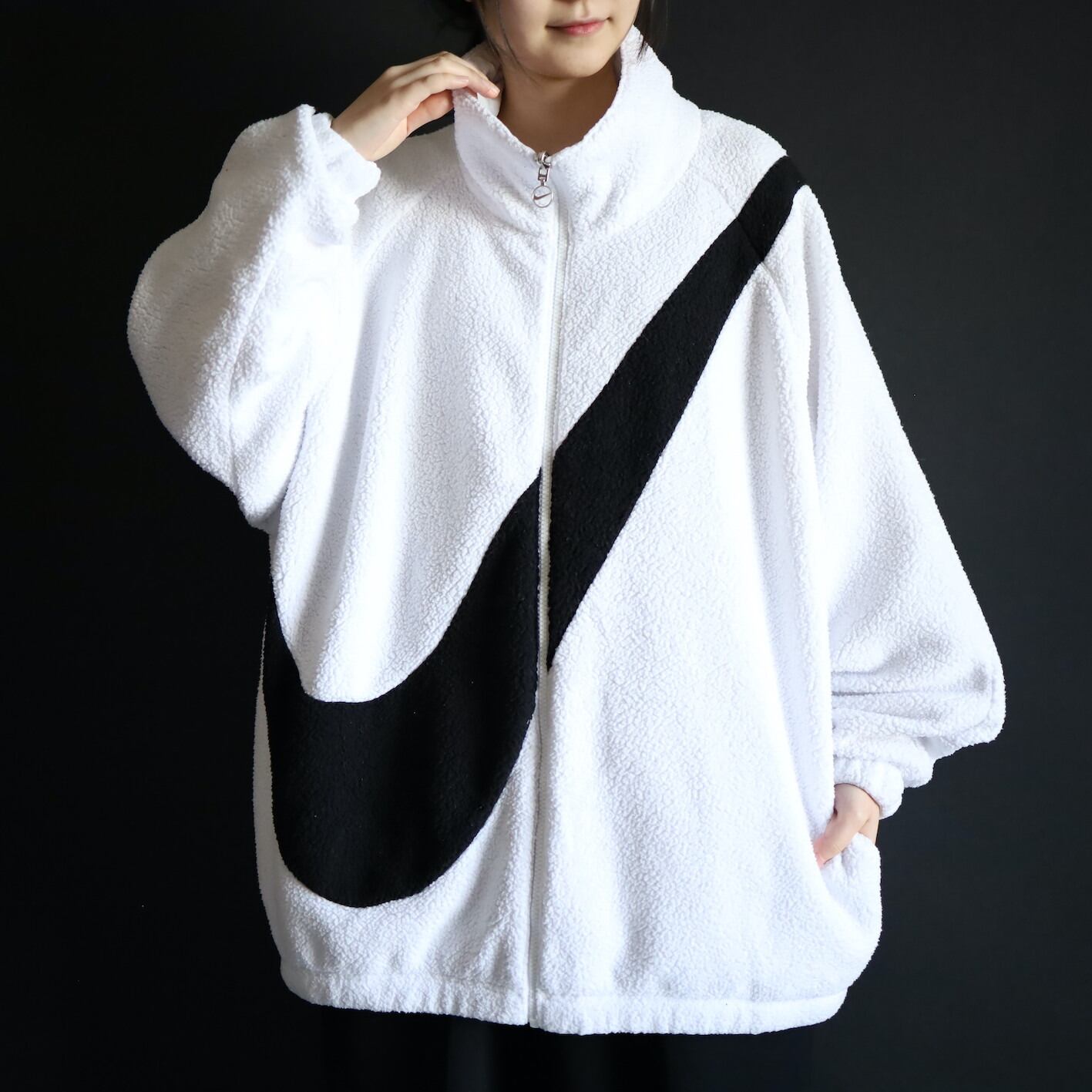 表:ホワイトカラーのボアフリースボディに,前後両面ブラックのビッグスウッシュロゴ切替.