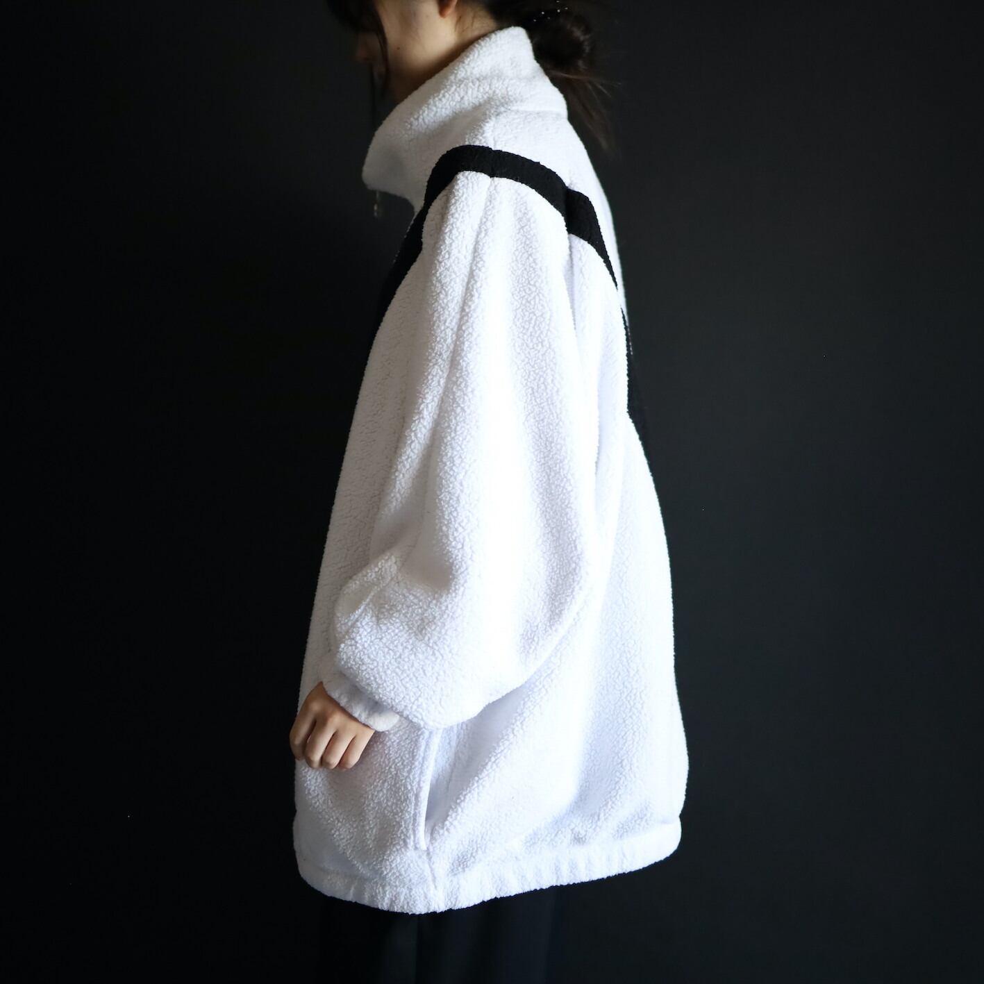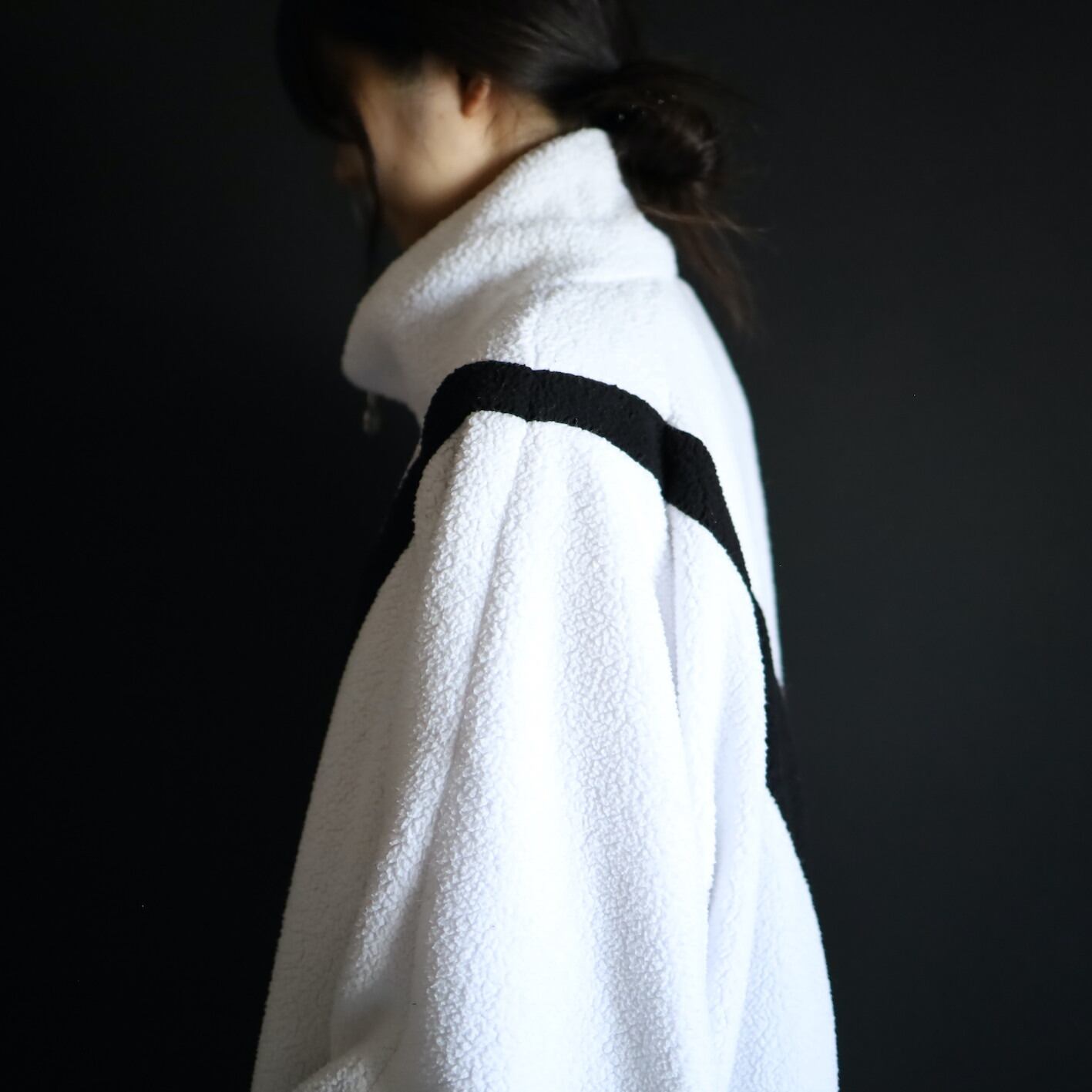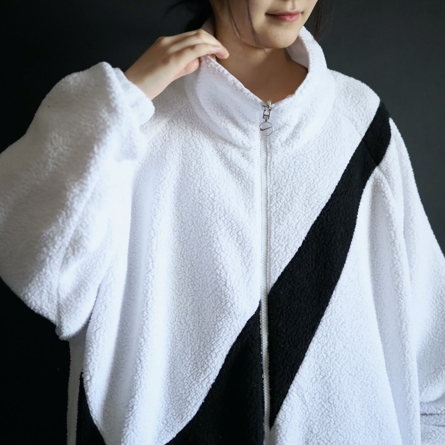 表:ホワイトカラーのボアフリースボディに,前後両面ブラックのビッグスウッシュロゴ切替.