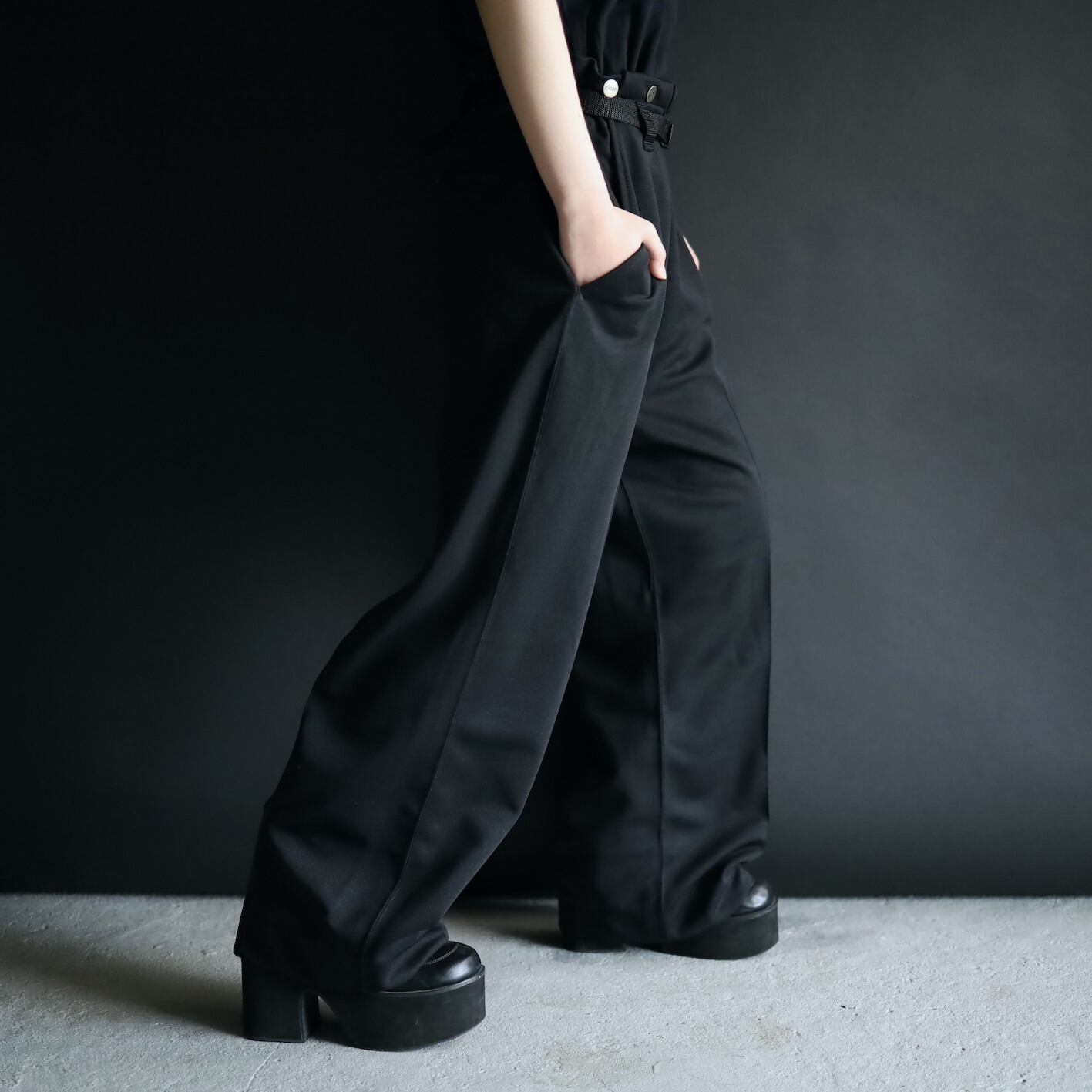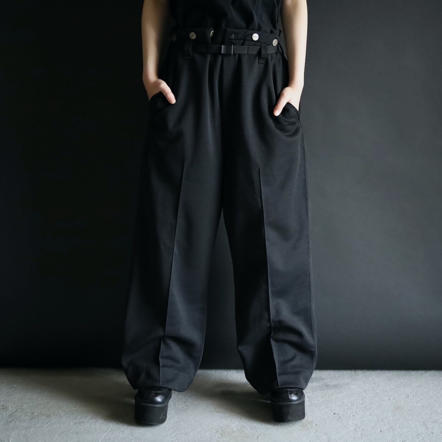 ワイドシルエットのトラウザーパンツ.