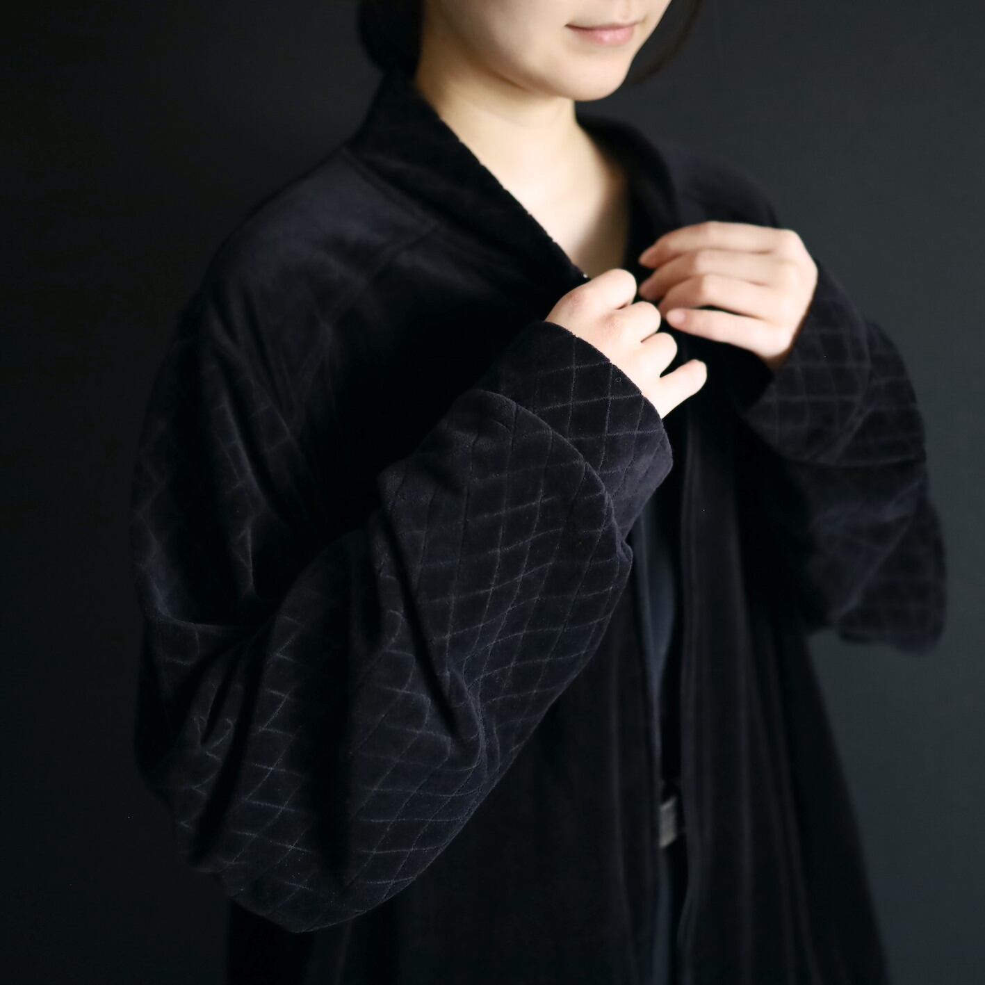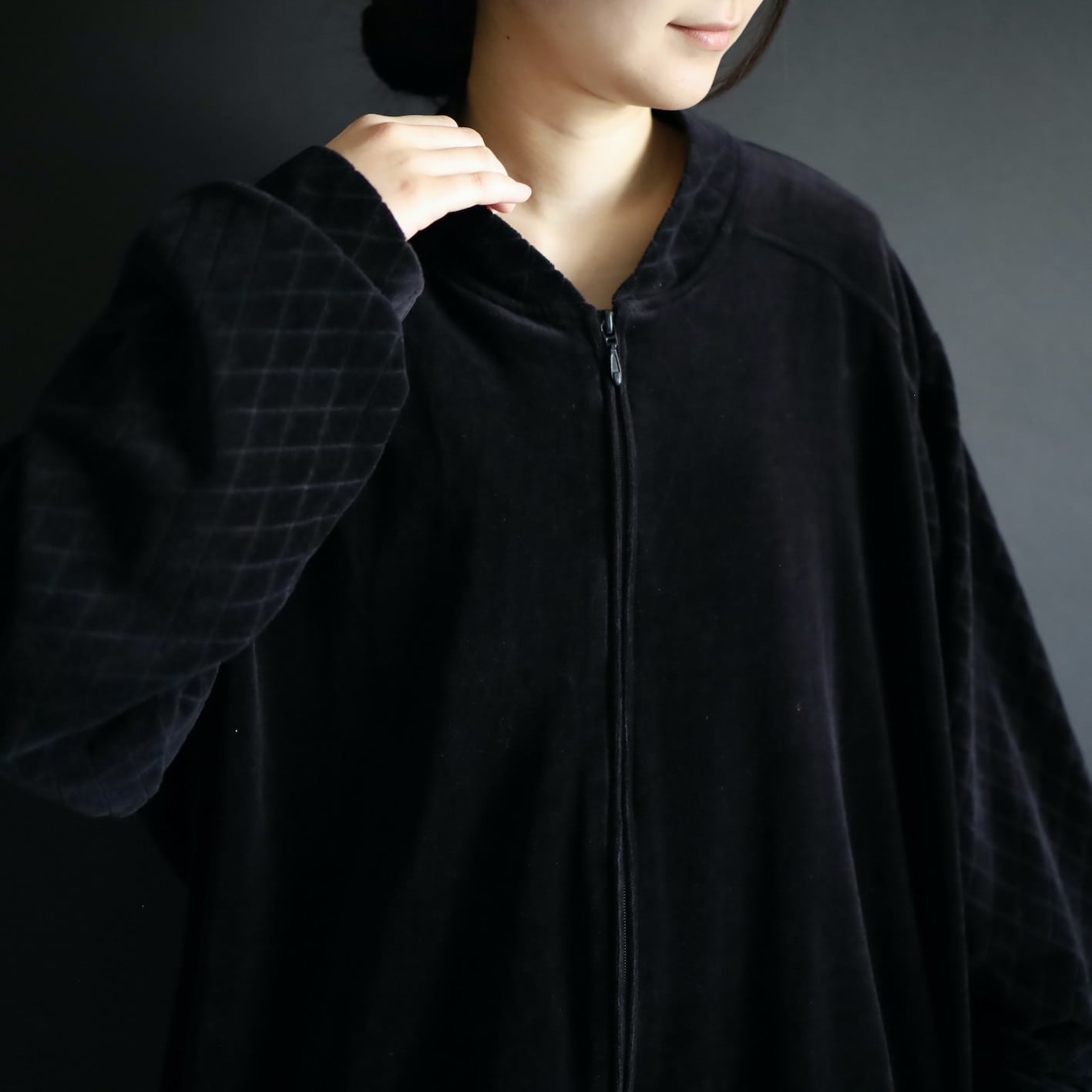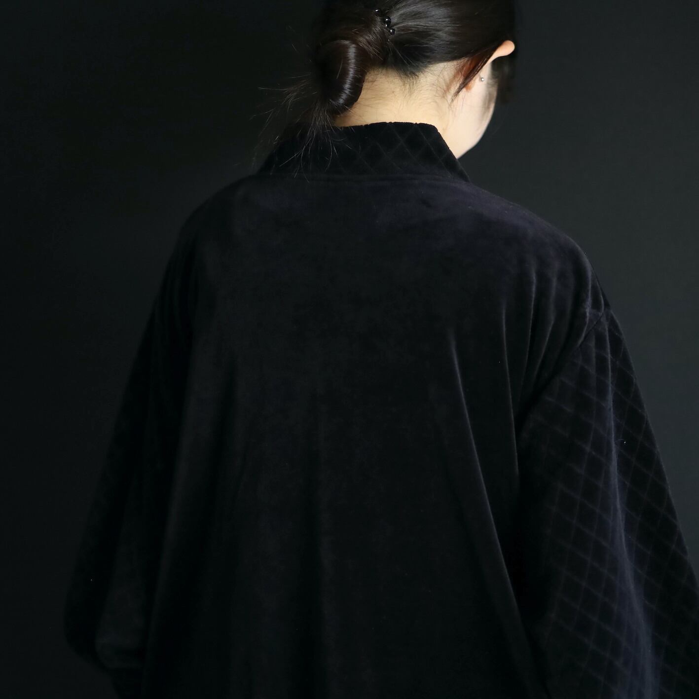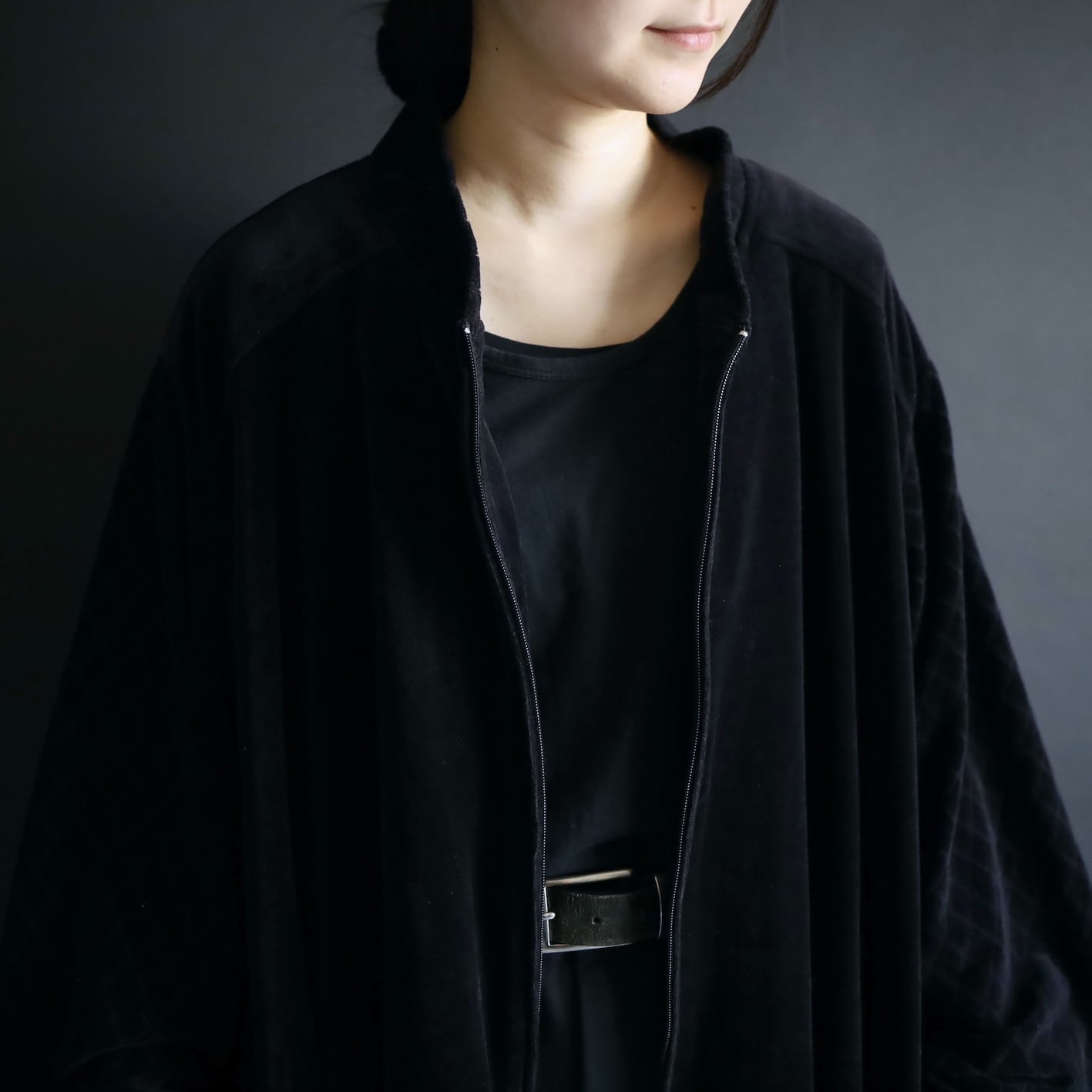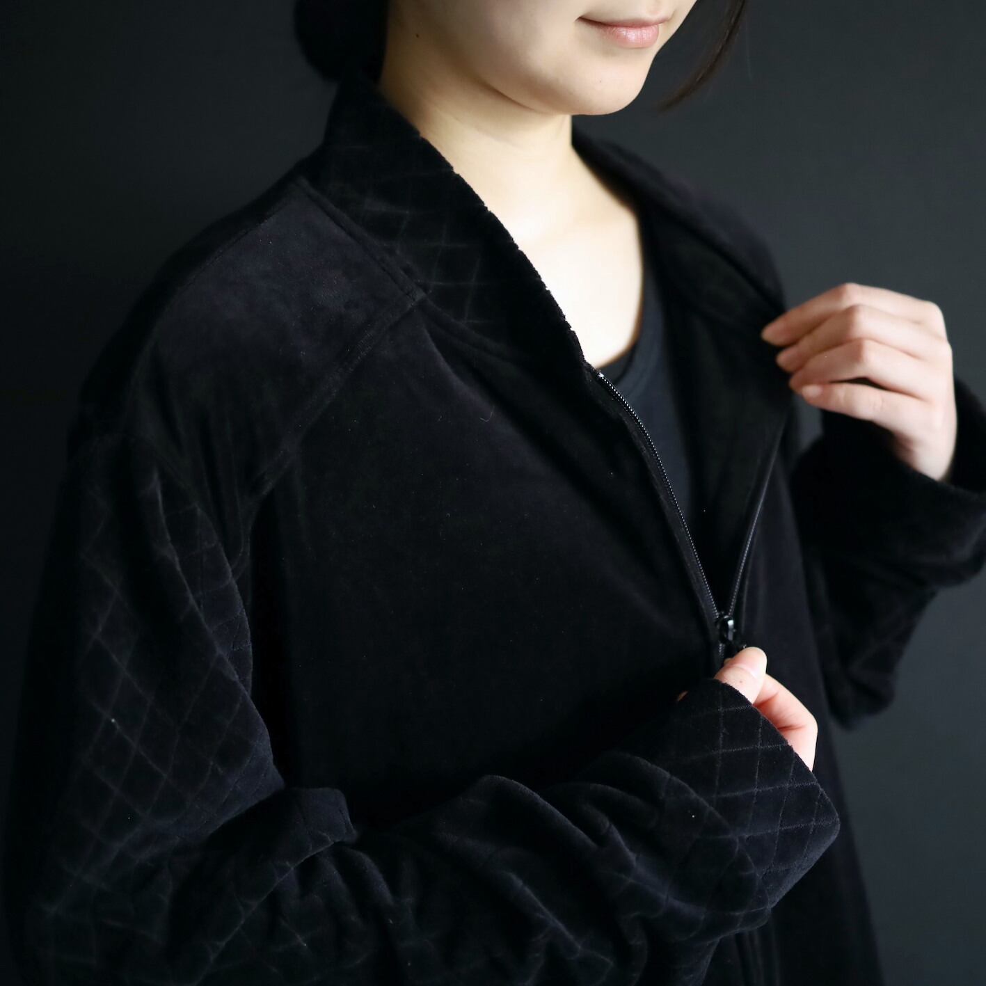 ベロアのカラー系は,その独特の光沢感もあるためか,コーデに落とし込むにも一癖ありますが,ブラックカラーならその心配もなし.