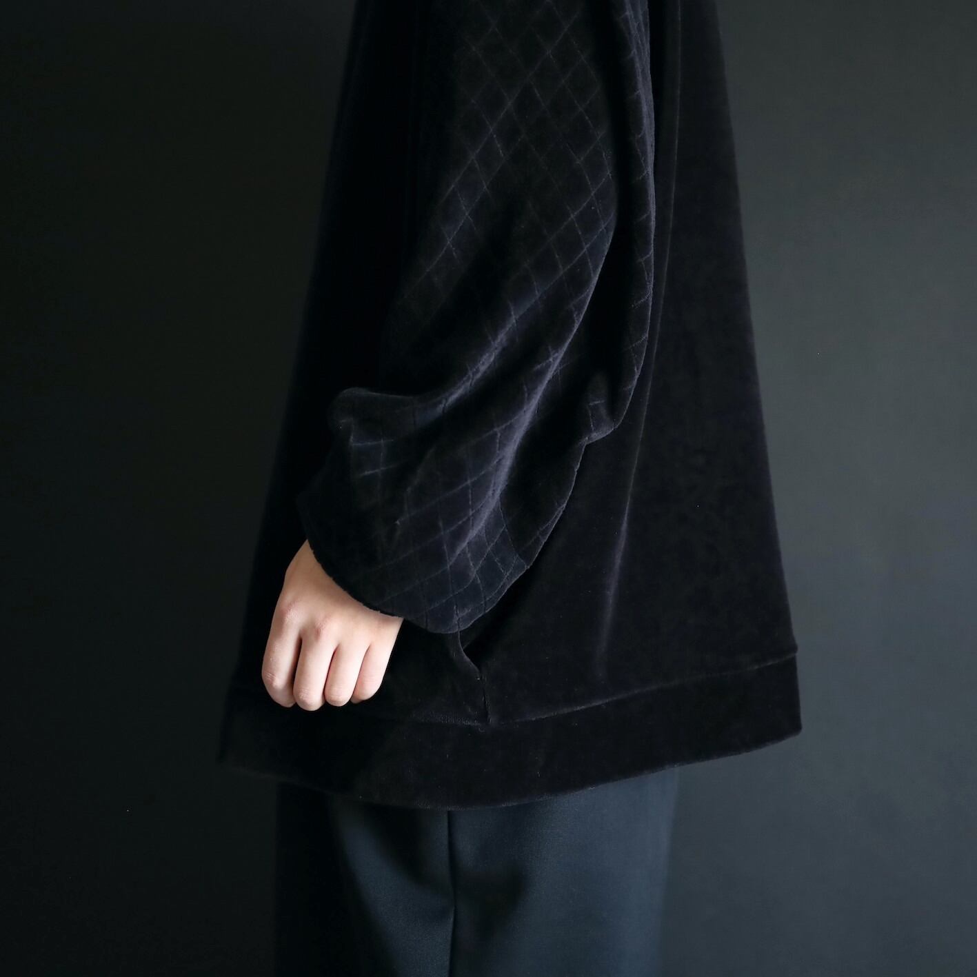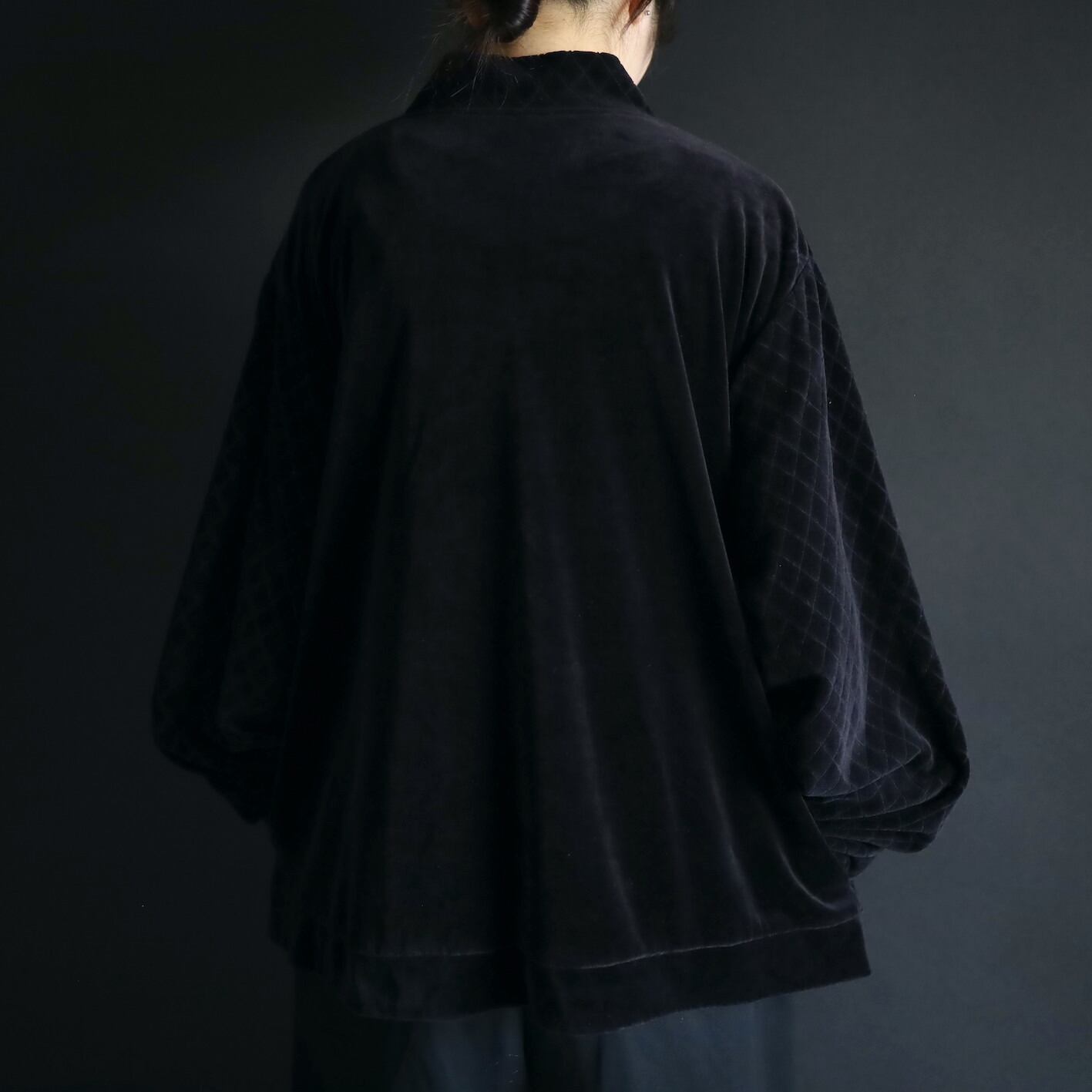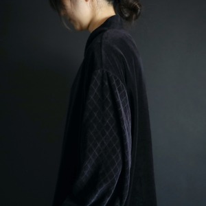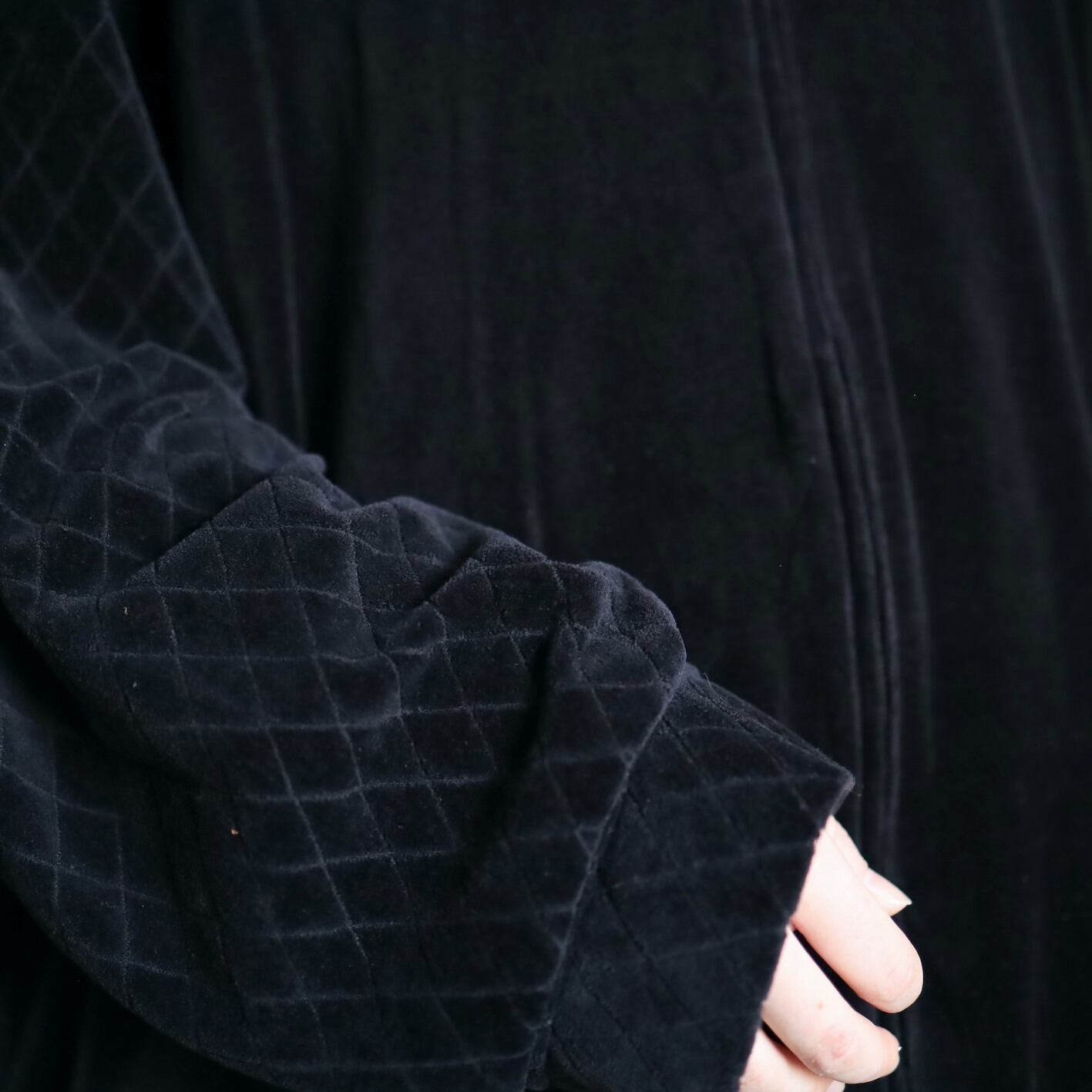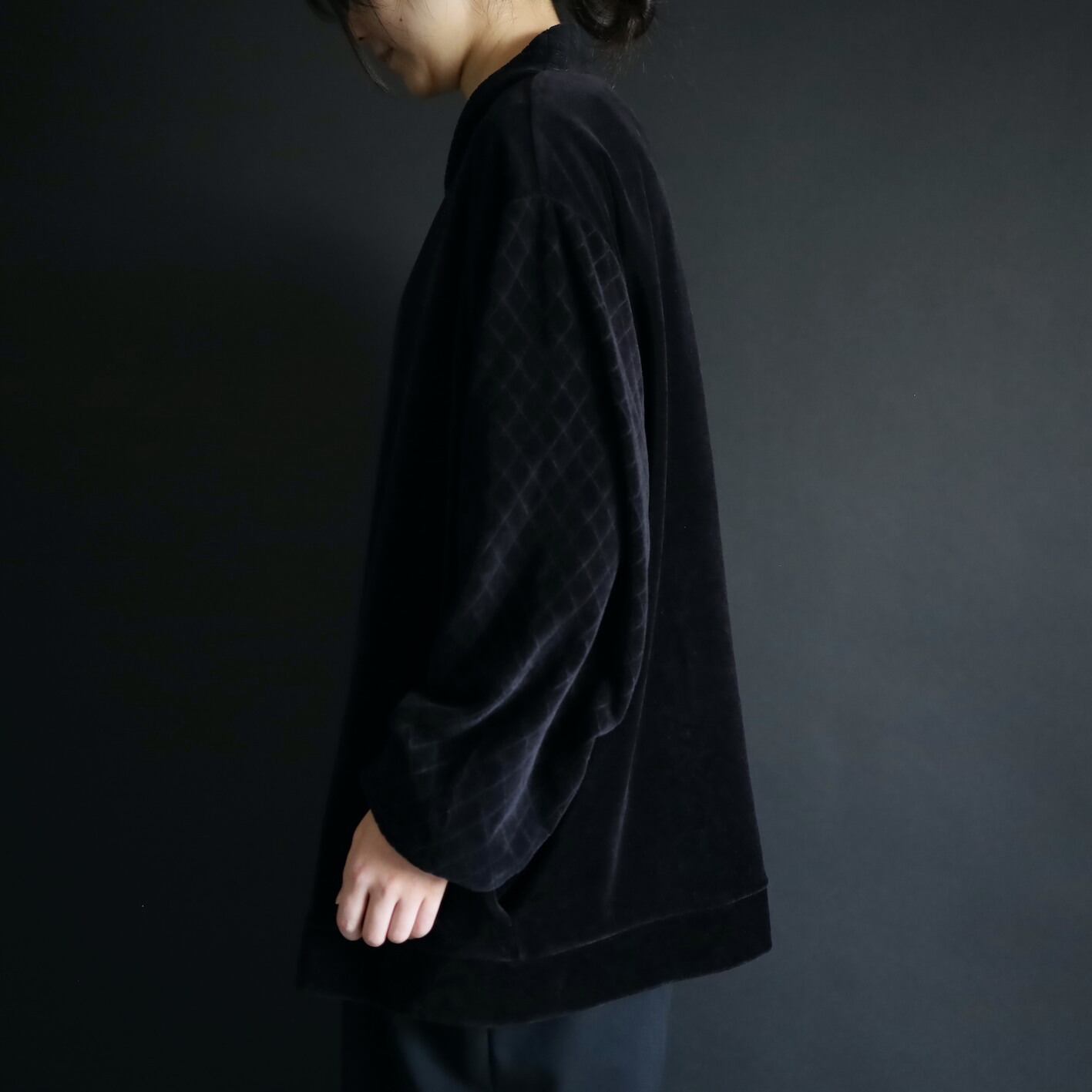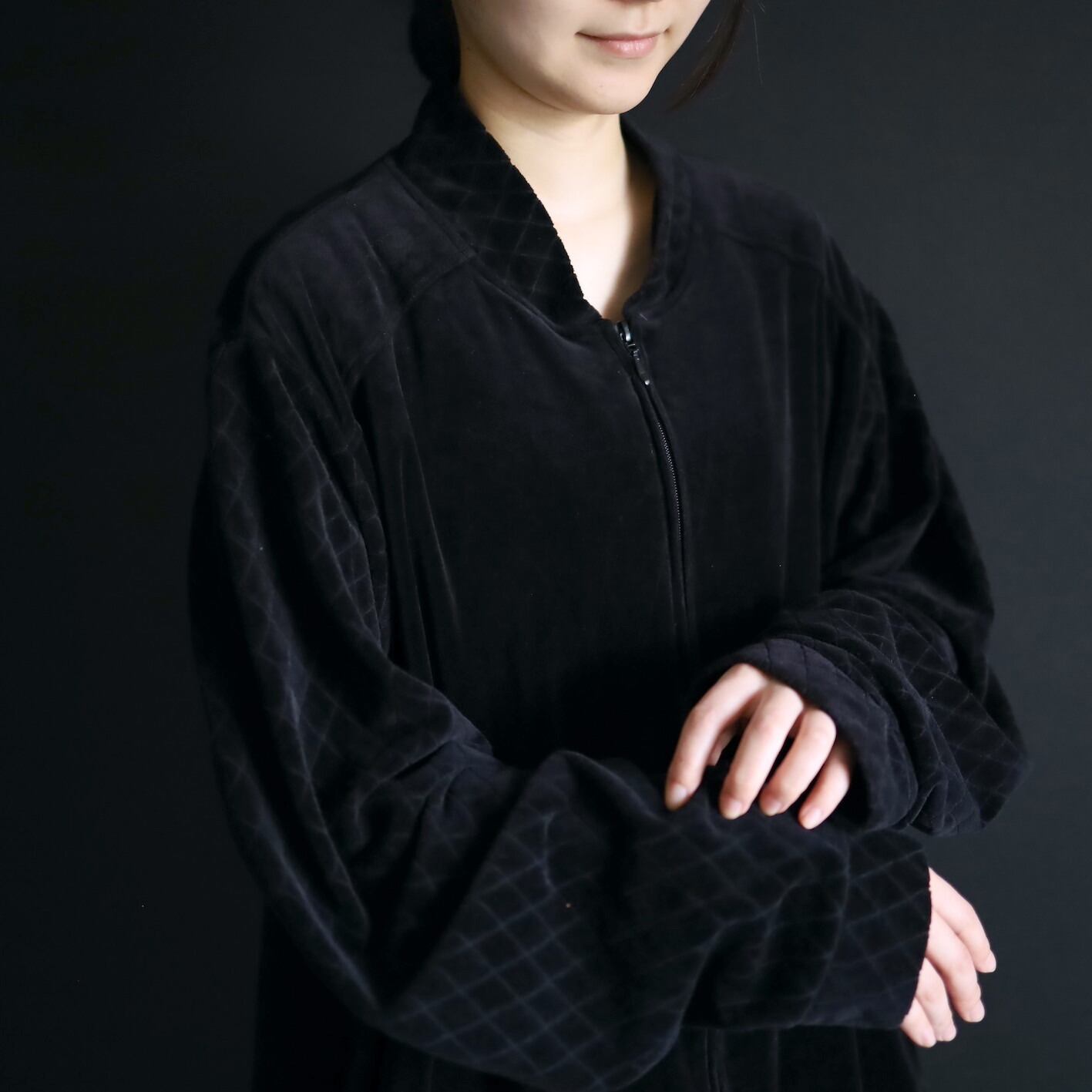 ベロアのカラー系は,その独特の光沢感もあるためか,コーデに落とし込むにも一癖ありますが,ブラックカラーならその心配もなし.