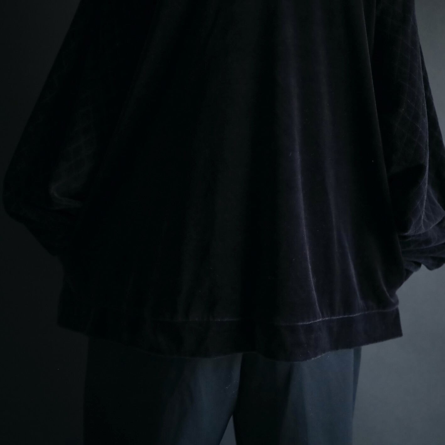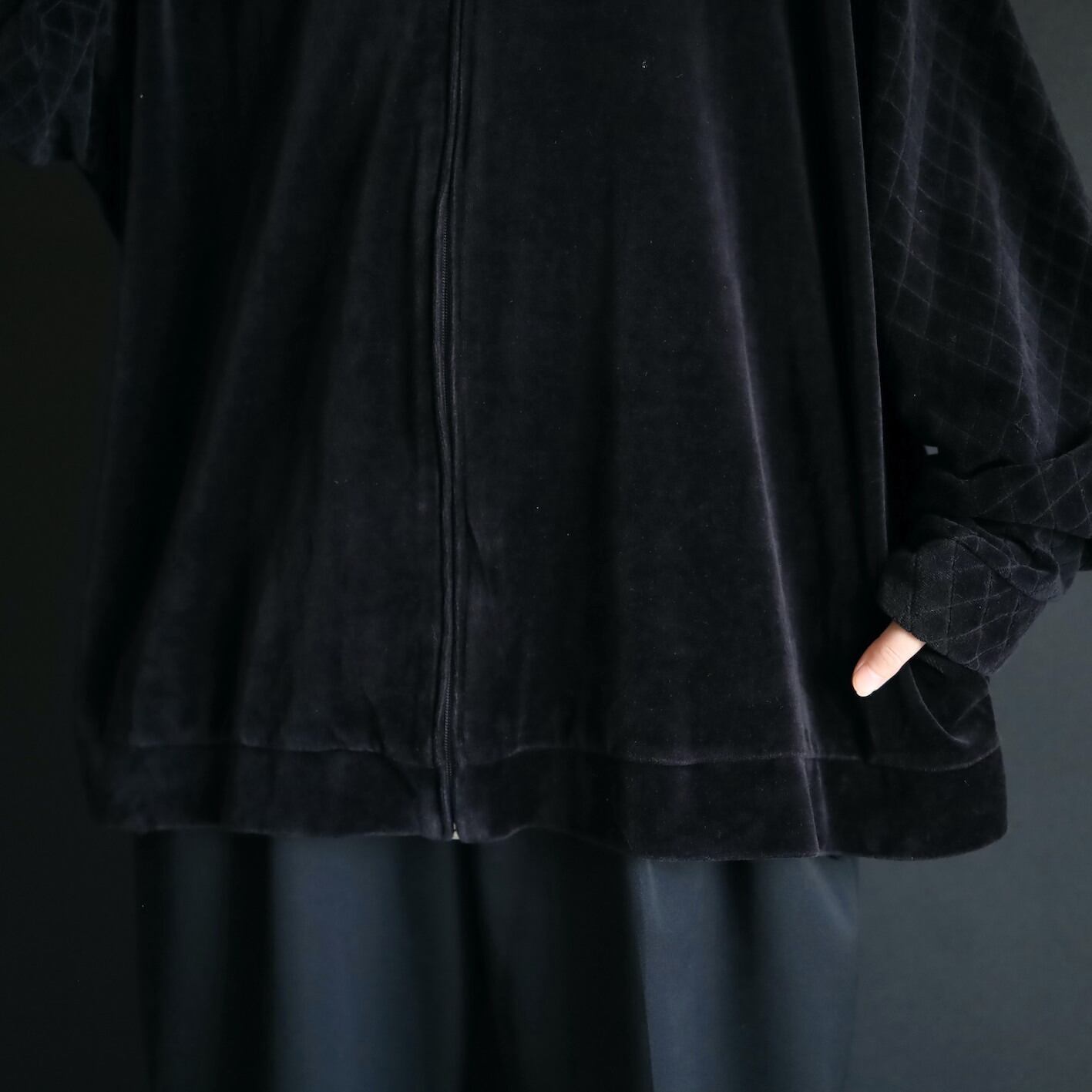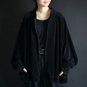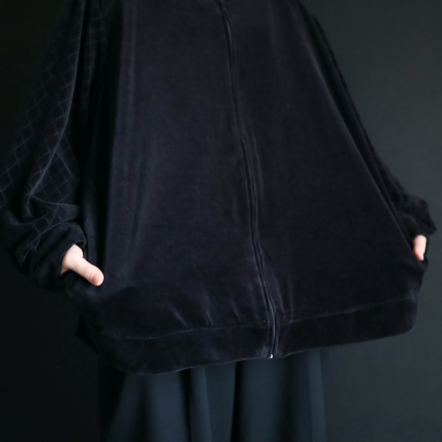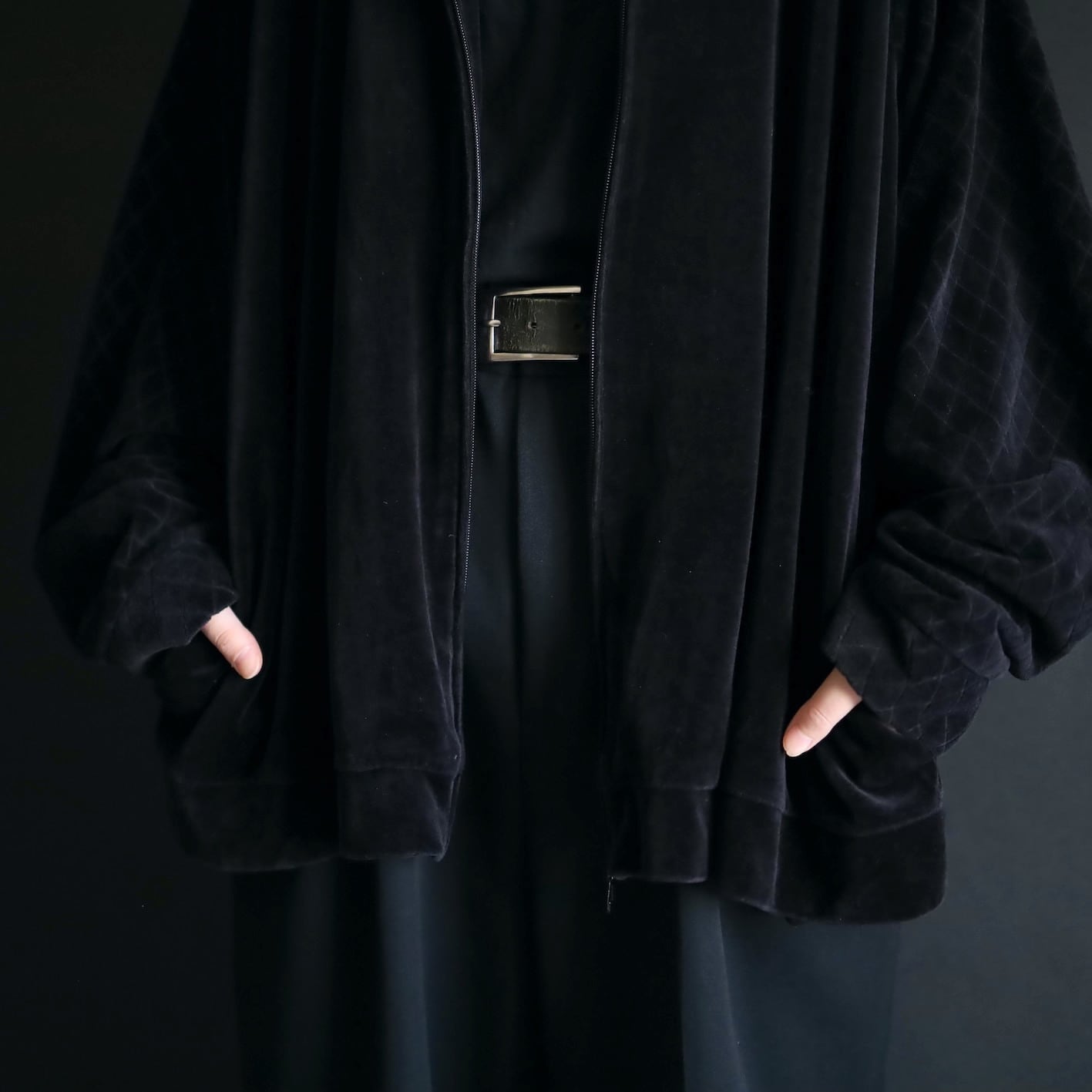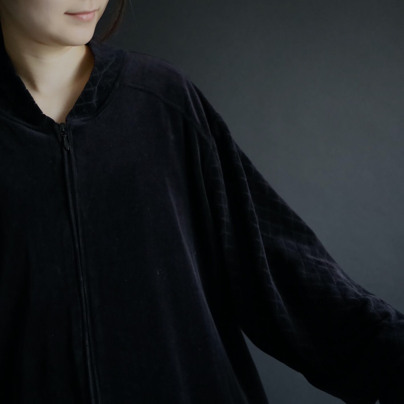 ベロアのカラー系は,その独特の光沢感もあるためか,コーデに落とし込むにも一癖ありますが,ブラックカラーならその心配もなし.