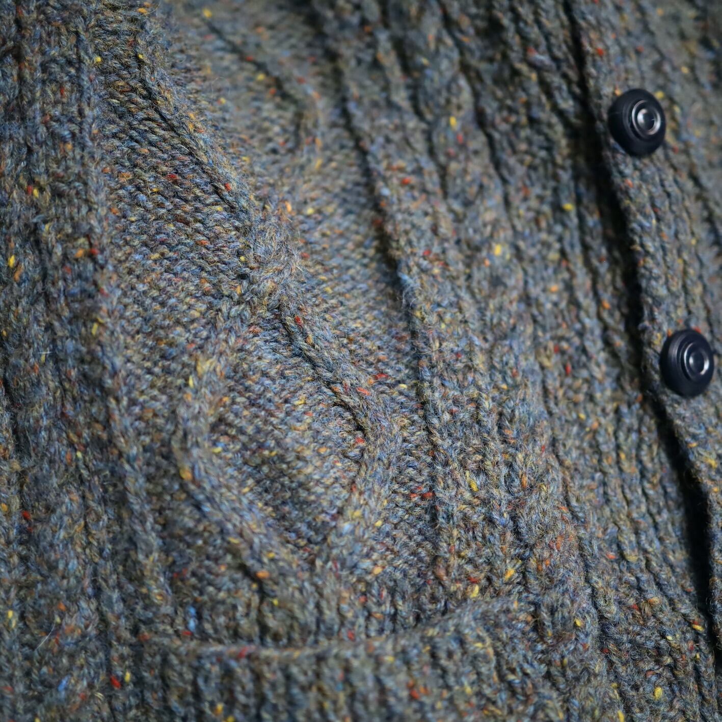 遠目ではグレーっぽく見えますが, ブルー,ネイビーにイエローやワインレッドなど,色とりどりのカラーが細かく編み込まれてます.