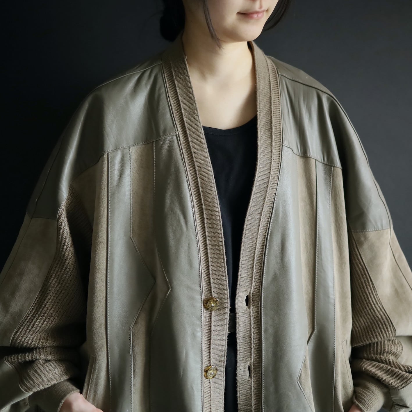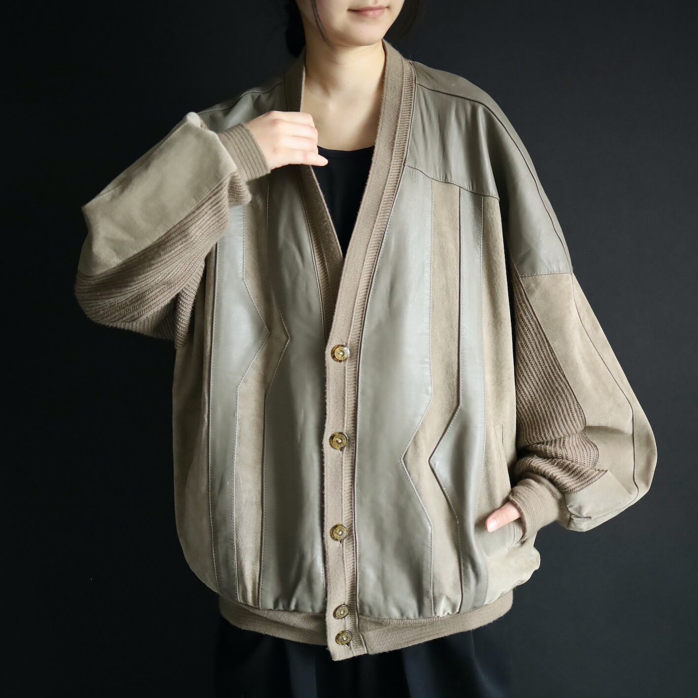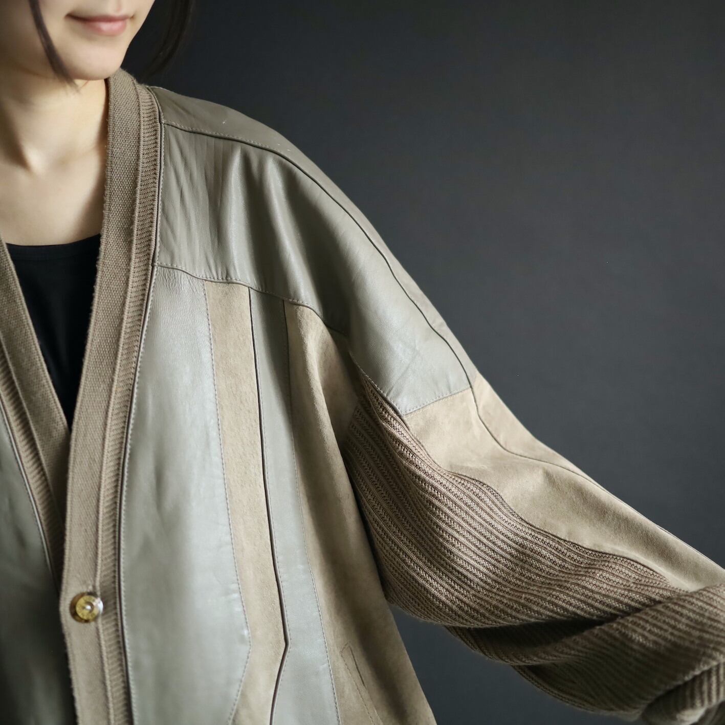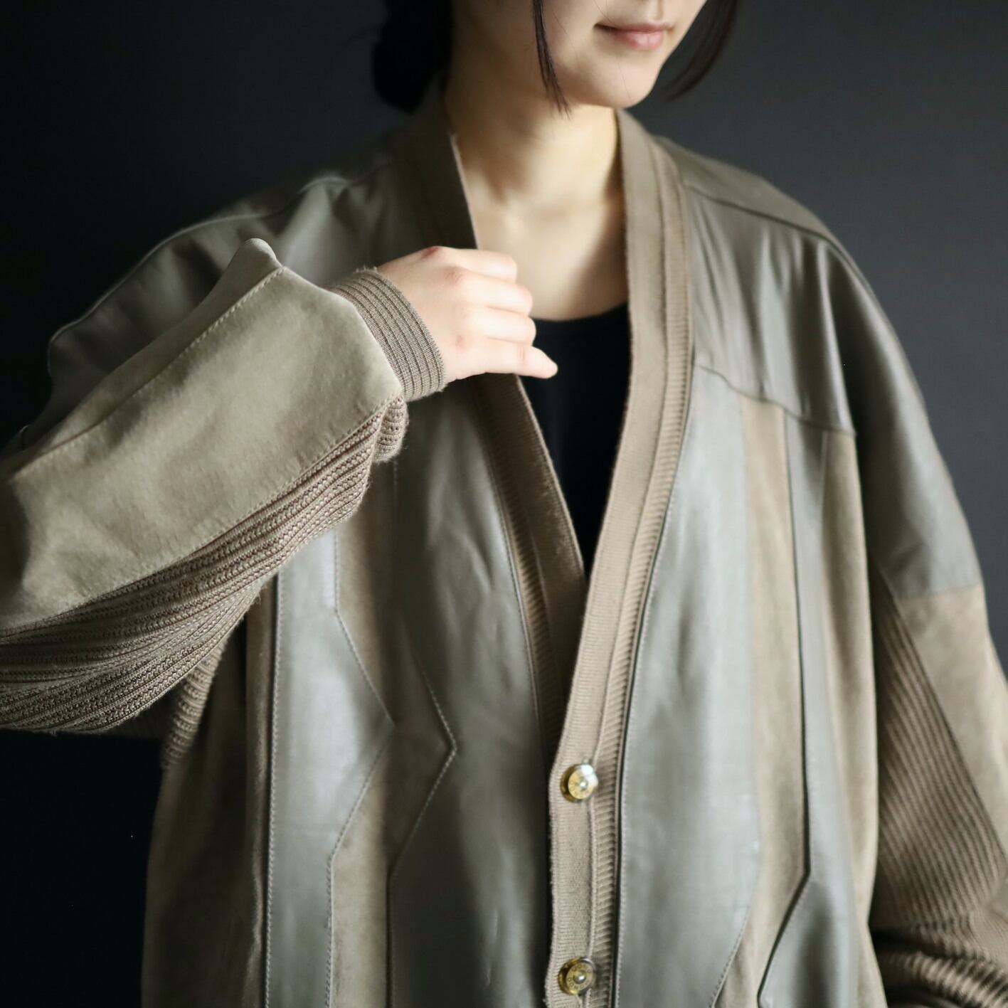 2種のレザーとニットの切替が効いた贅沢なカーディガン.