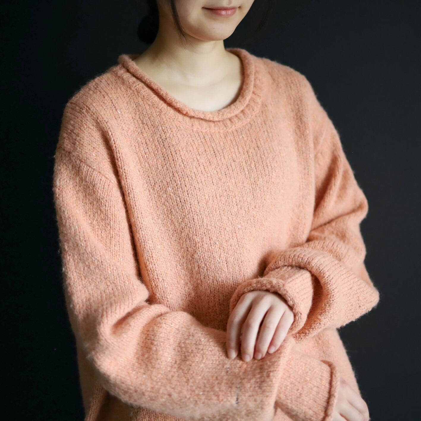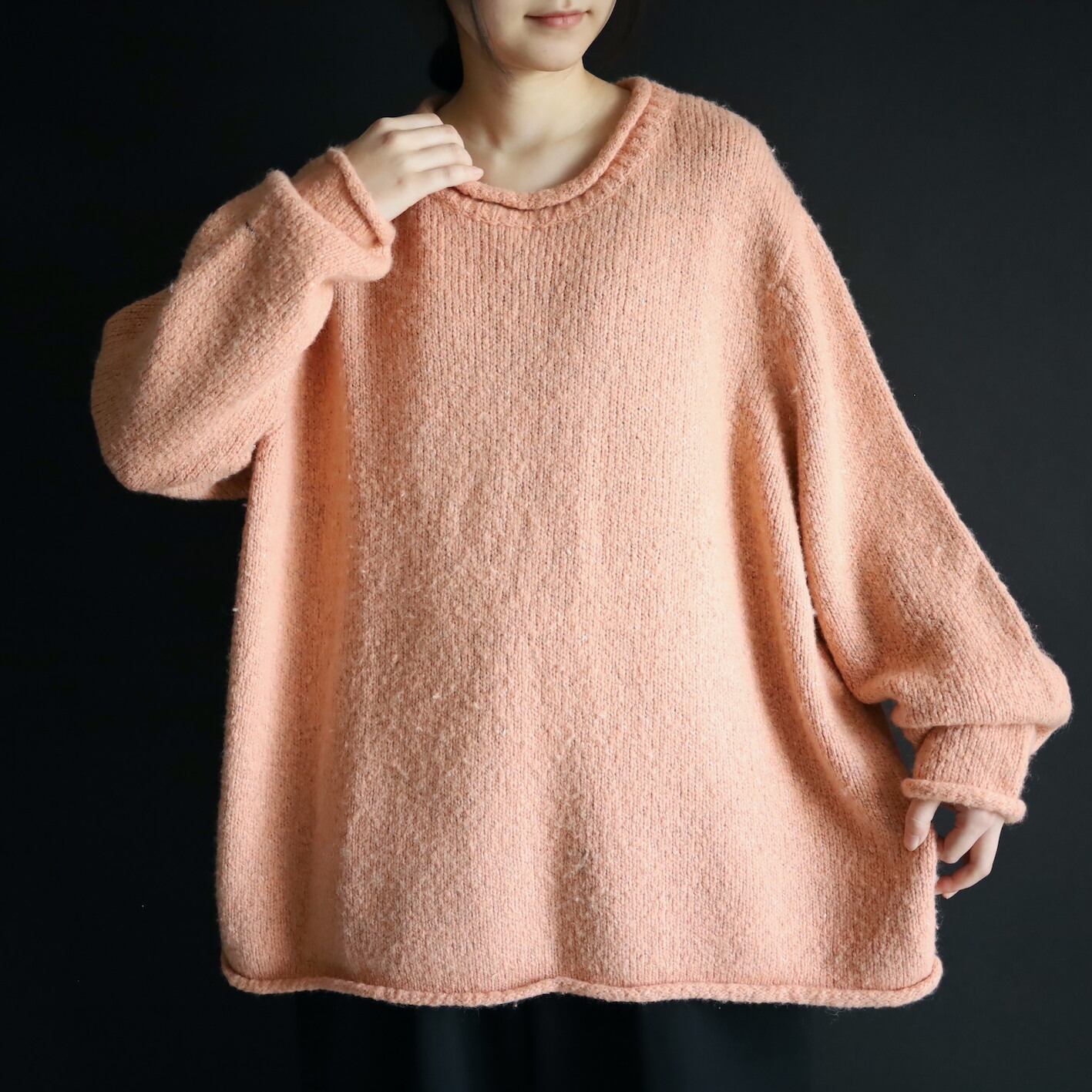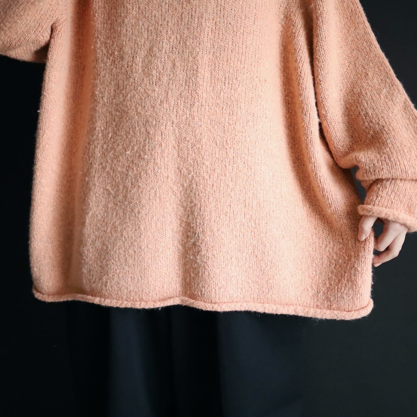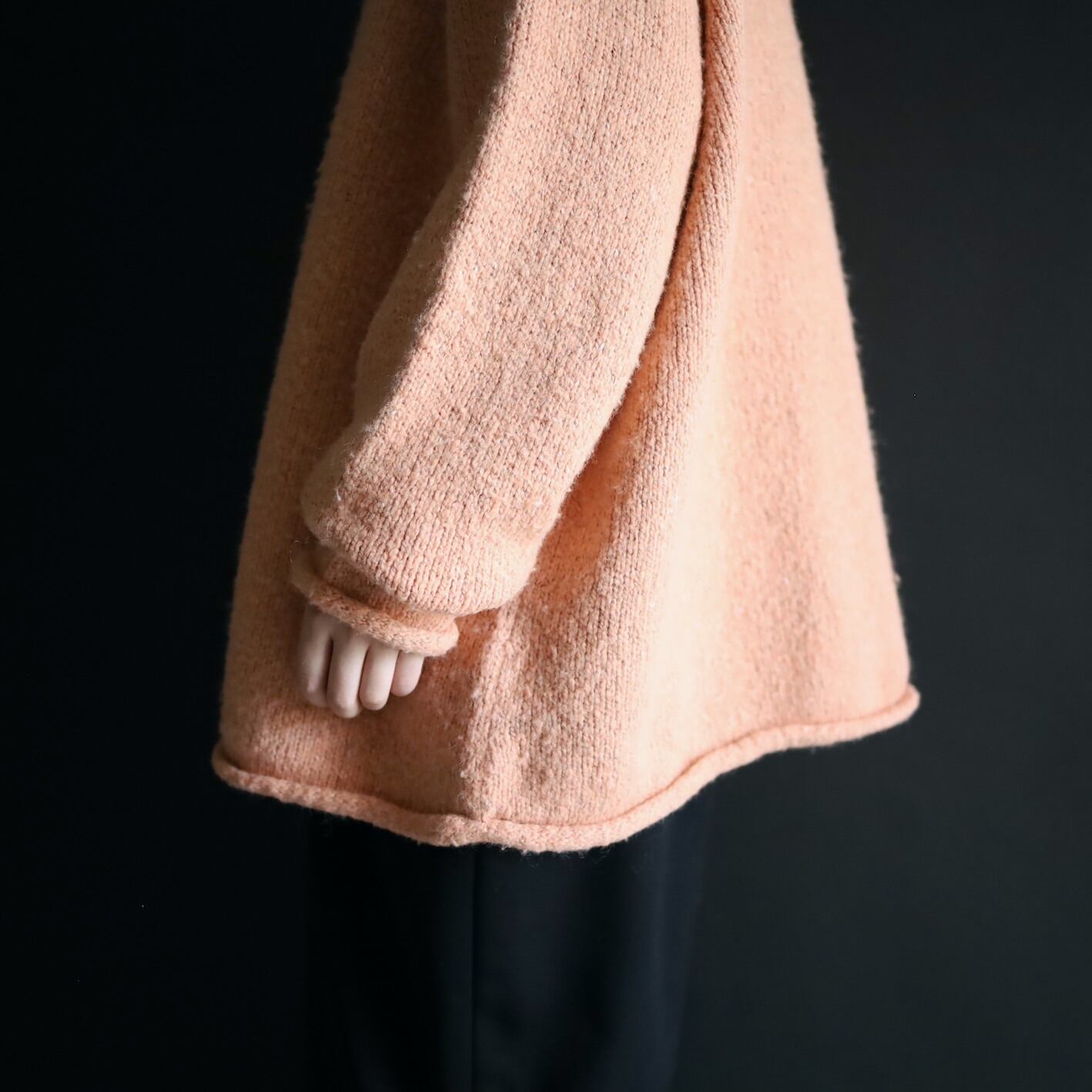 首元はロールネック,袖先,裾先も同様にロール仕立て.