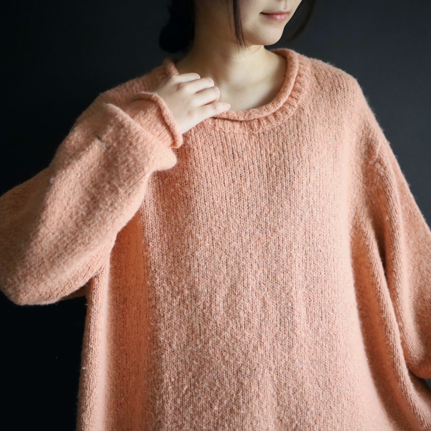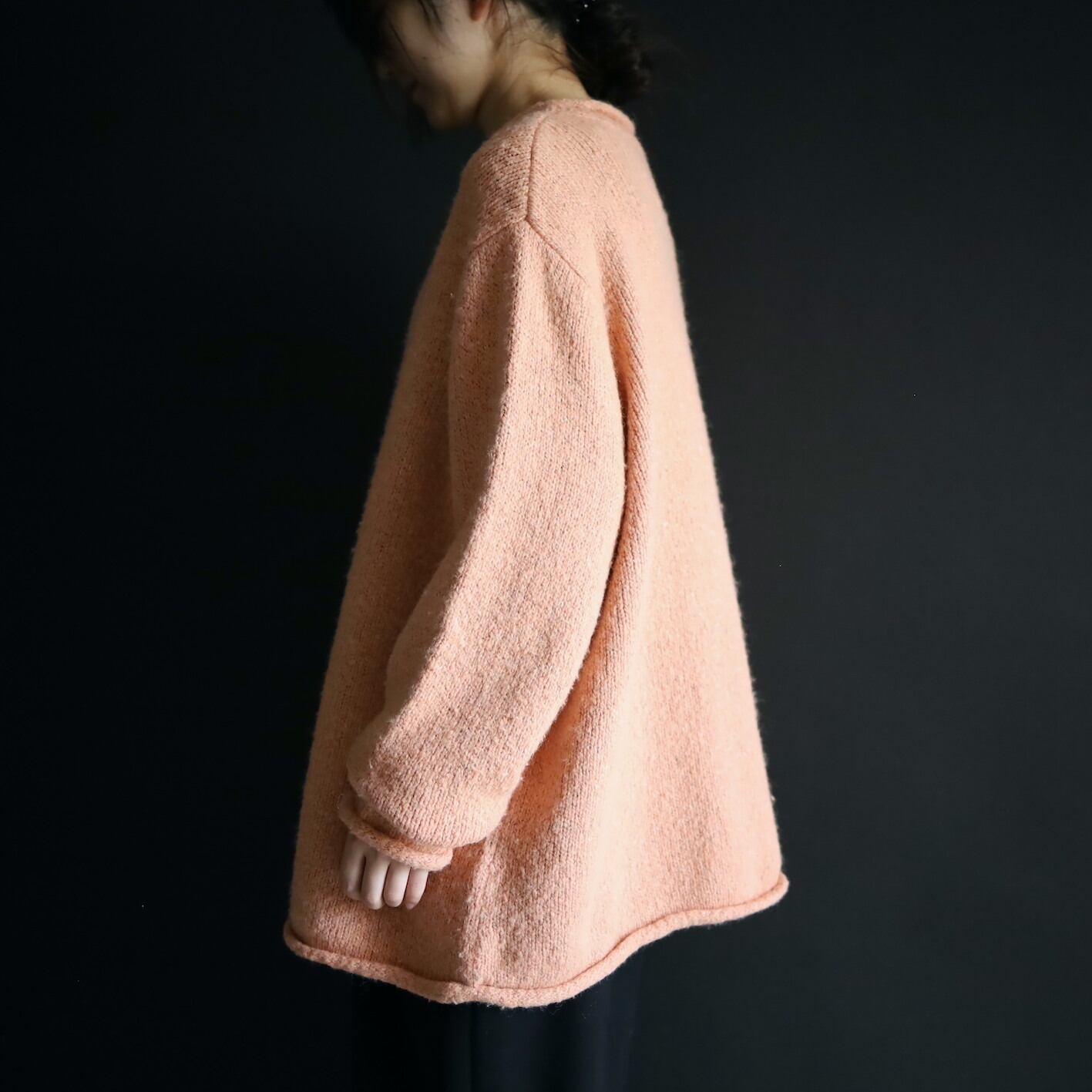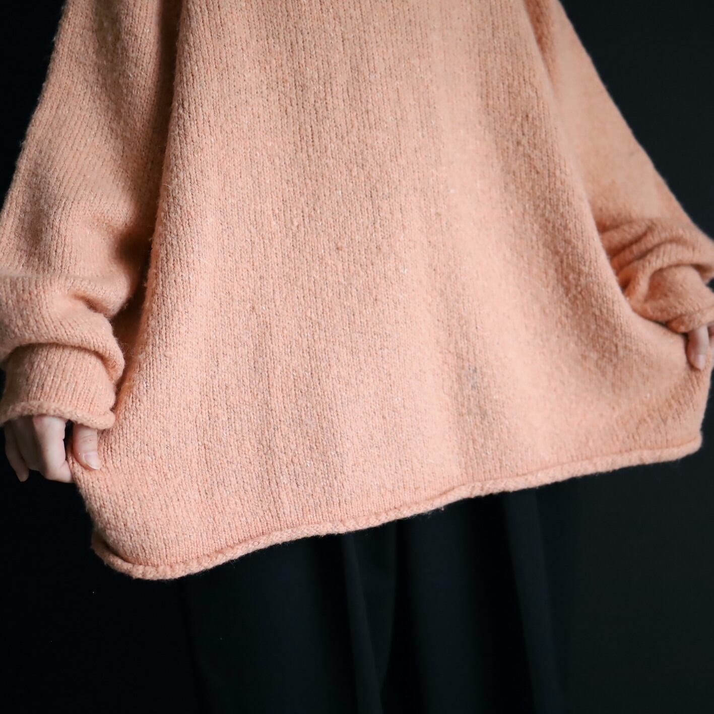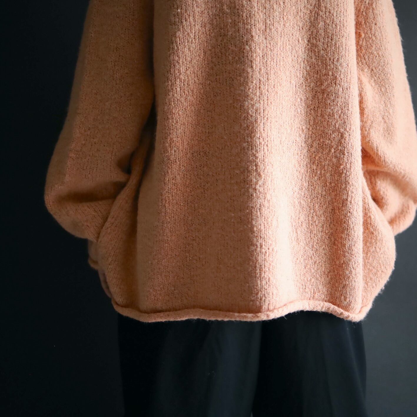 首元はロールネック,袖先,裾先も同様にロール仕立て.