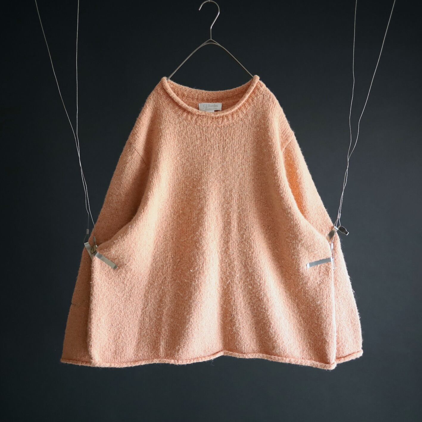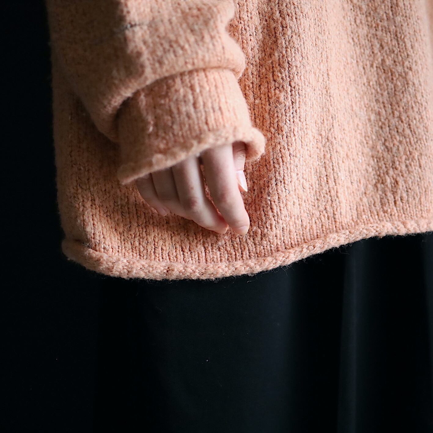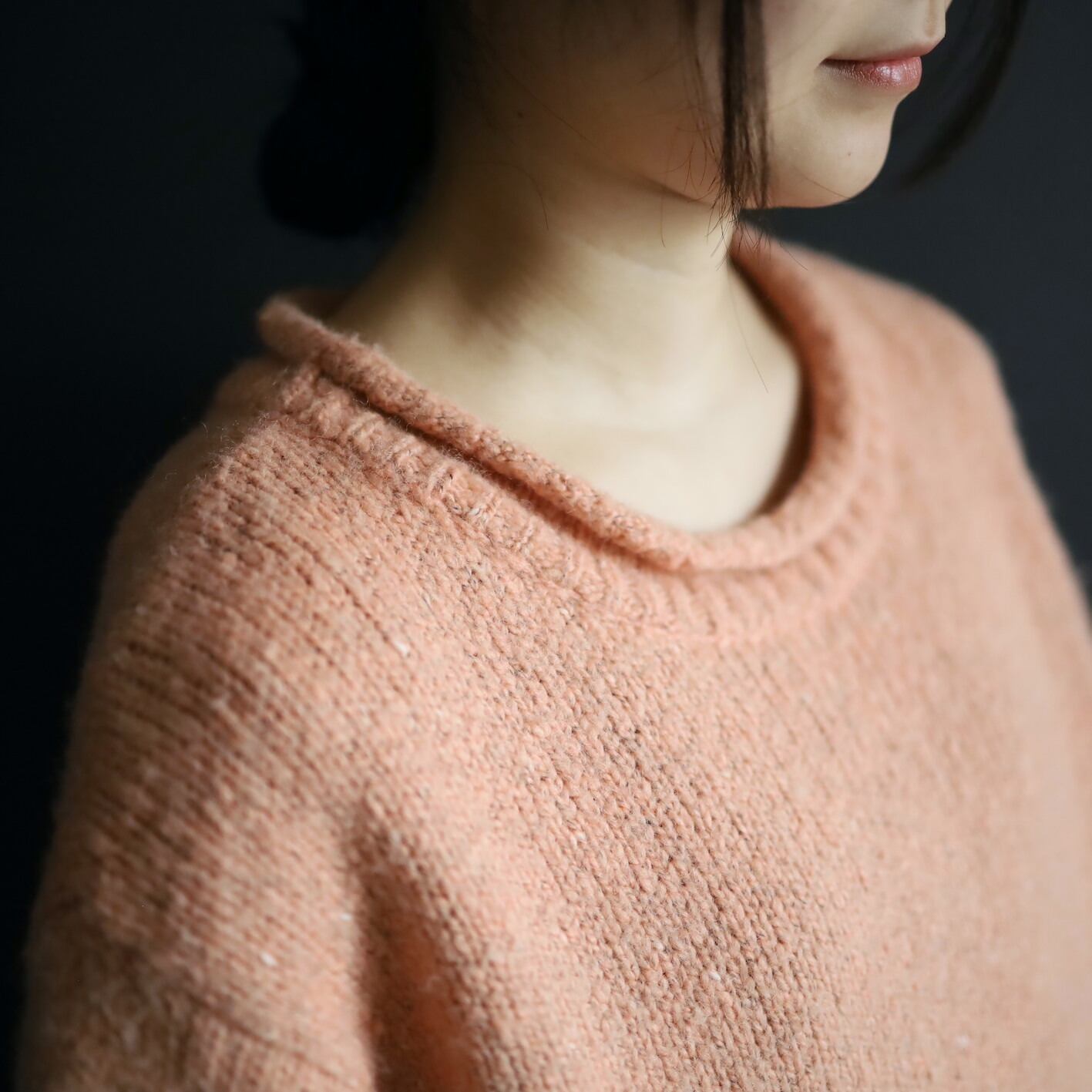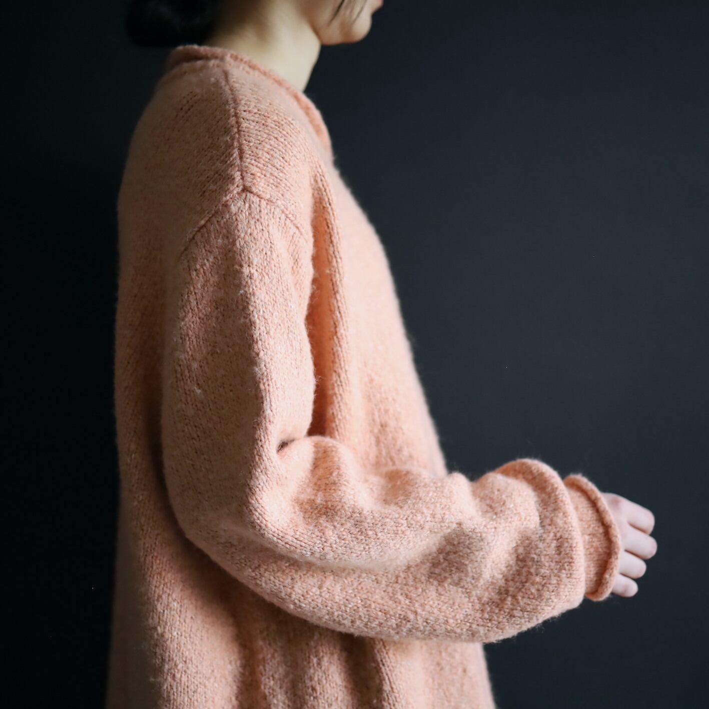 首元はロールネック,袖先,裾先も同様にロール仕立て.