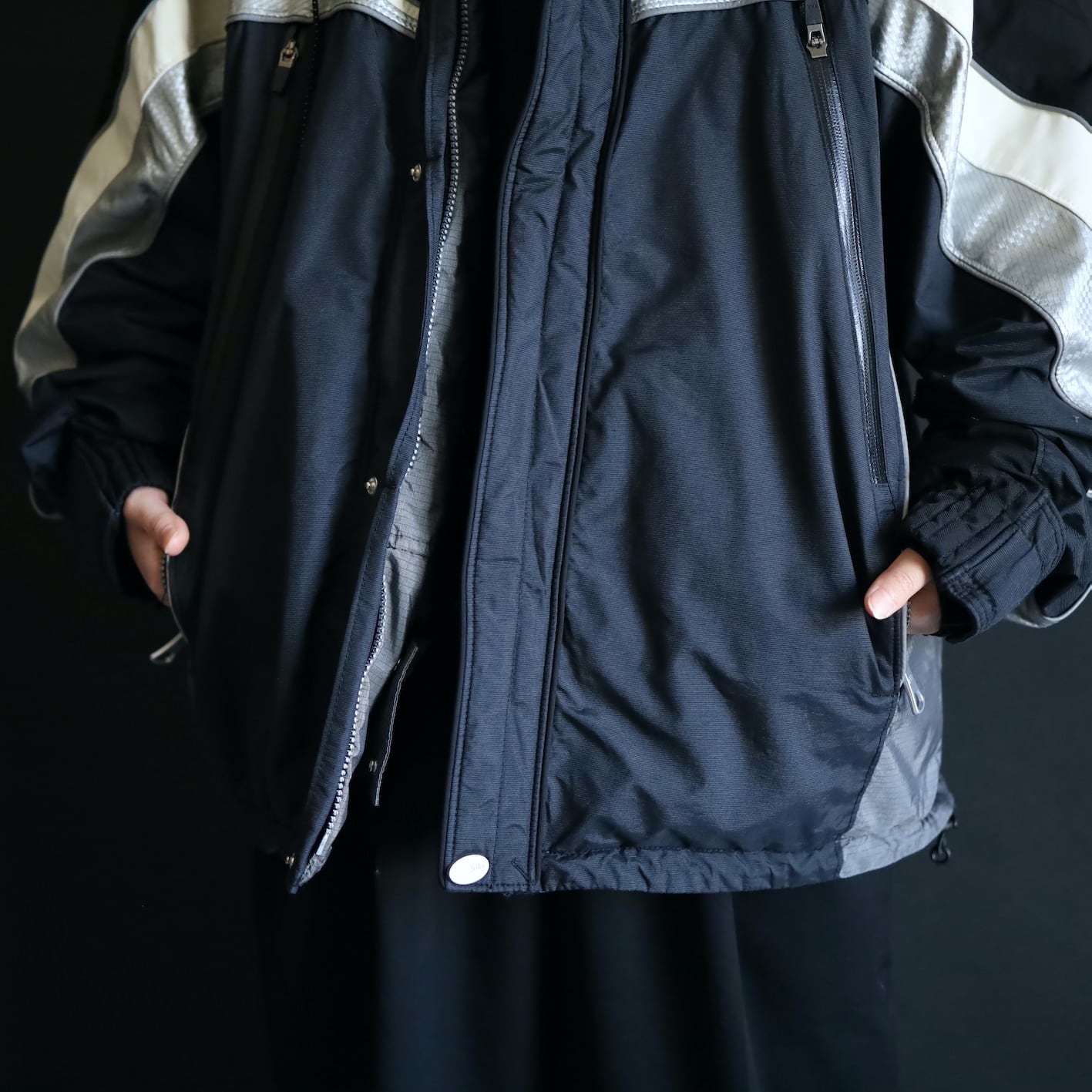 ポケットの数も大きさも申し分ないので,アウターとしての収納面でも安心設計.