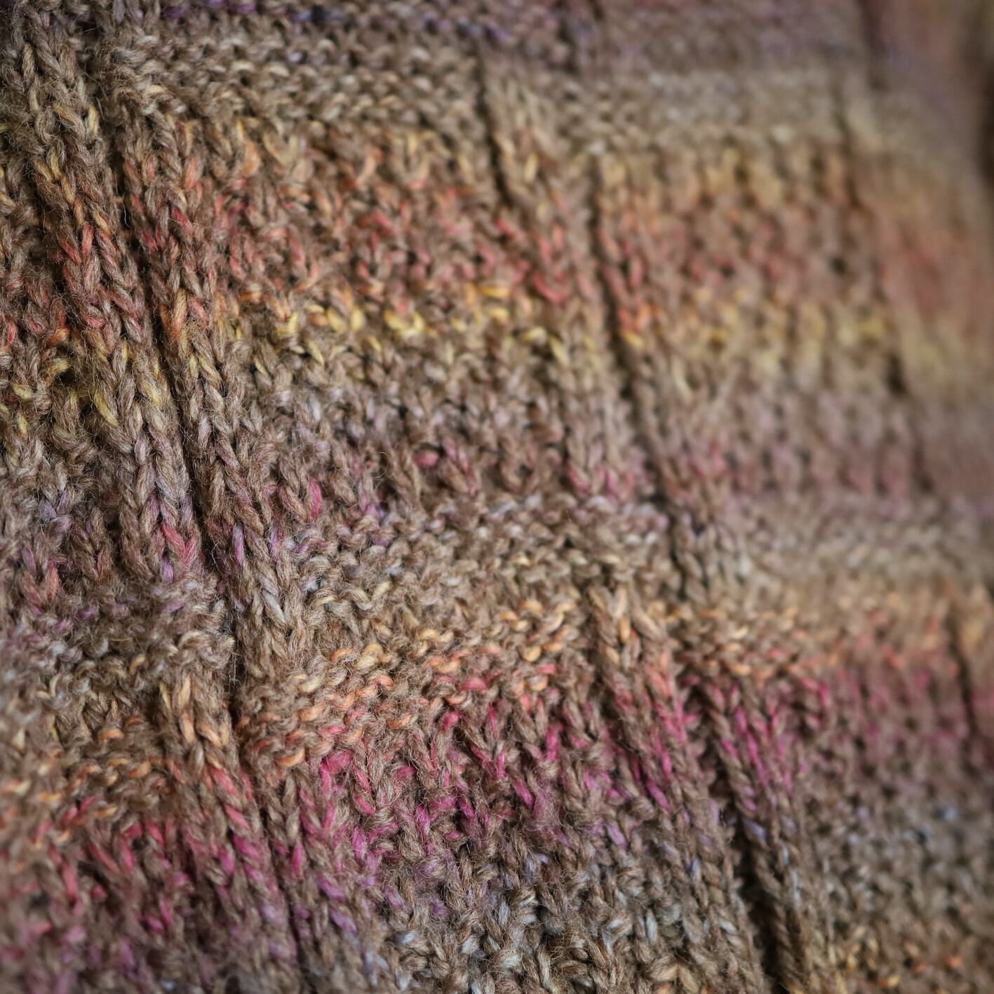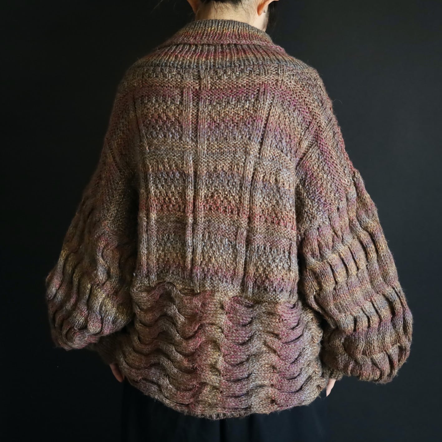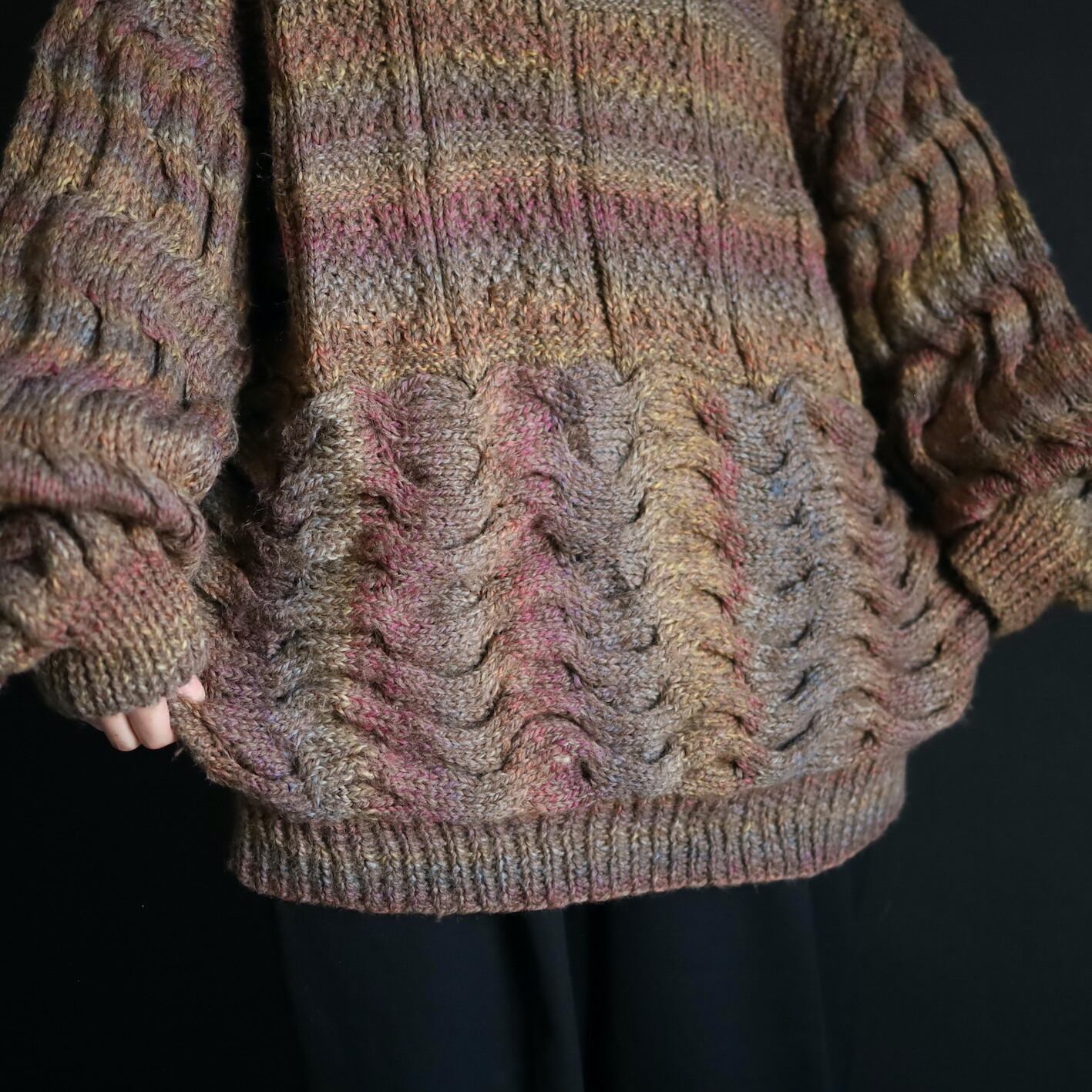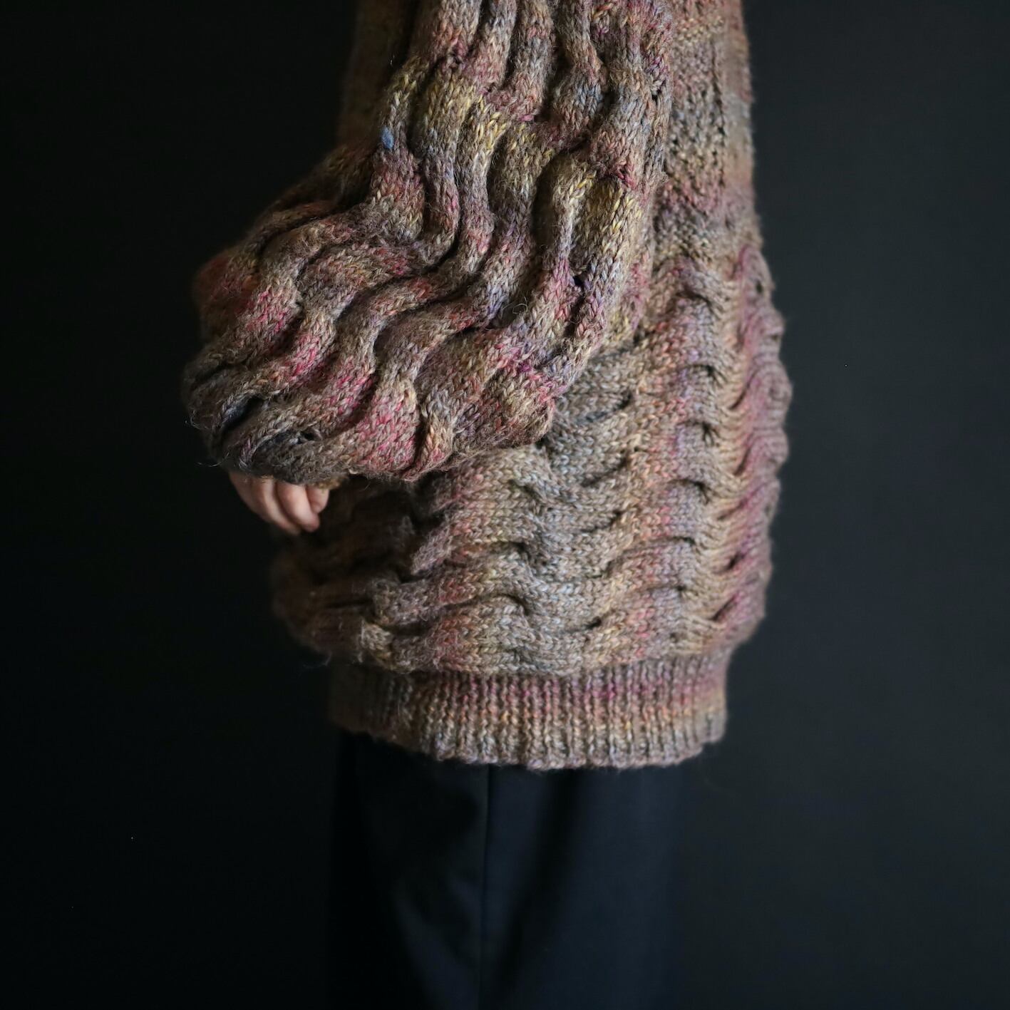 さらに身頃や袖の下部は3Dとも言える立体的な編み込み.