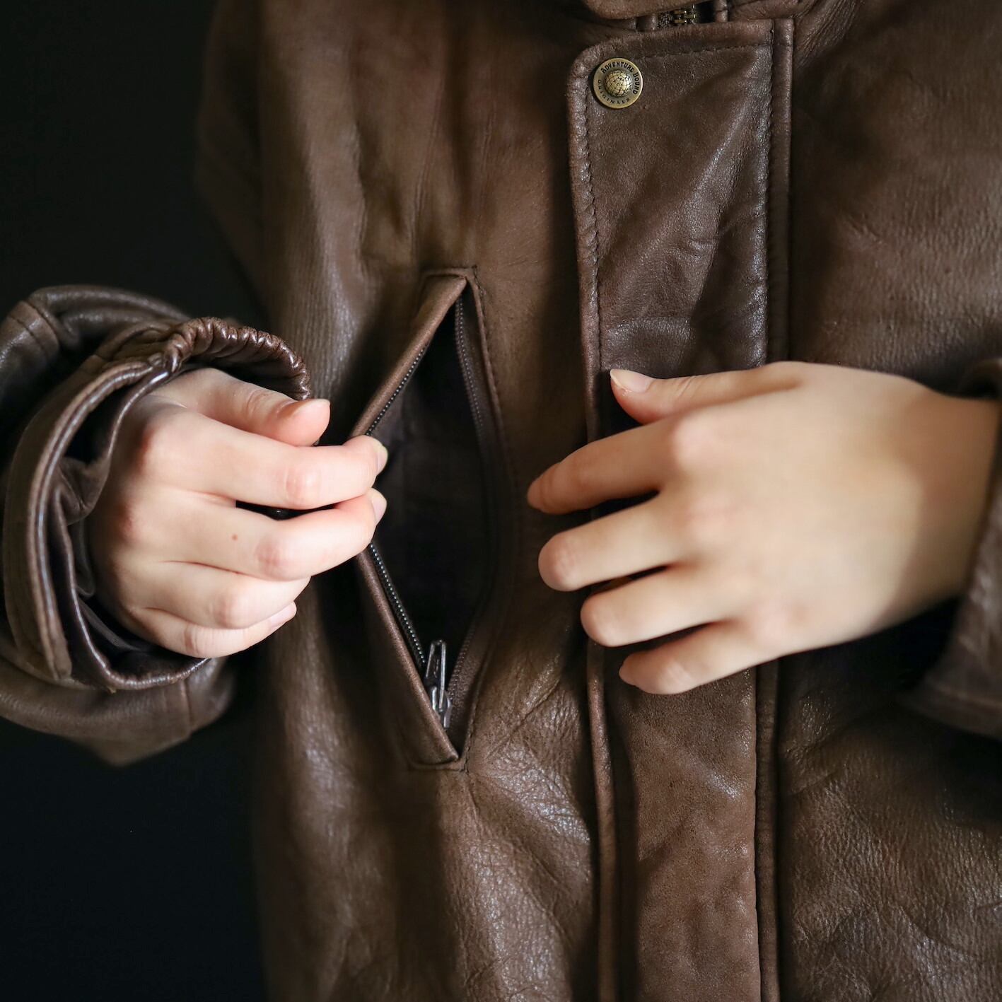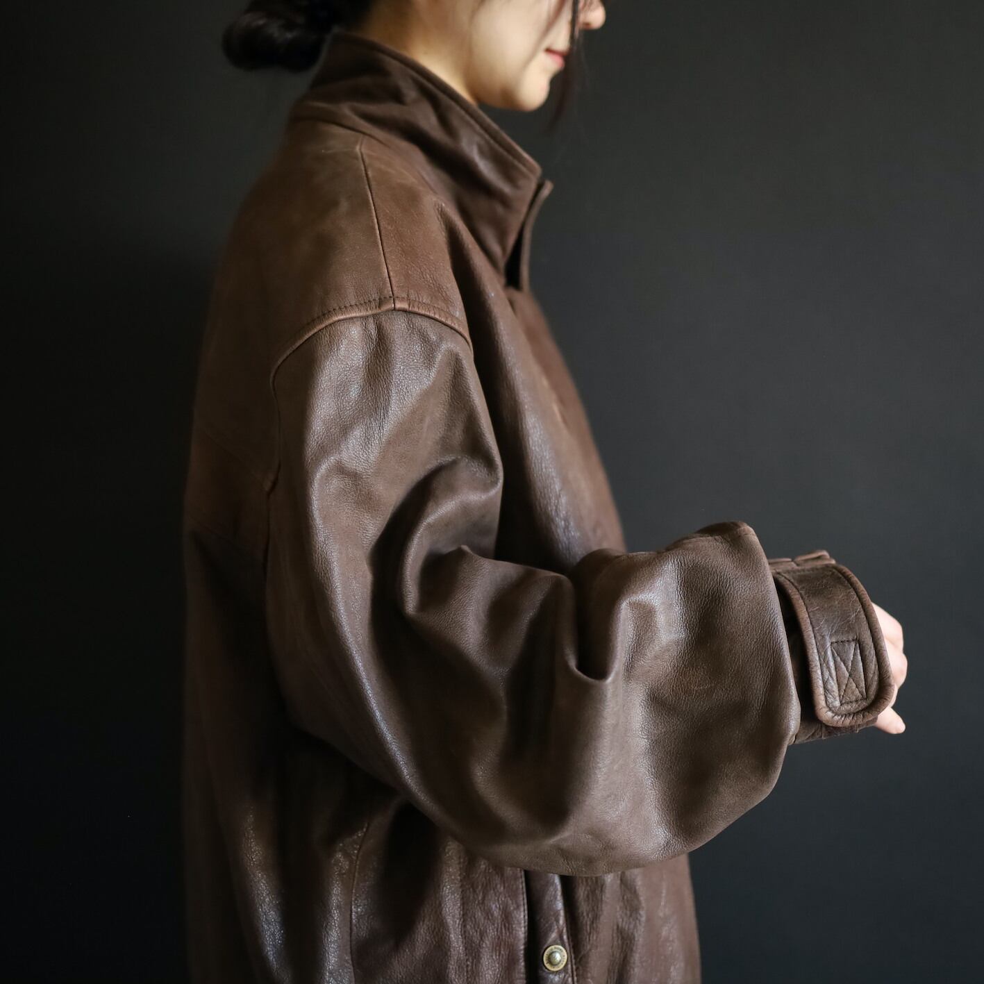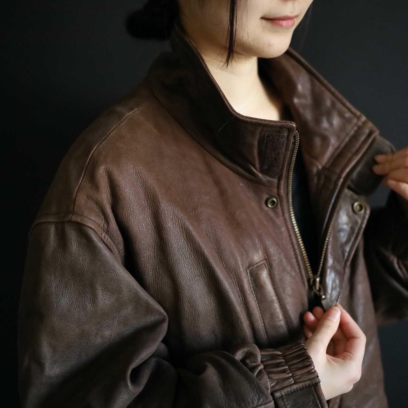 クセのない形状のハイネックブルゾンタイプ,年齢を重ねても着続けられる上,さらに味わい深く成長していくのもレザーの良さですね.