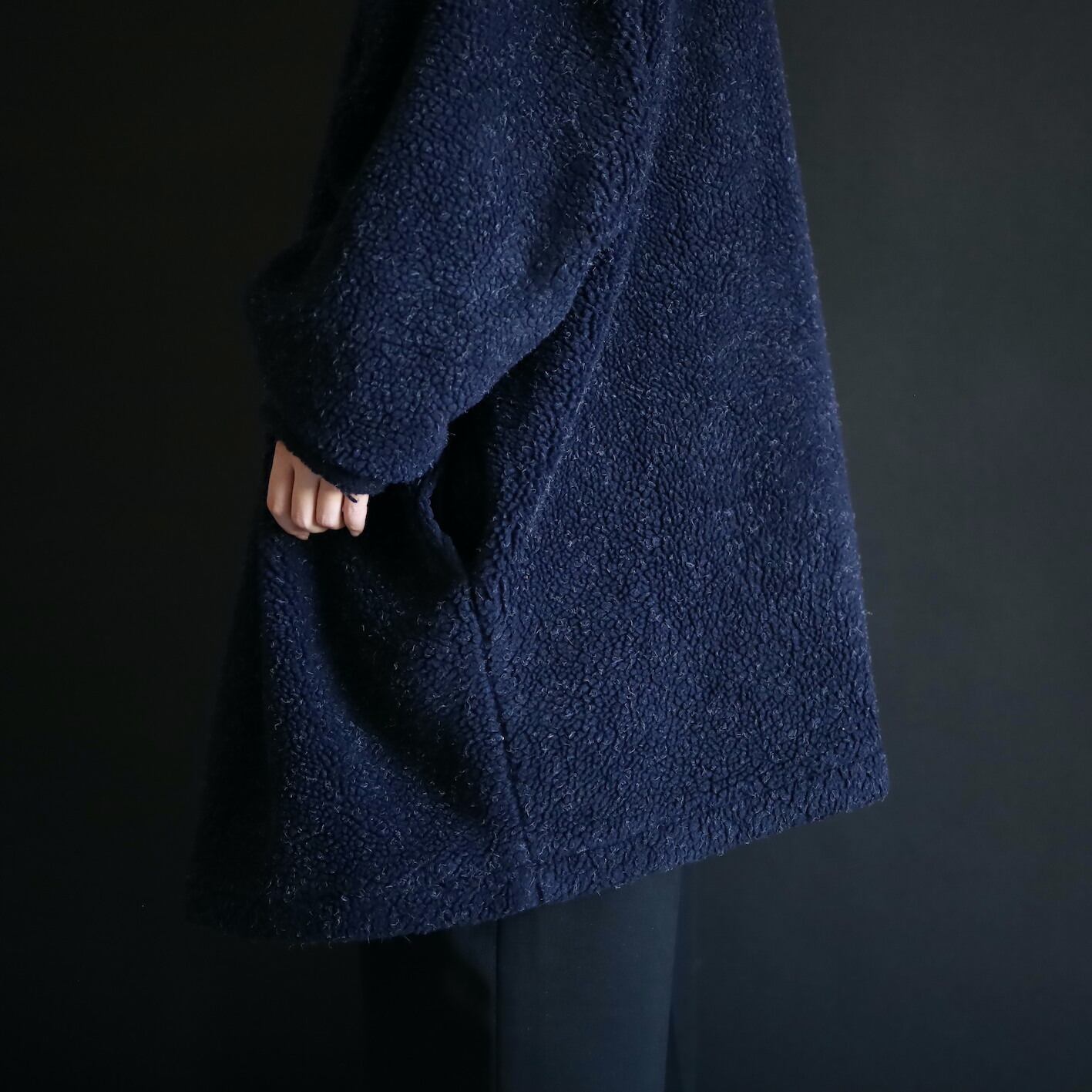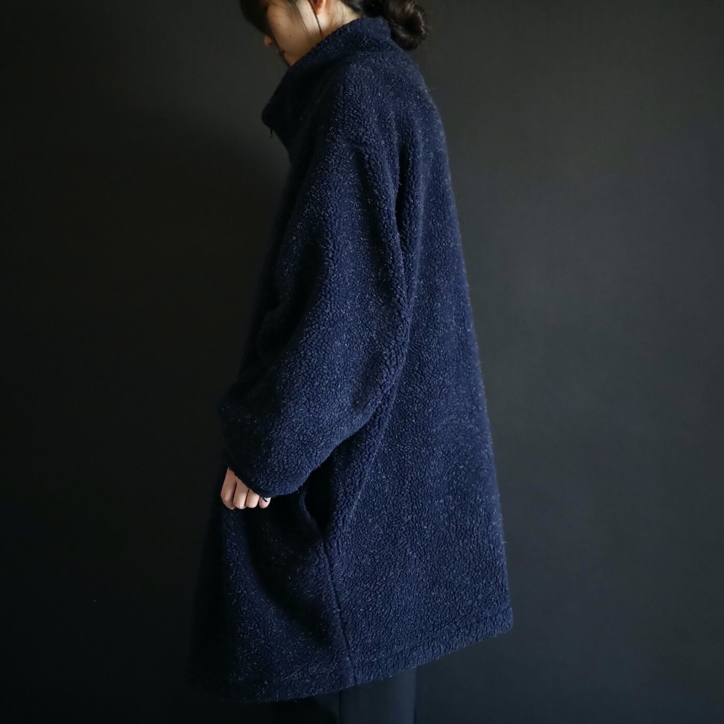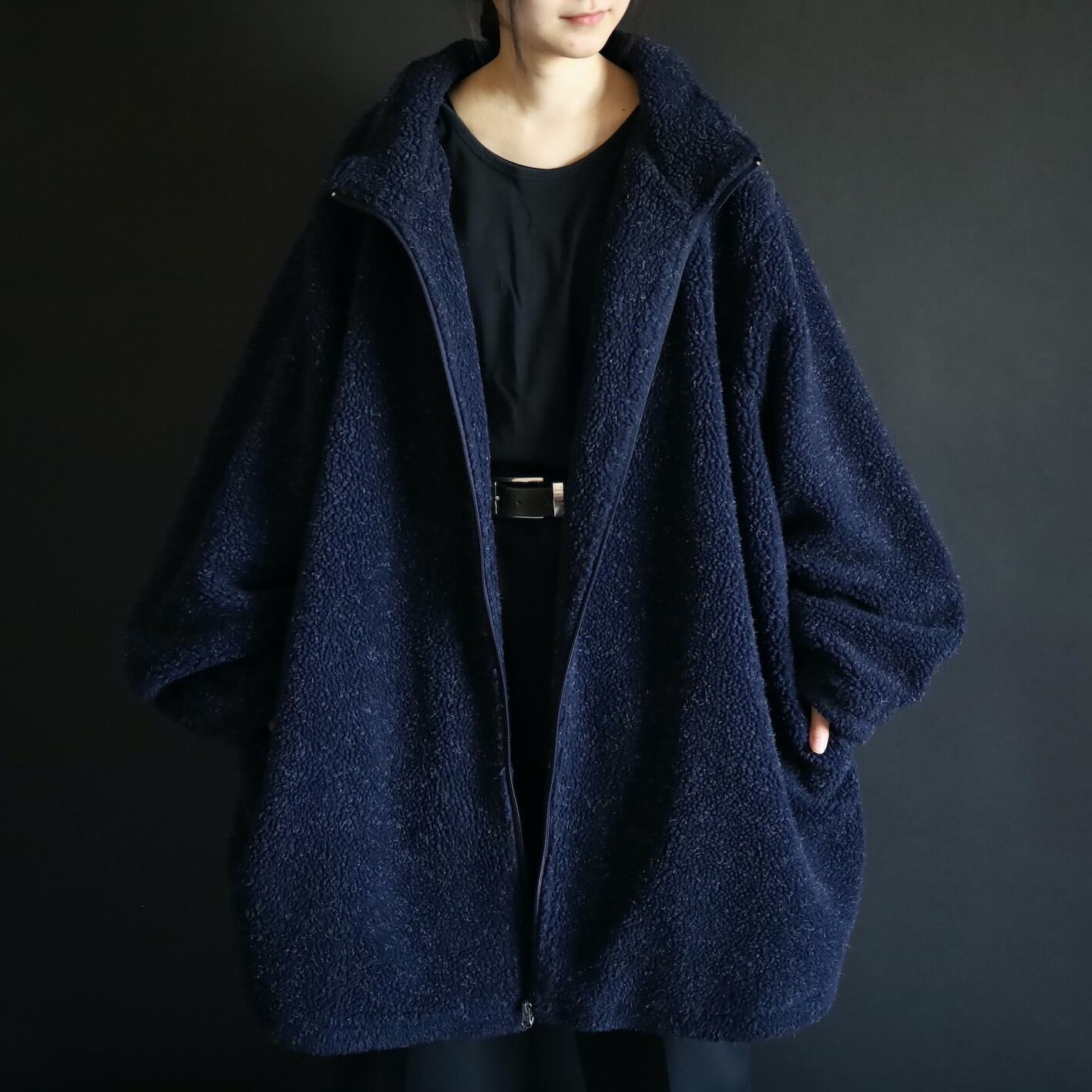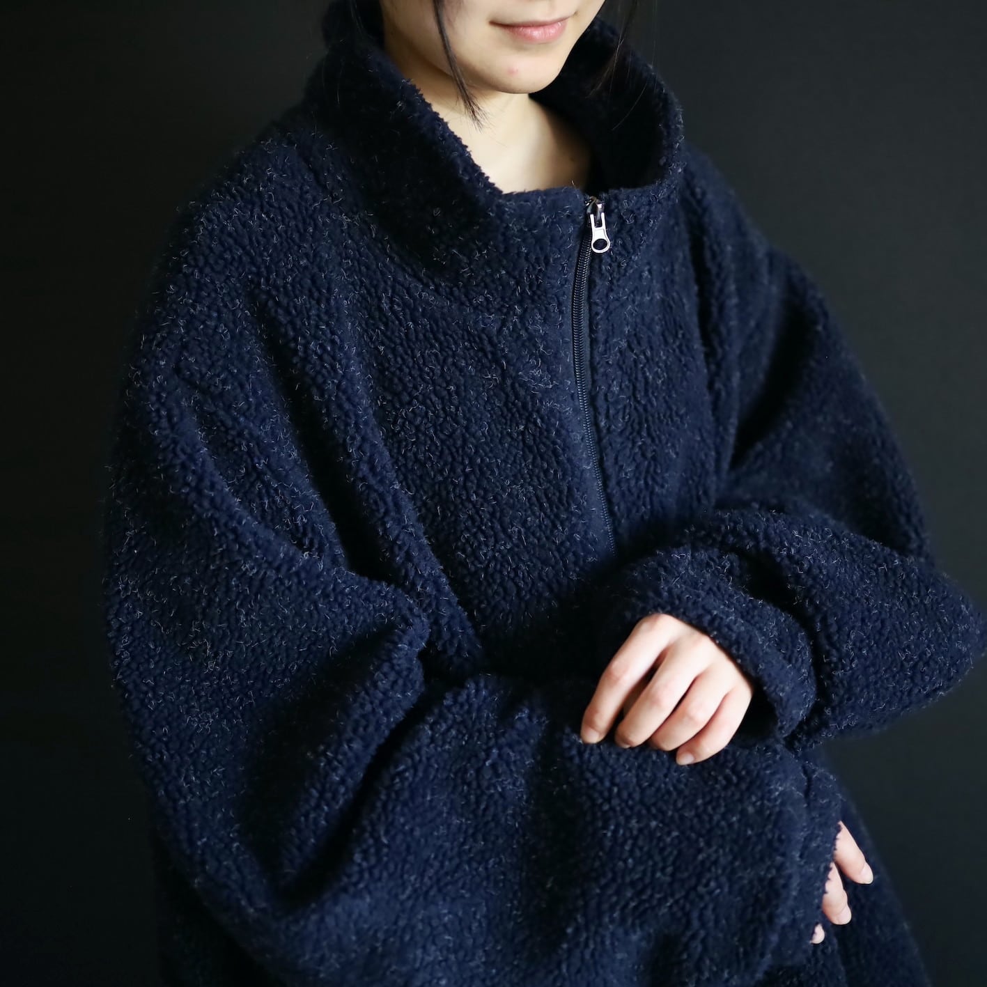 ダークトーンよりのネイビーカラーベースに,若干のホワイトの毛足の混じったボアフリース.