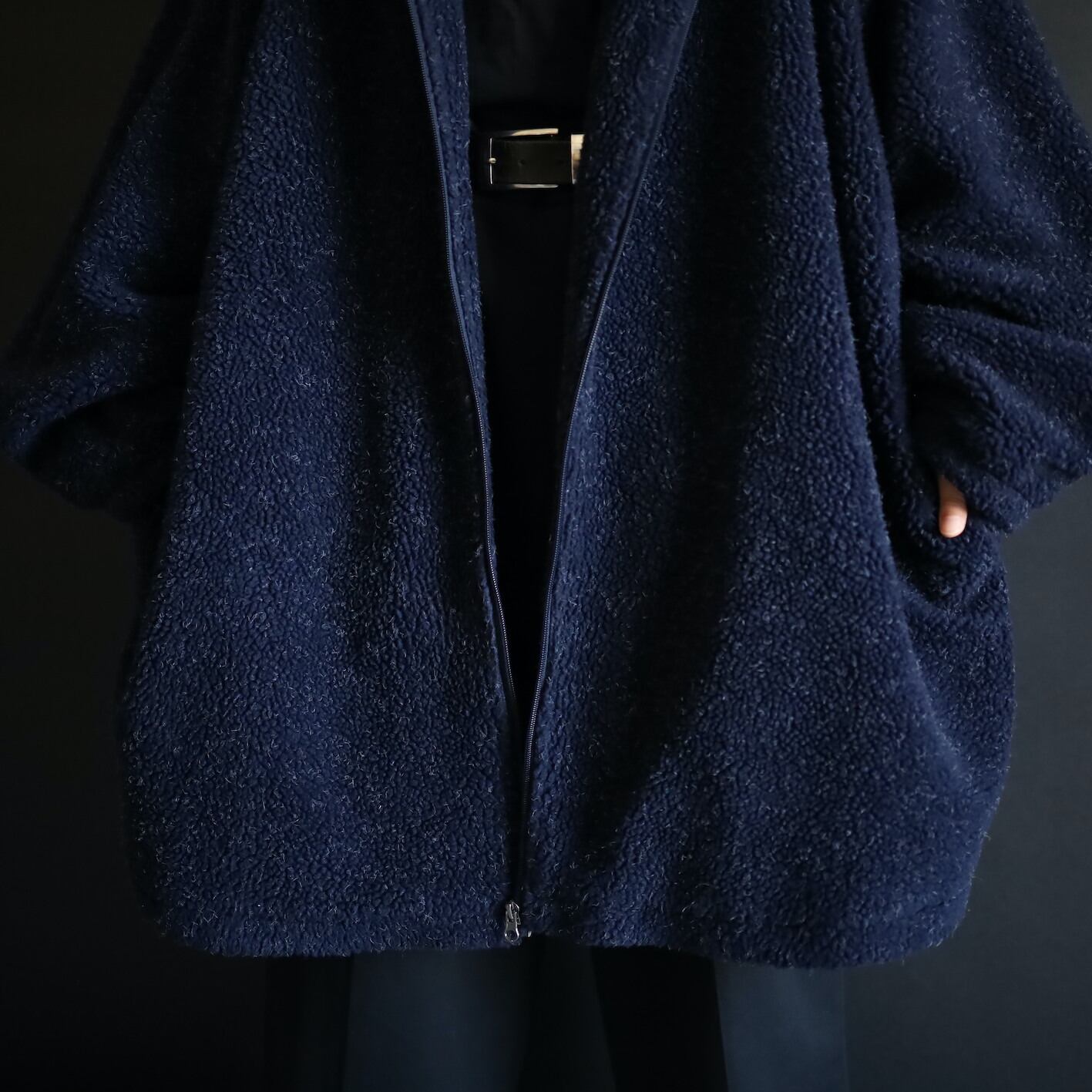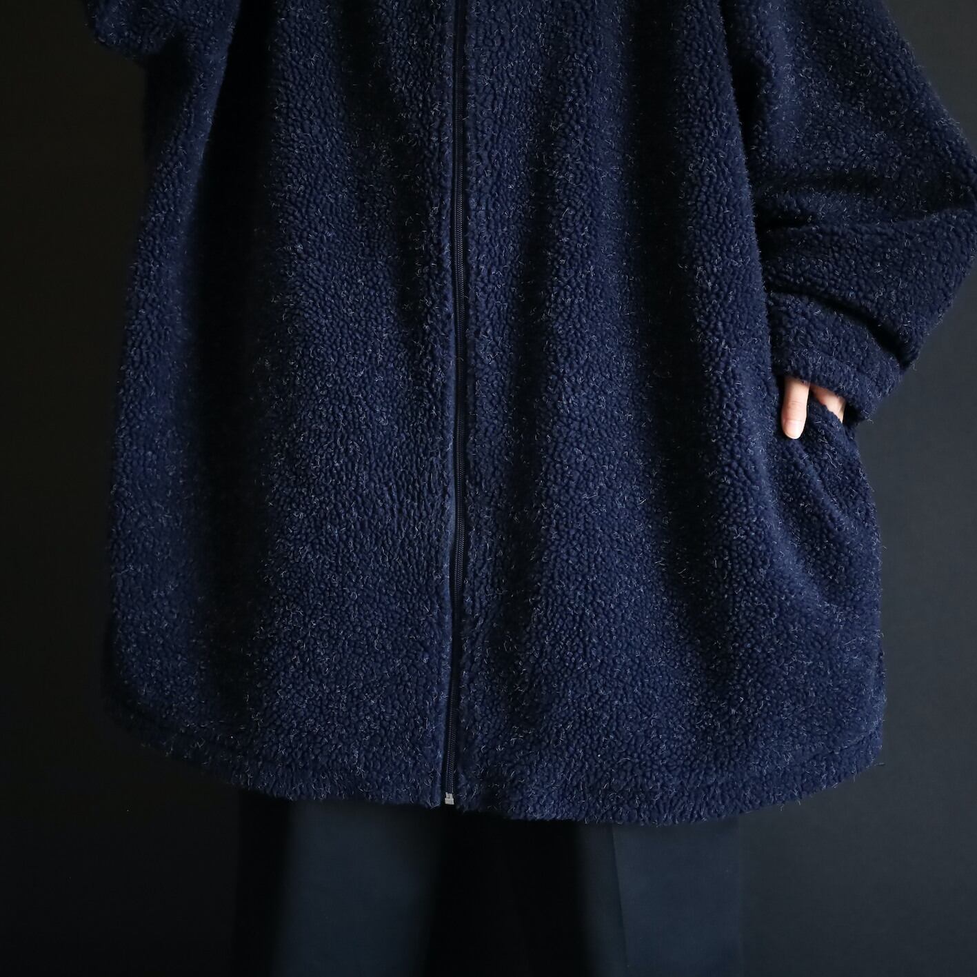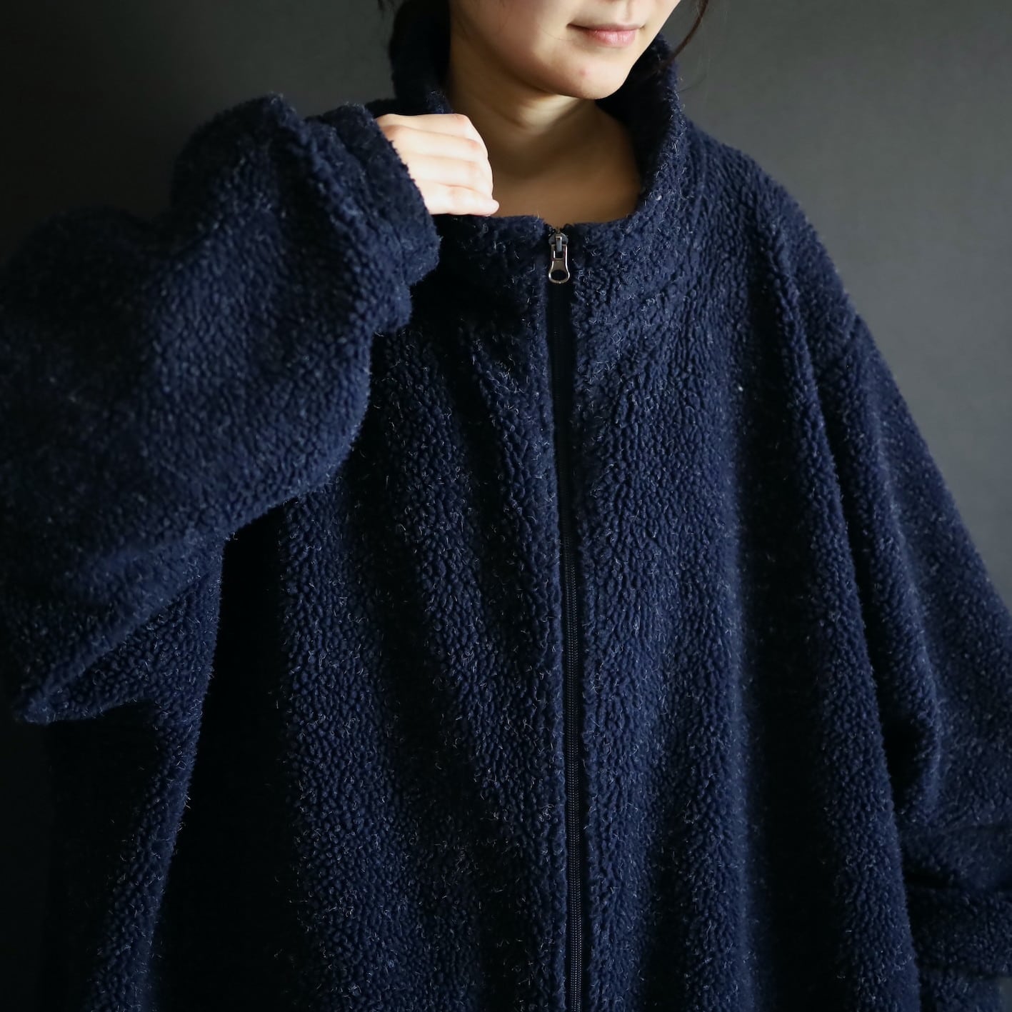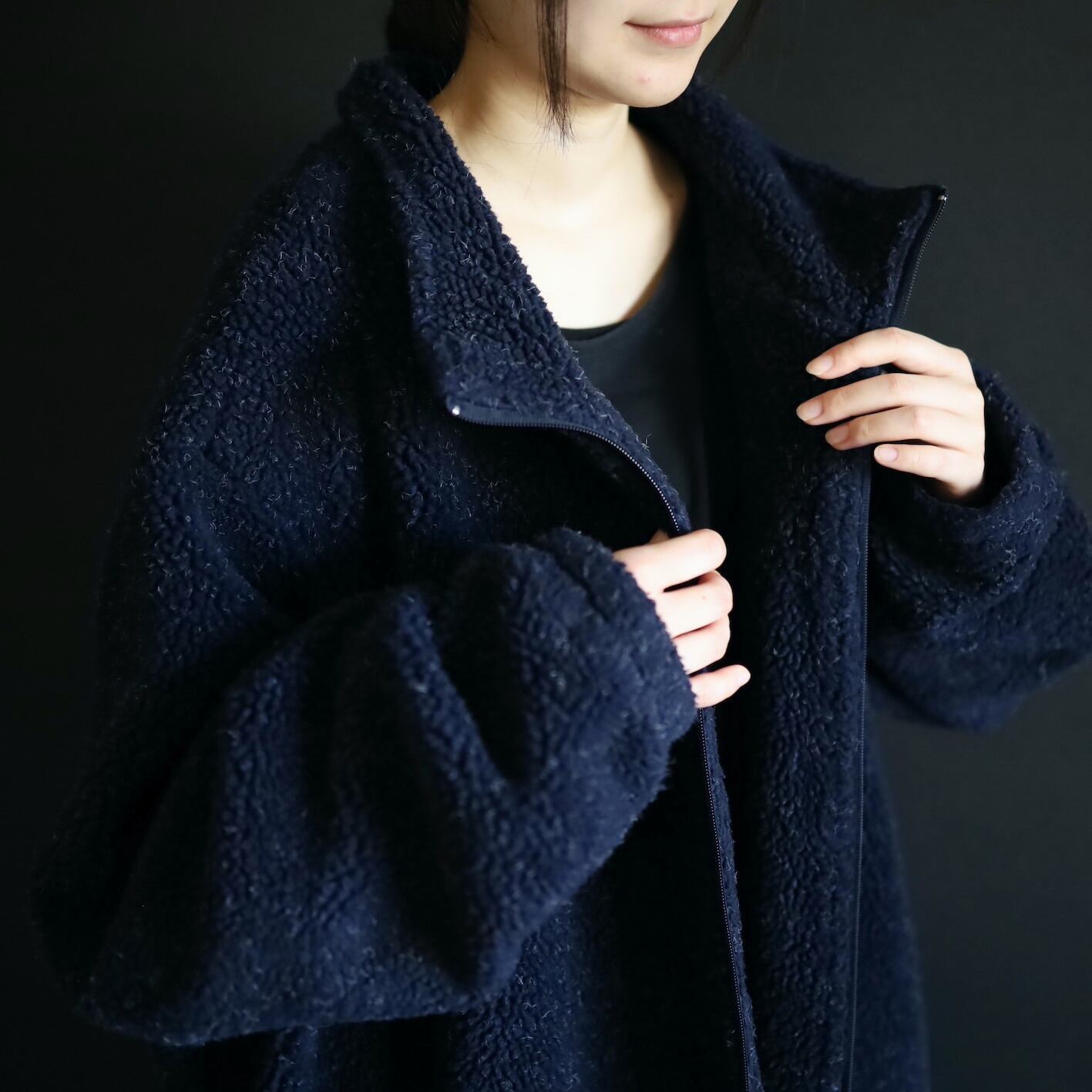 ダークトーンよりのネイビーカラーベースに,若干のホワイトの毛足の混じったボアフリース.