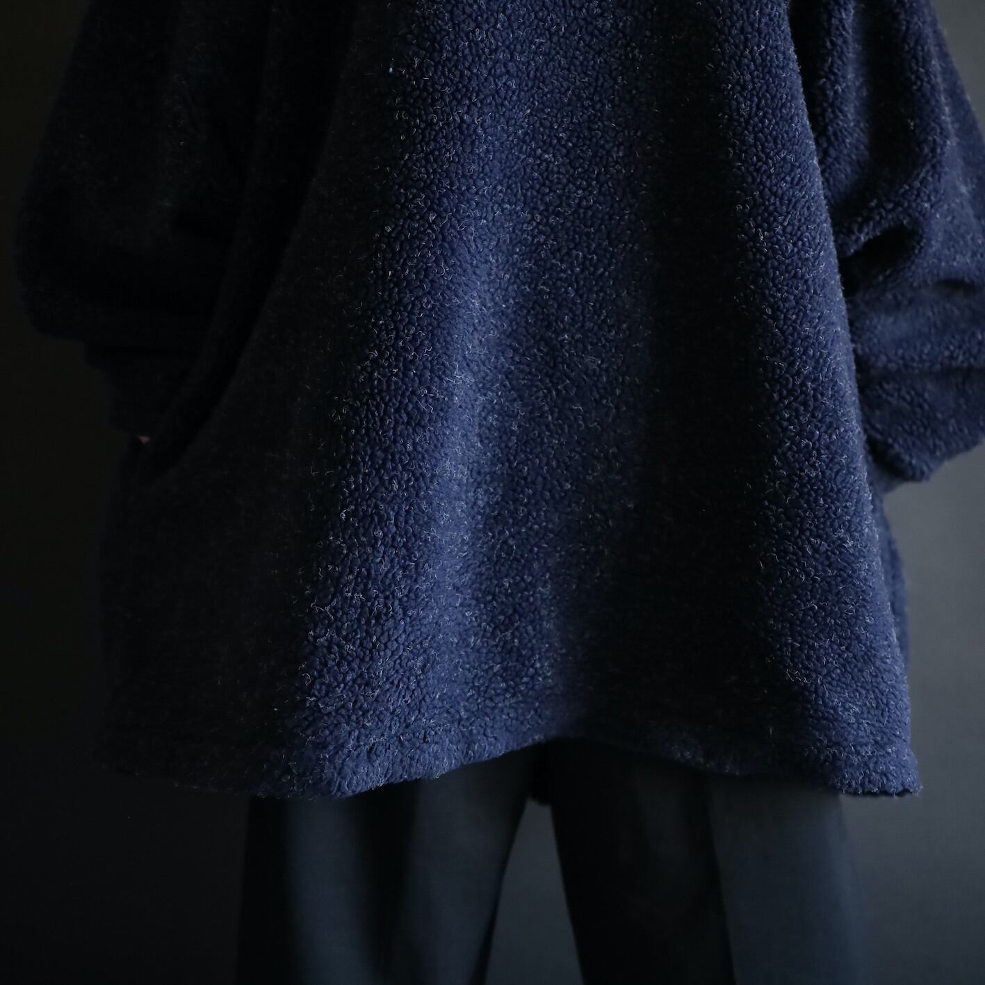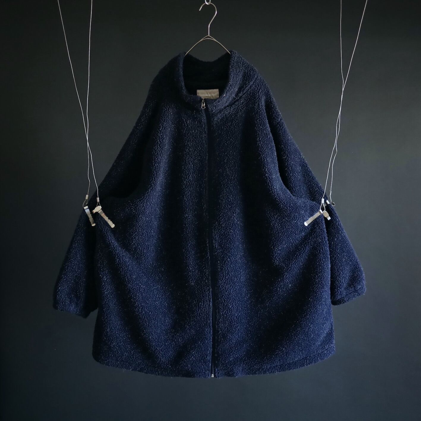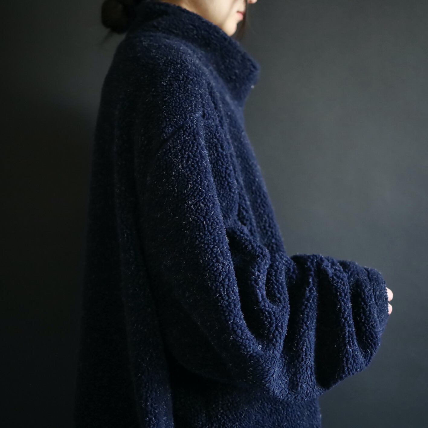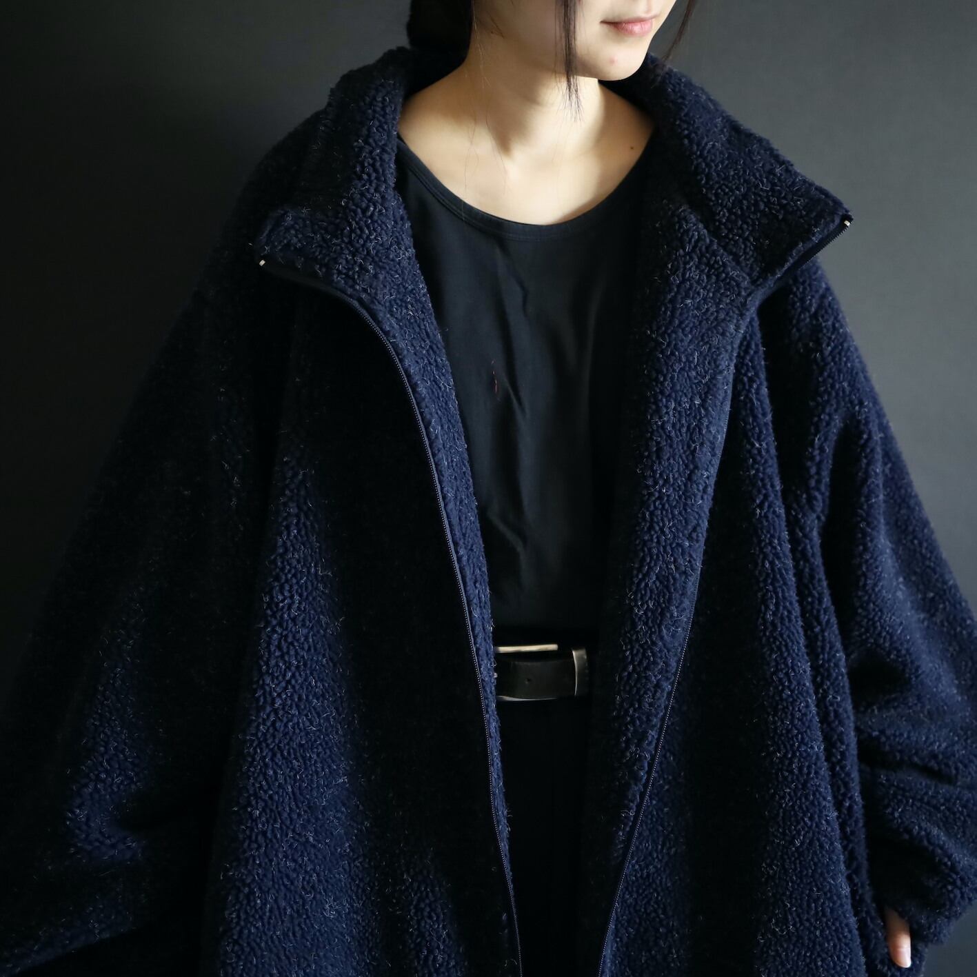 ダークトーンよりのネイビーカラーベースに,若干のホワイトの毛足の混じったボアフリース.