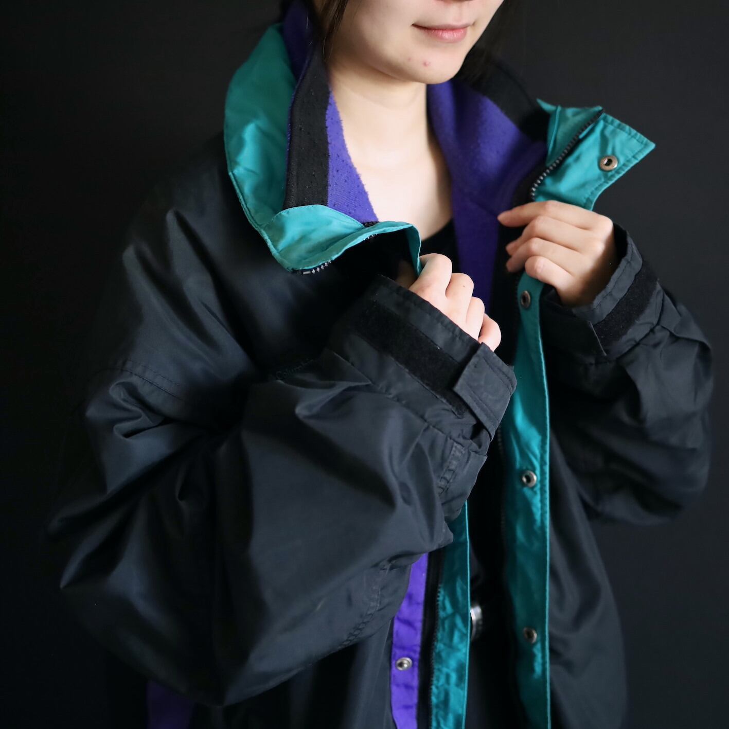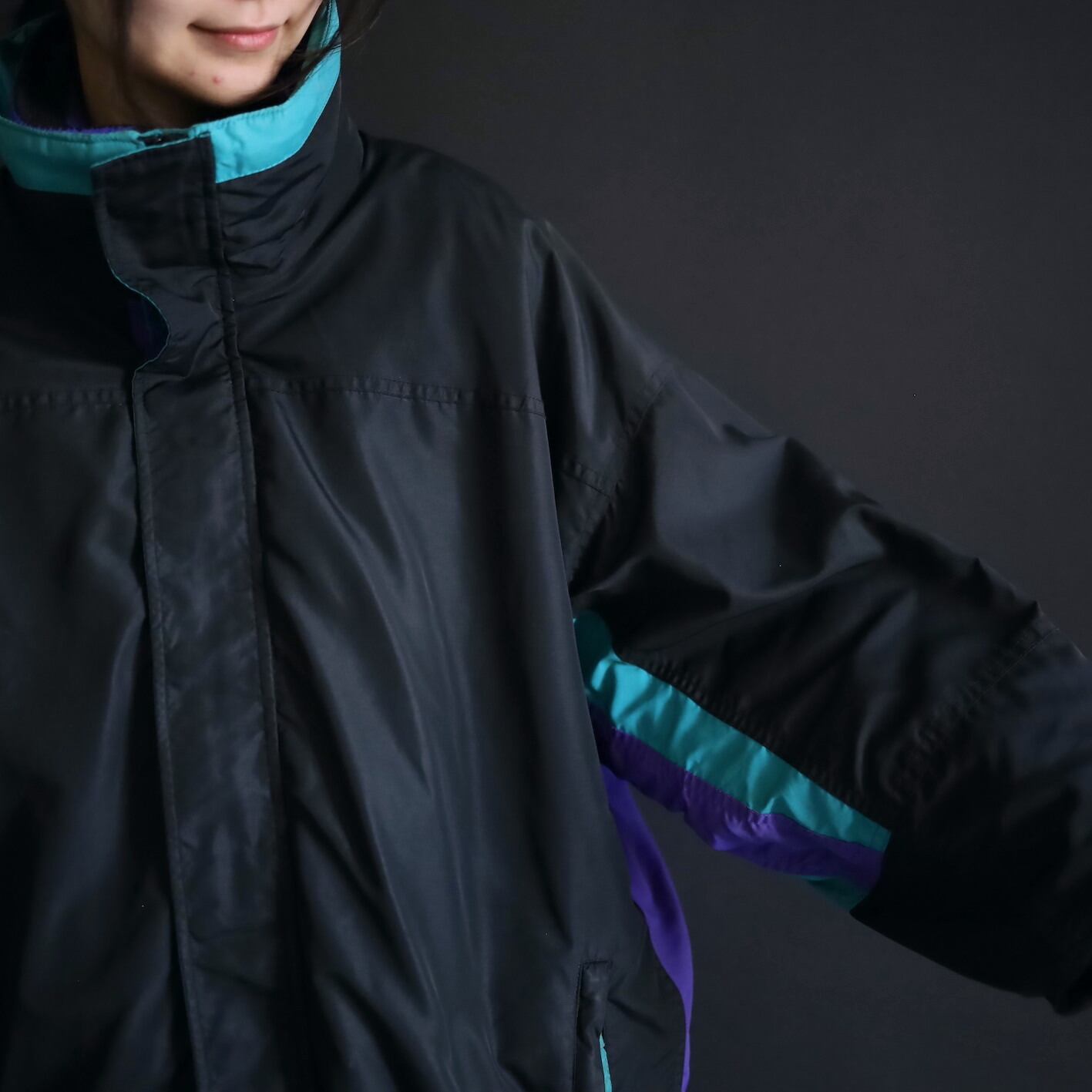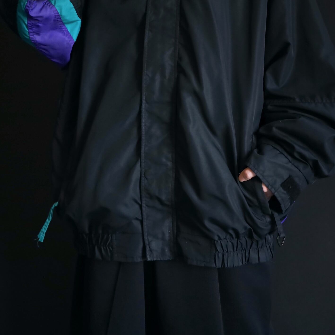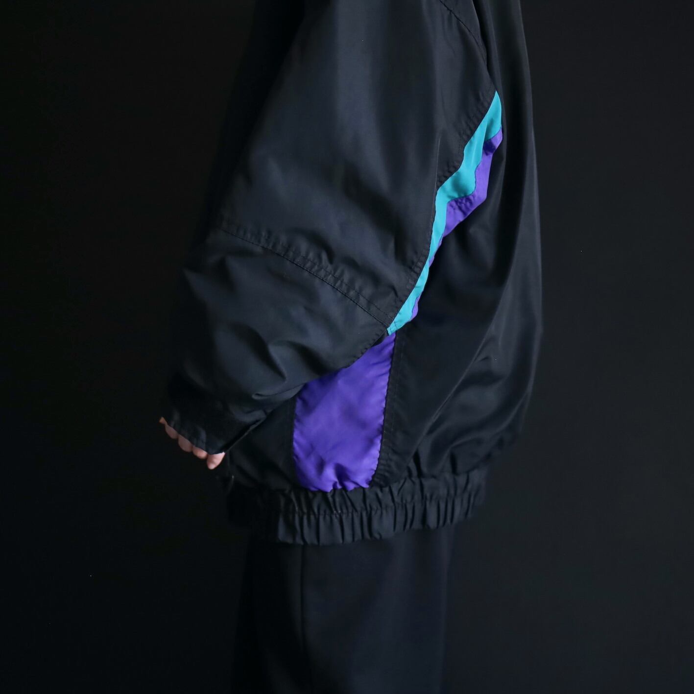 こちらはクセのないブラックカラーをベースに,脇下から袖先にかけてビビッドな色切替.