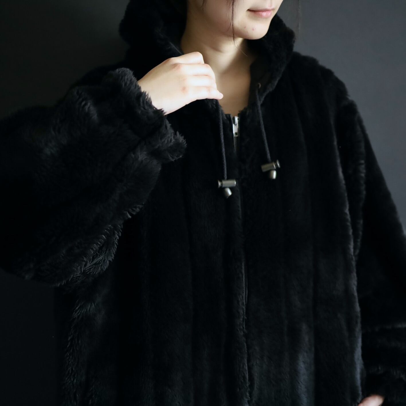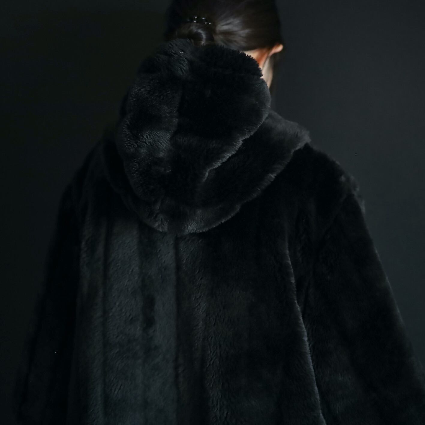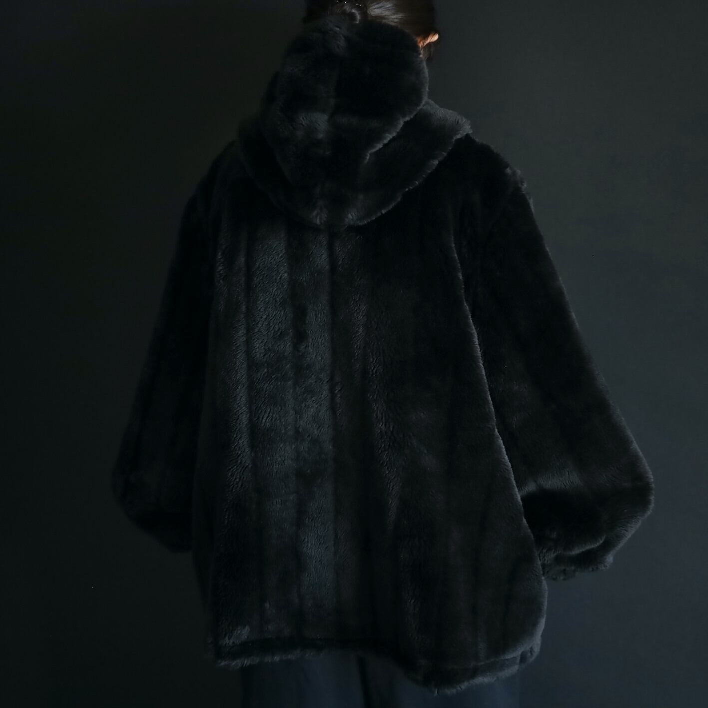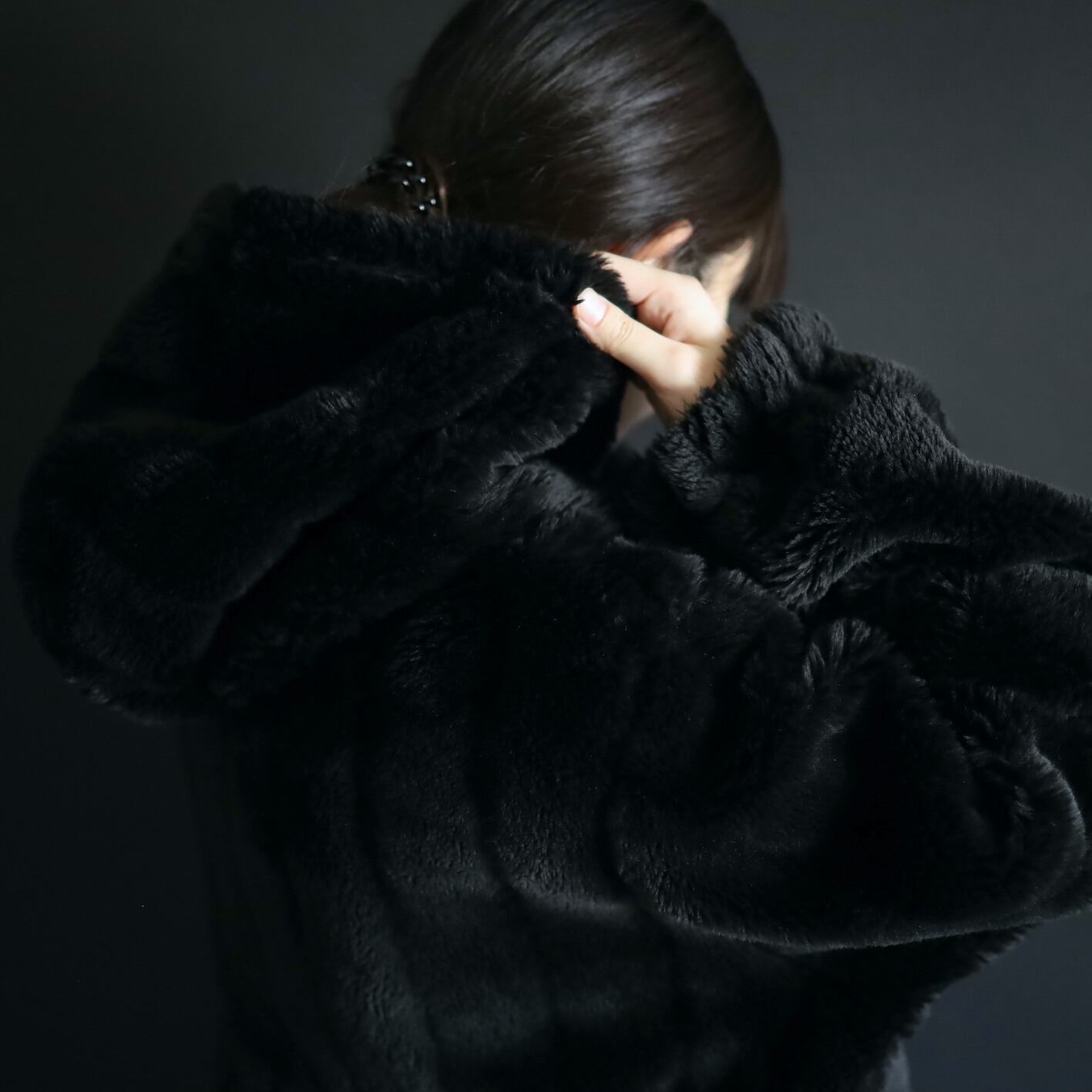 上品かつエレガントなフェイクファーフーディブルゾン.