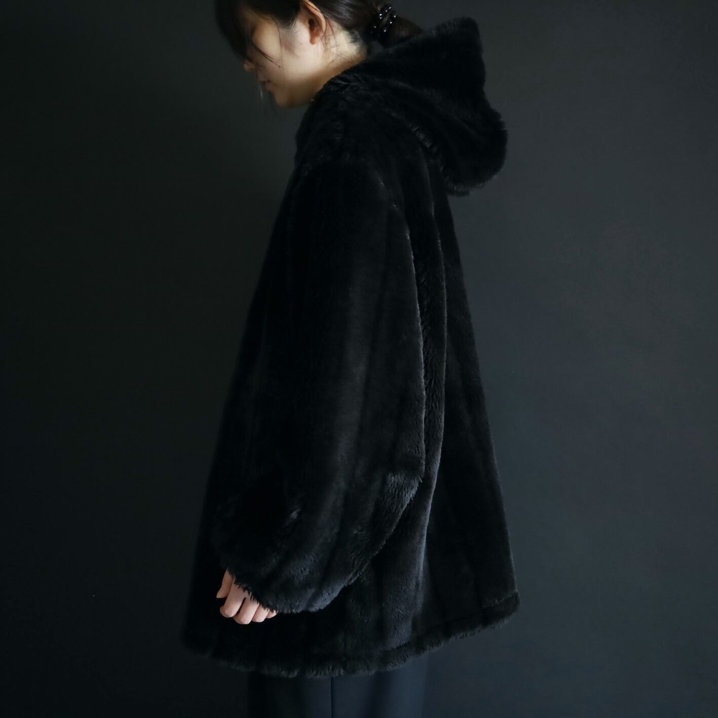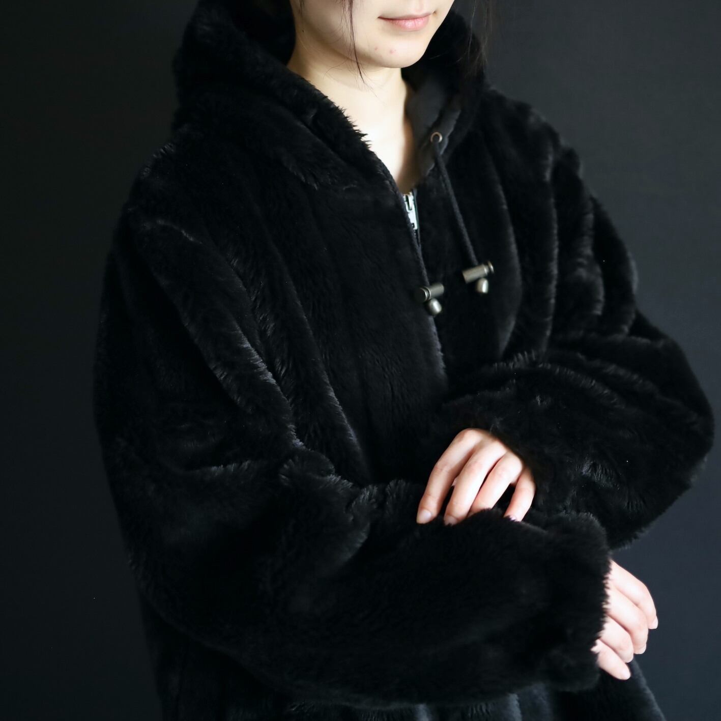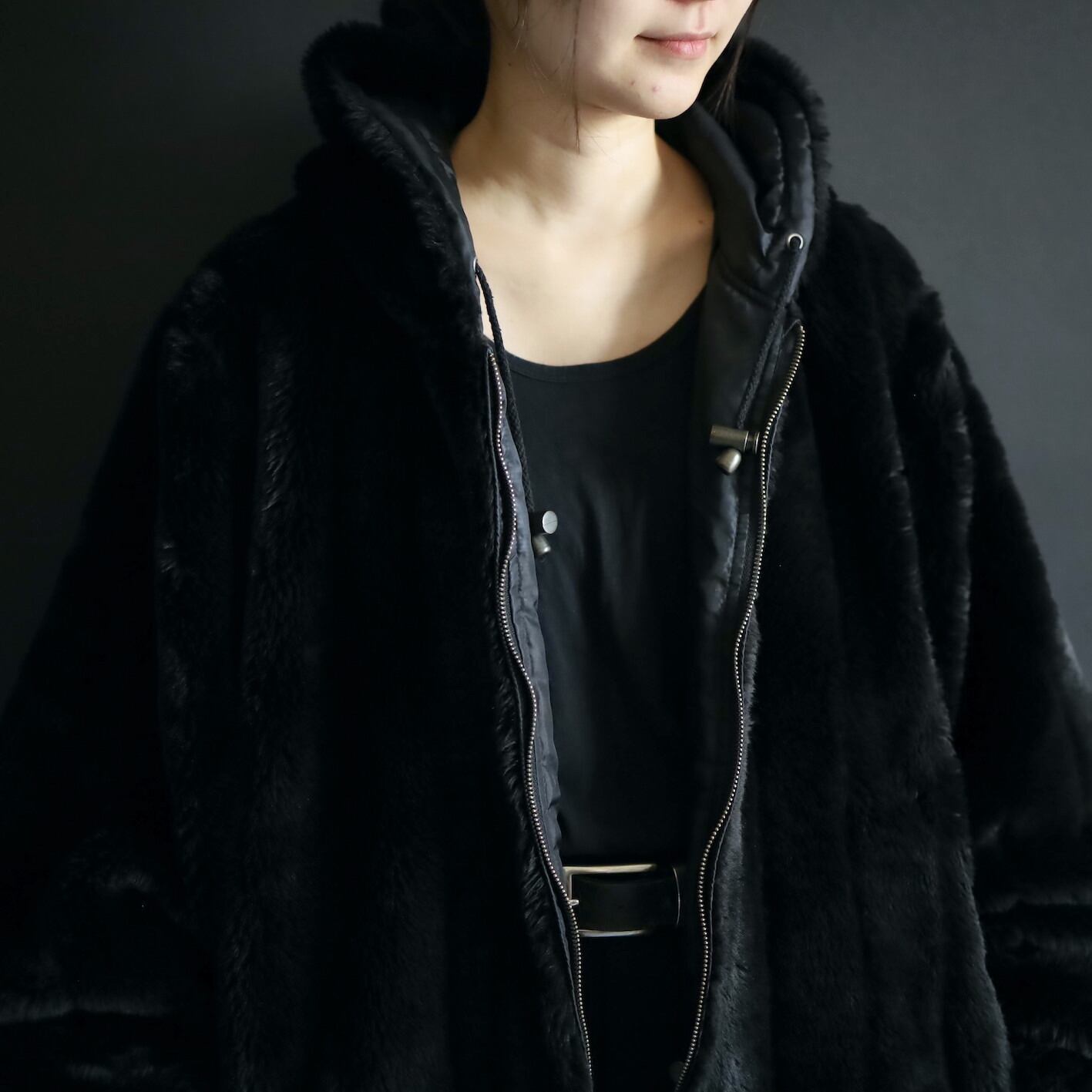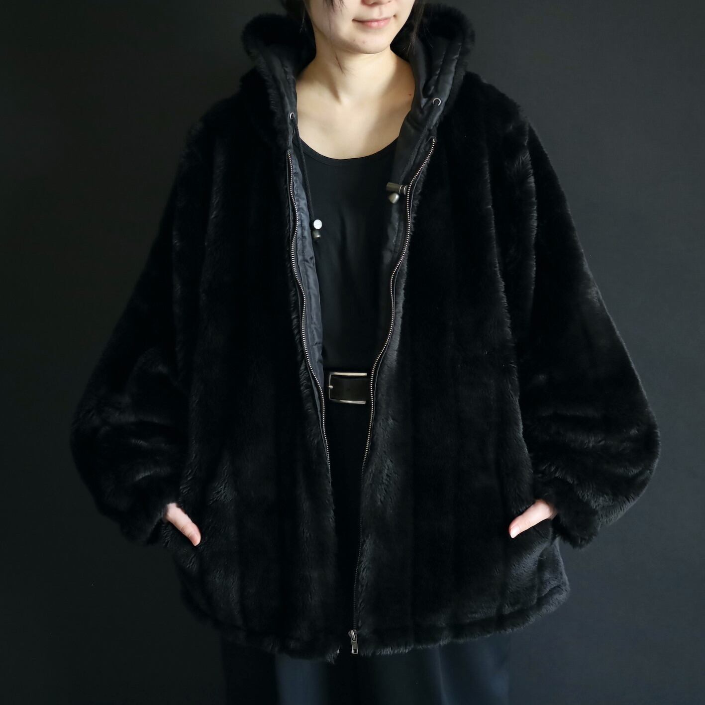 上品かつエレガントなフェイクファーフーディブルゾン.